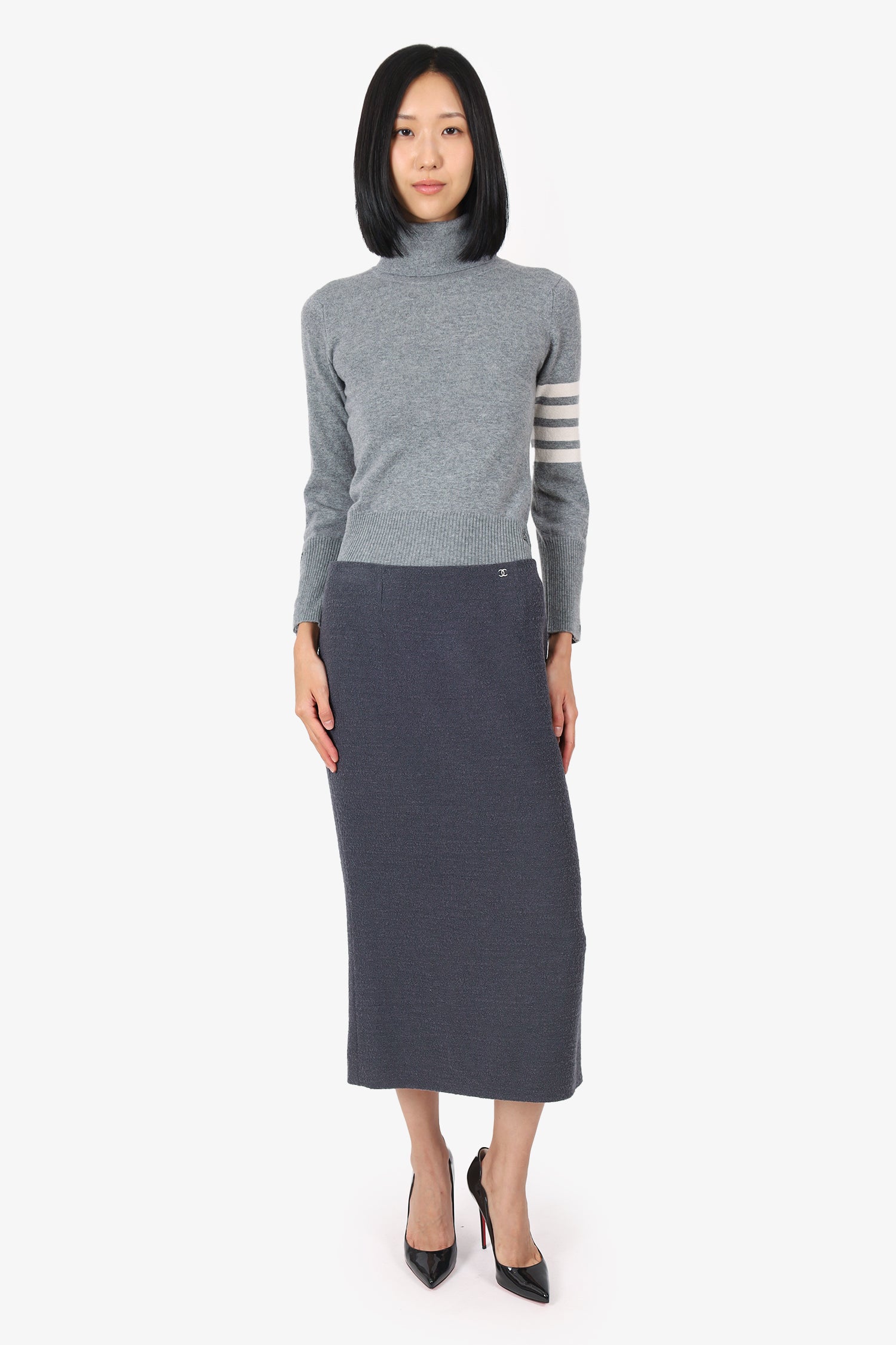 Pre-Loved Chanel™ Navy Wool Tweed Midi Pencil Skirt Size 38