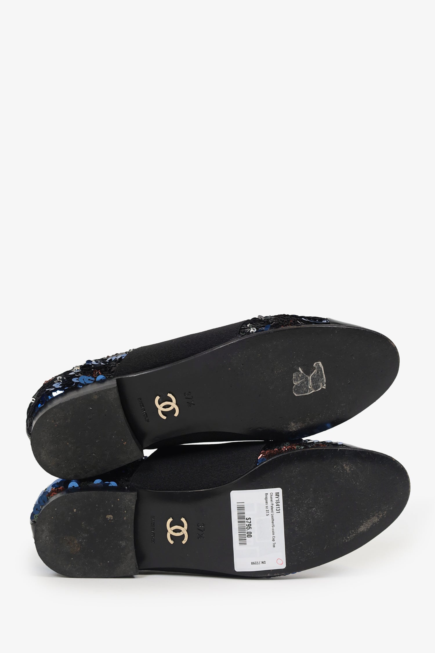 Pre-Loved Chanel™ Patent Leather/Sequin Cap Toe Brogues Size 37.5