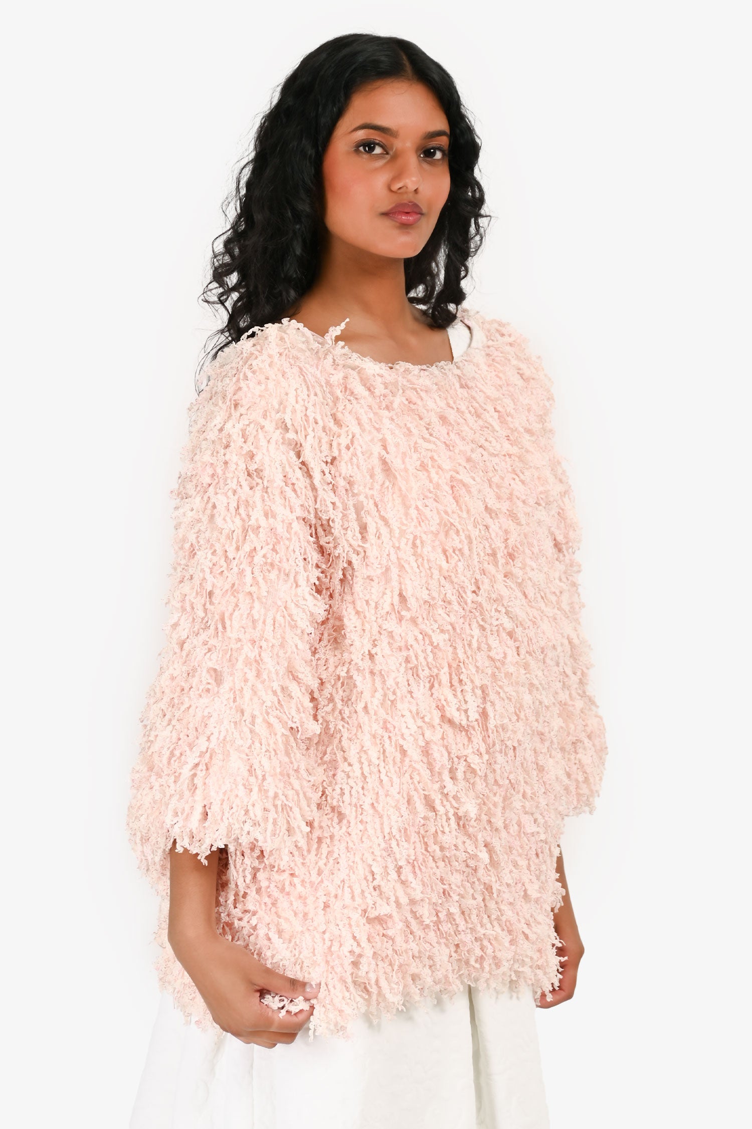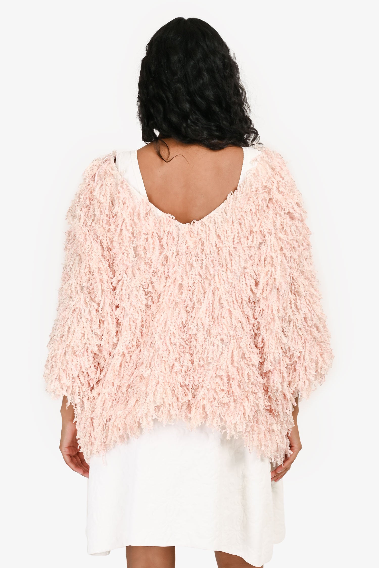 Pre-Loved Chanel™ Pink Fringed Tweed Asymmetrical Sweater Size 50