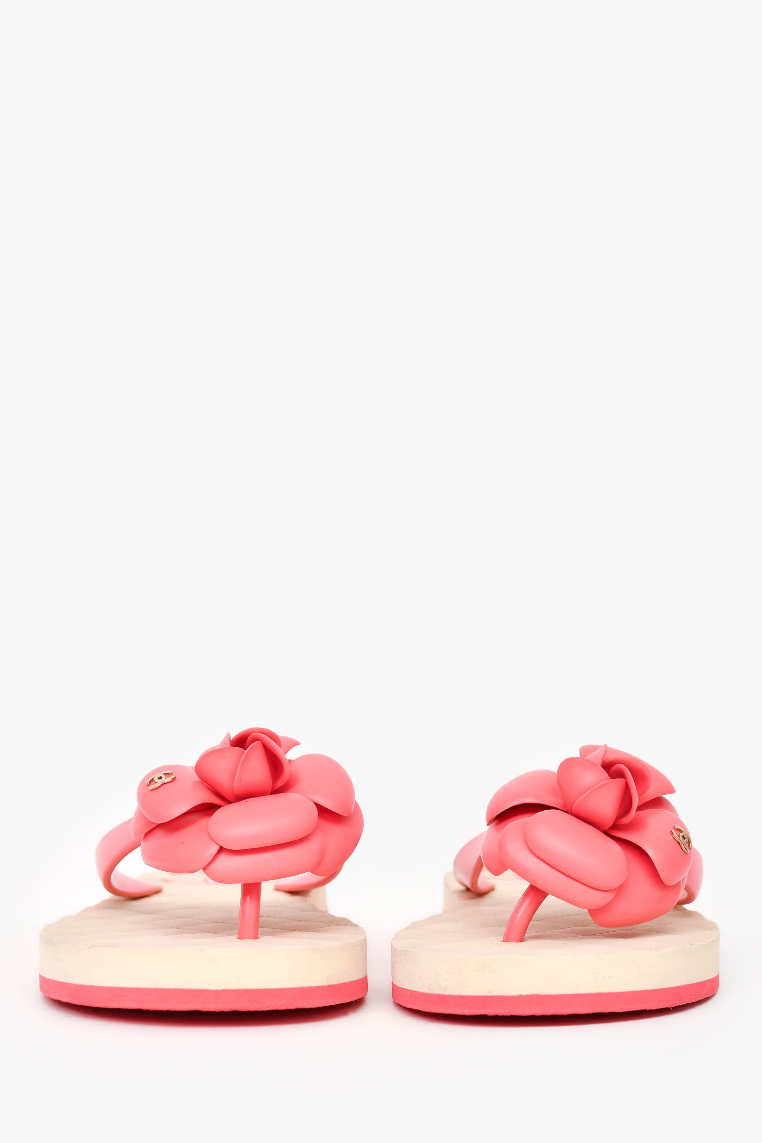 Pre-Loved Chanel™ Pink Rubber Camellia Flower Thong Sandals Size 37