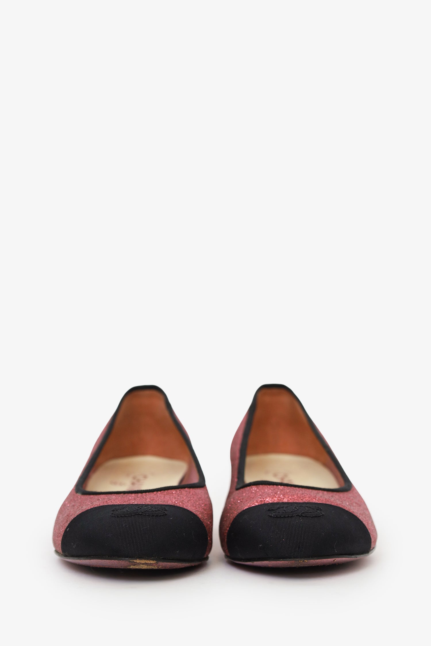 Pre-Loved Chanel™ Pink/Black Glitter Leather CC Ballerina Pumps Size 38