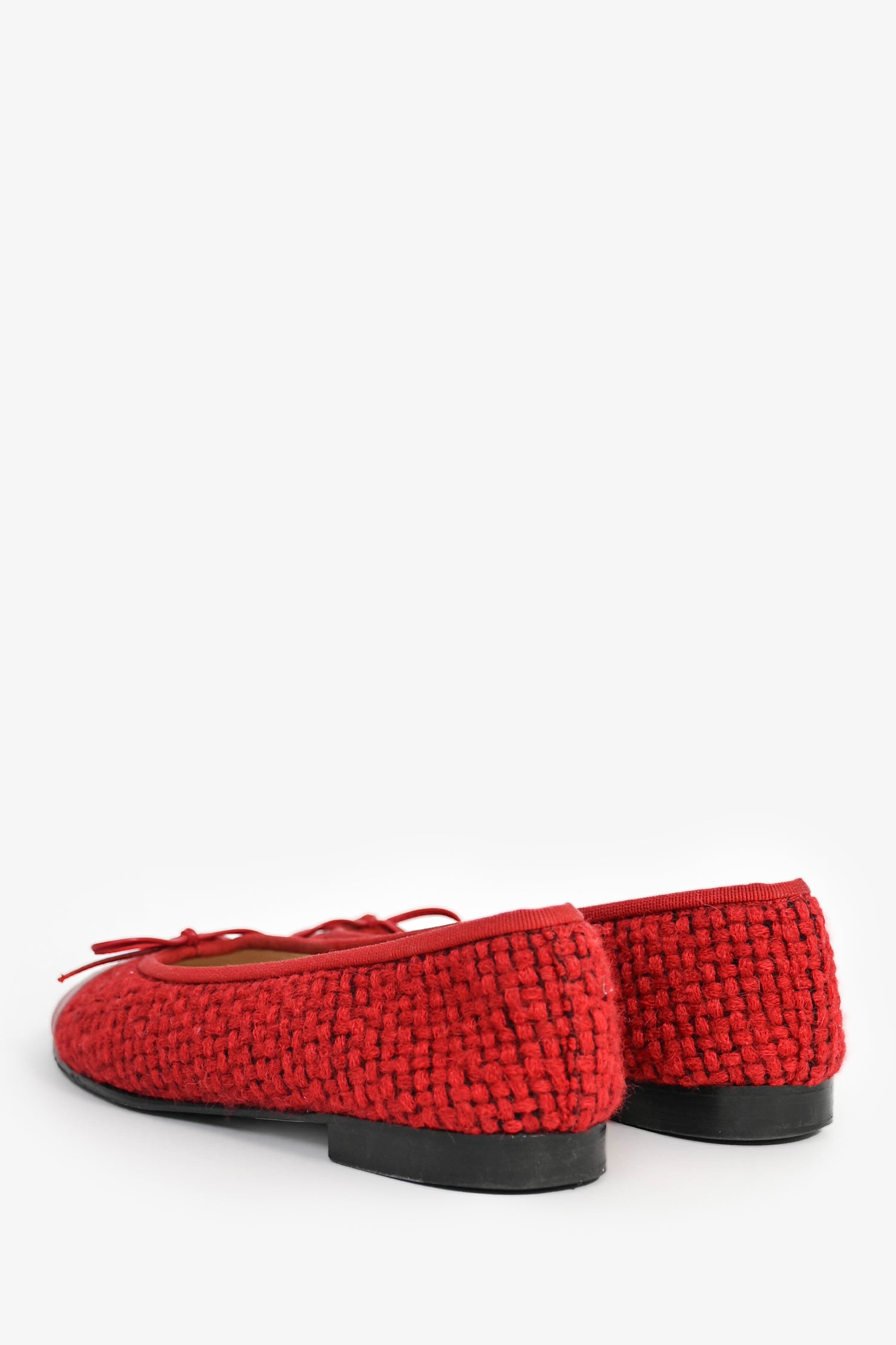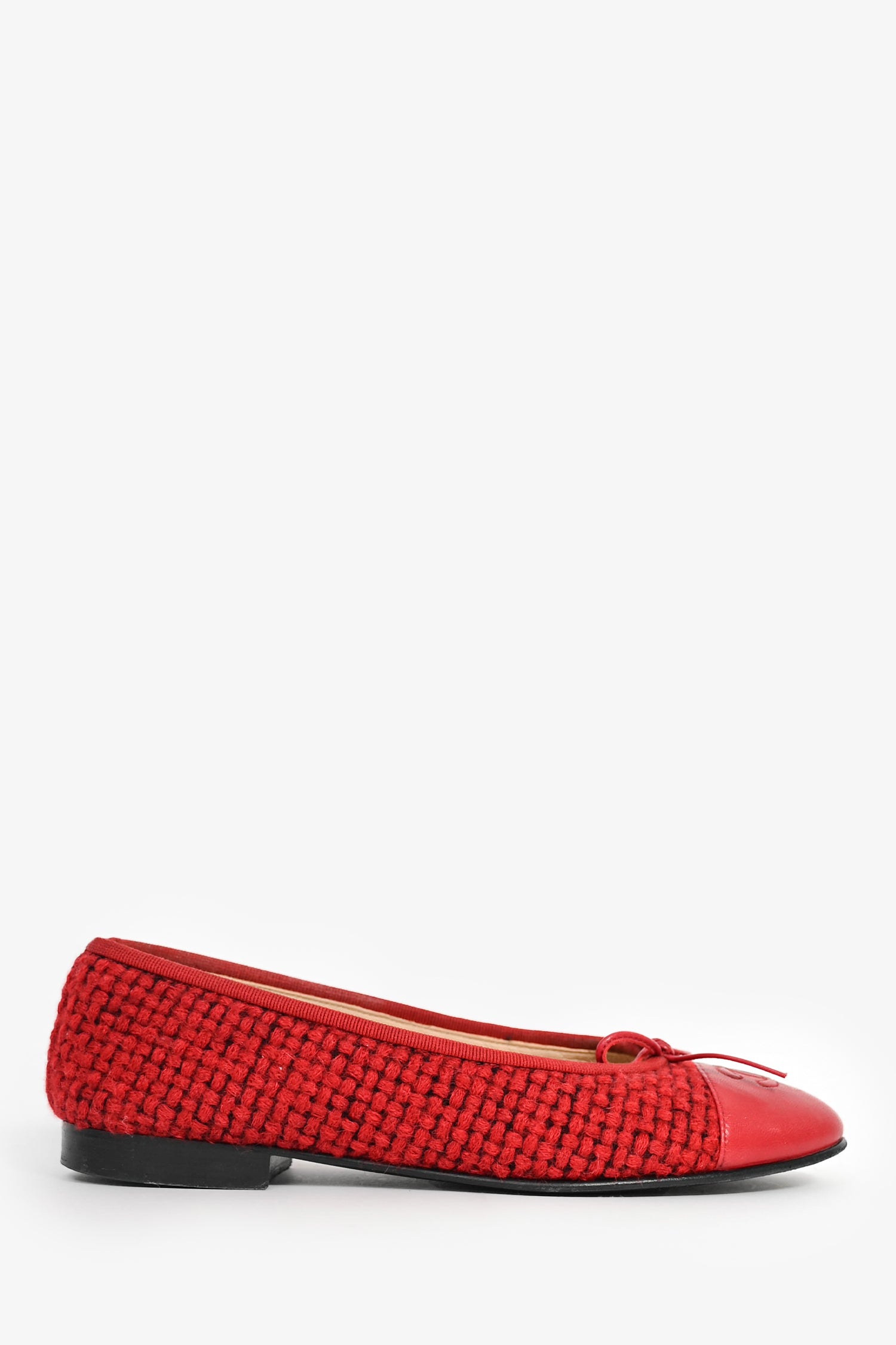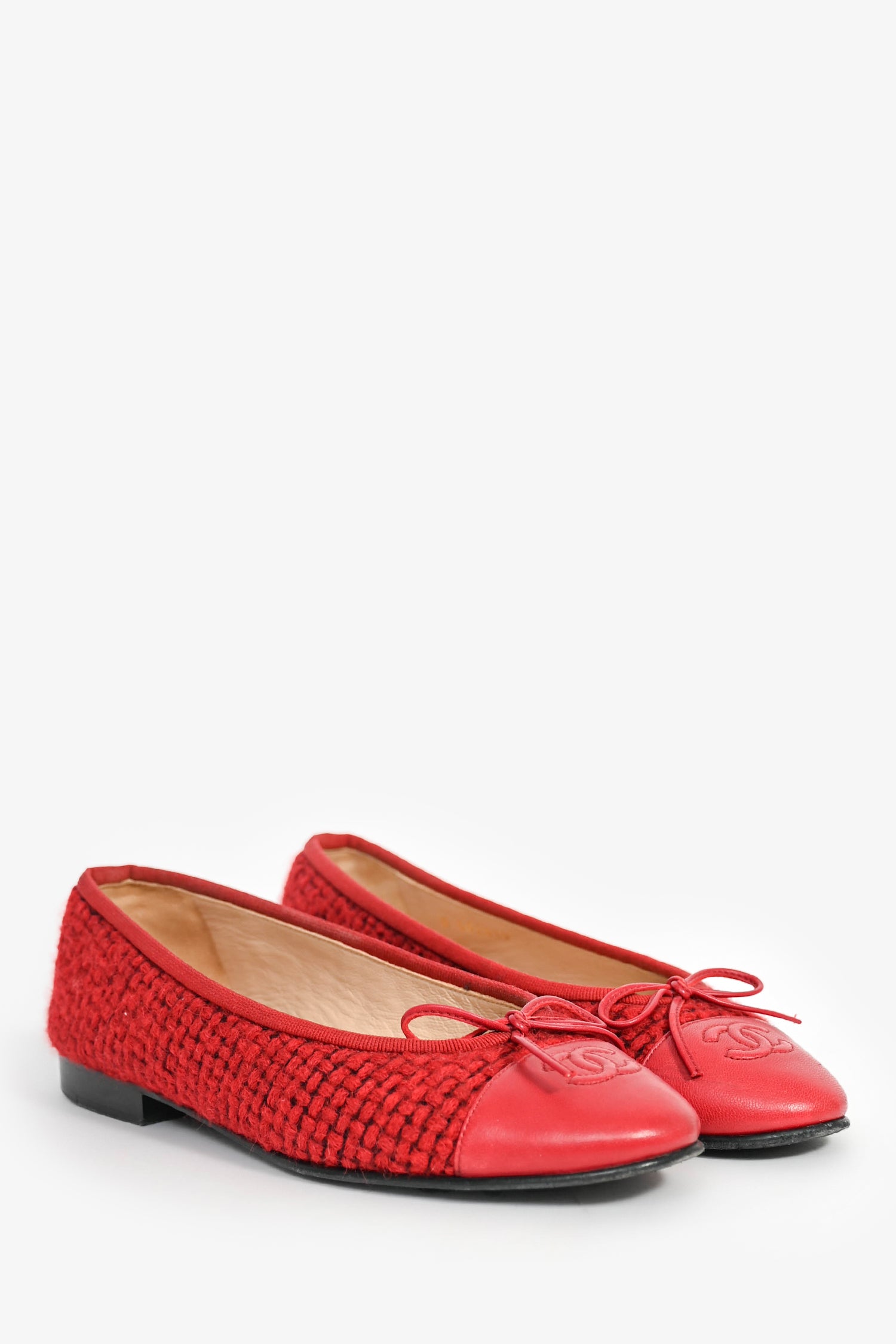 Refresh availabilityPre-Loved Chanel™ Red Tweed Cap Toe Ballet Flats. Almond toe. Slip-on. Tonal stitching.