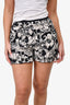 Pre-Loved Chanel™ Resort 2022 White/Black Printed Ruched Silk Mini Bloomer Shorts Size 38