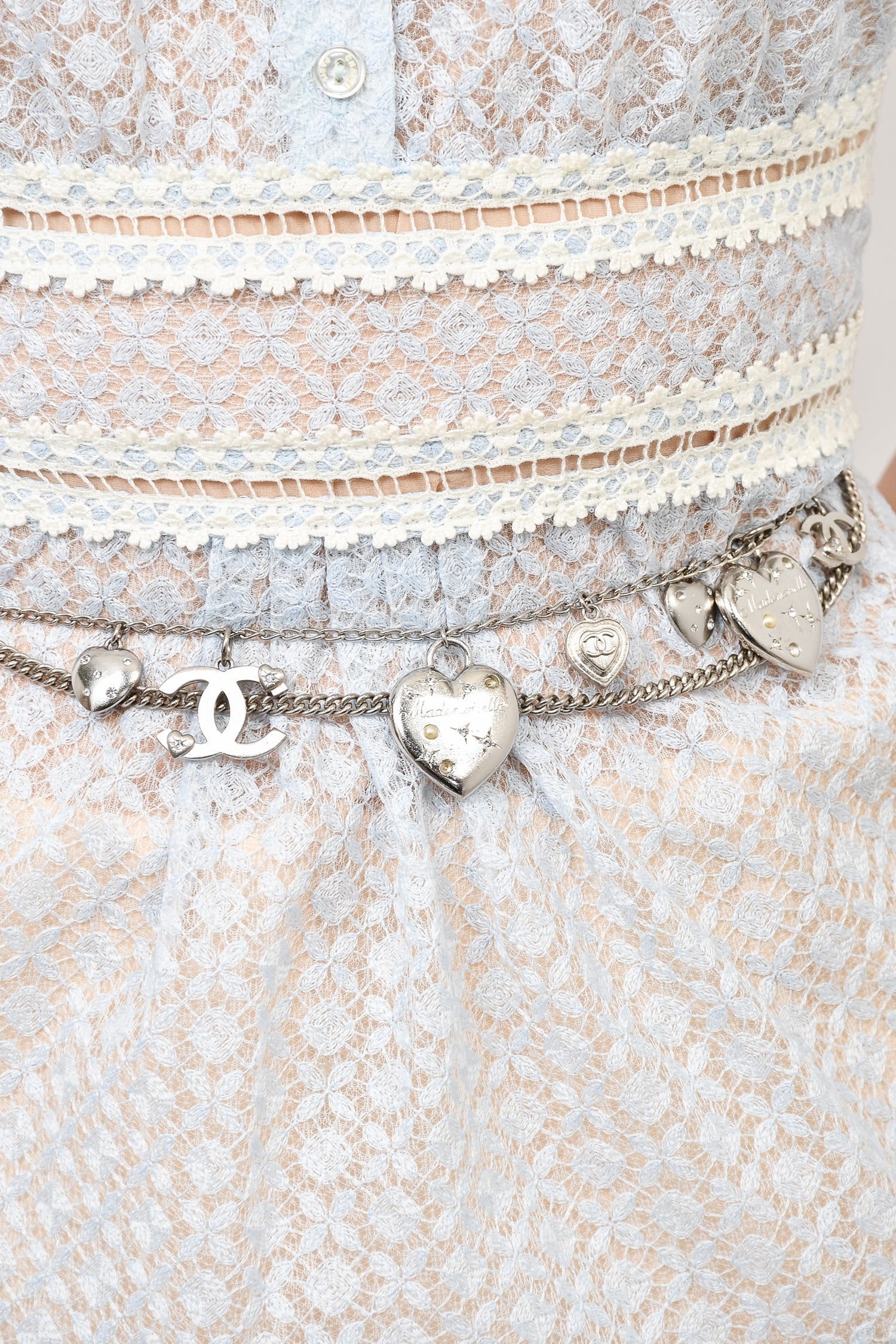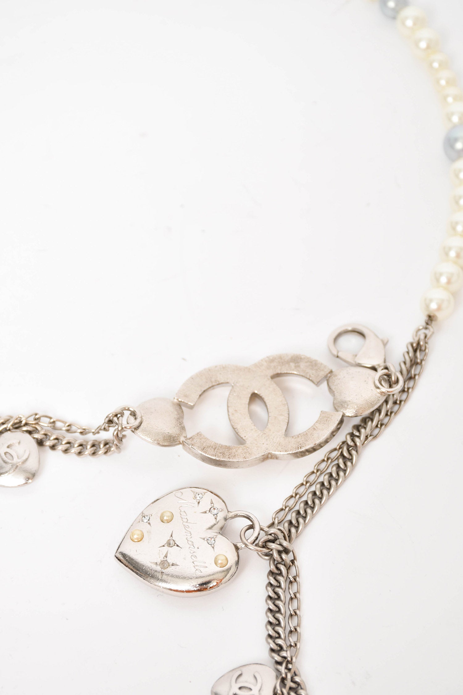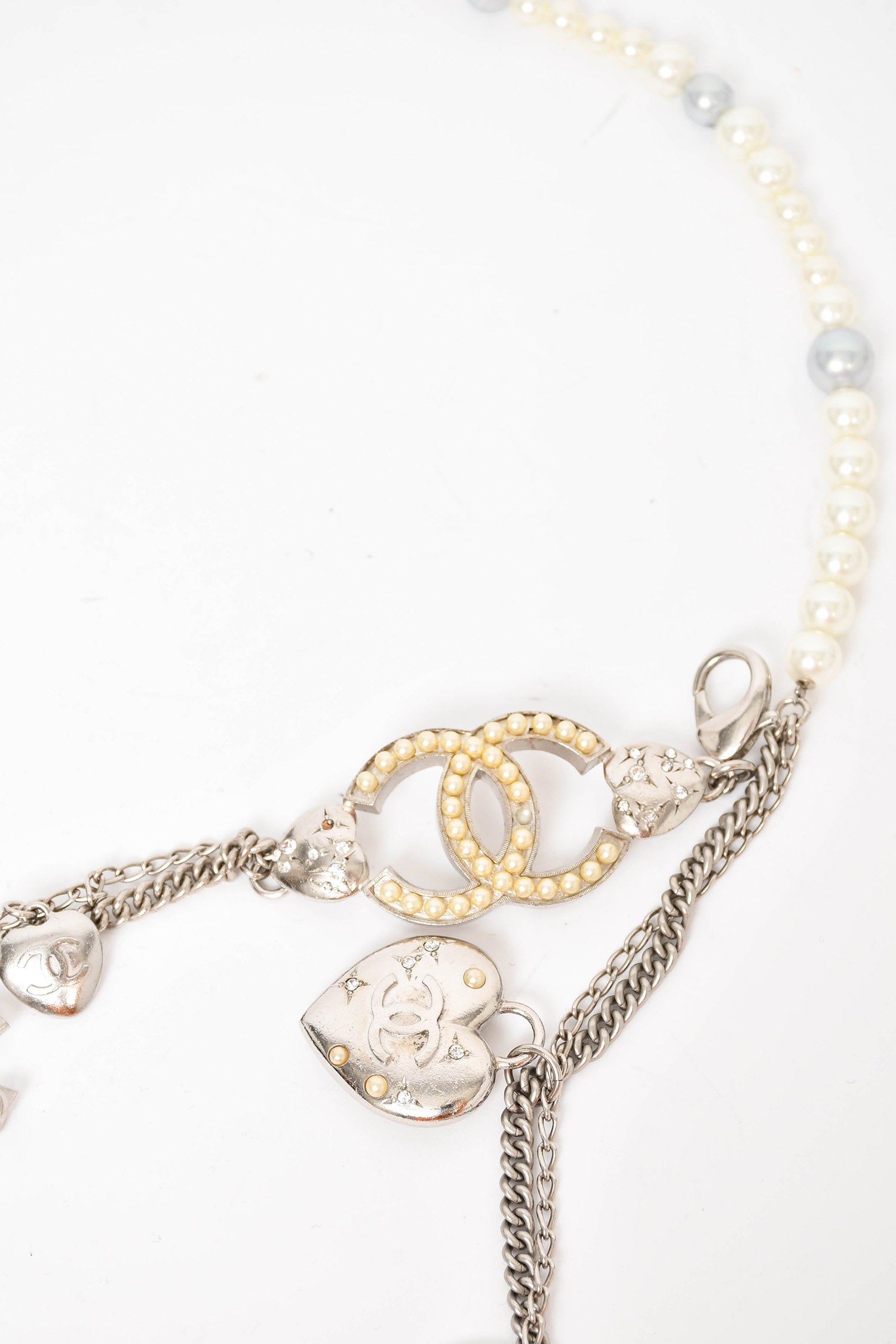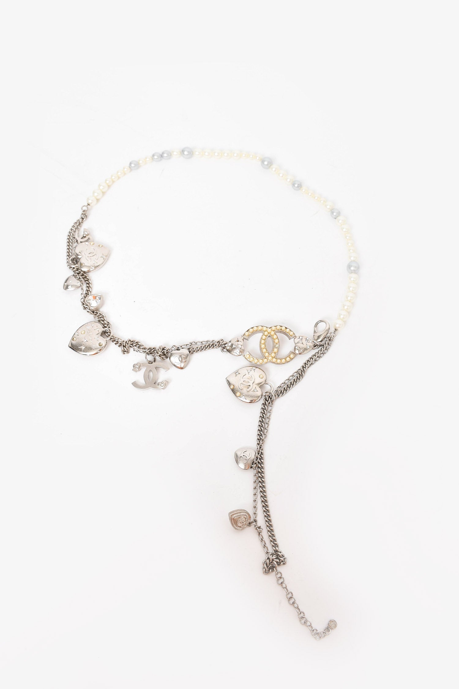 Refresh availabilityPre-loved Chanel™ Silver/Pearl Multi-Chain Charm Belt. Lobster clasp closure.