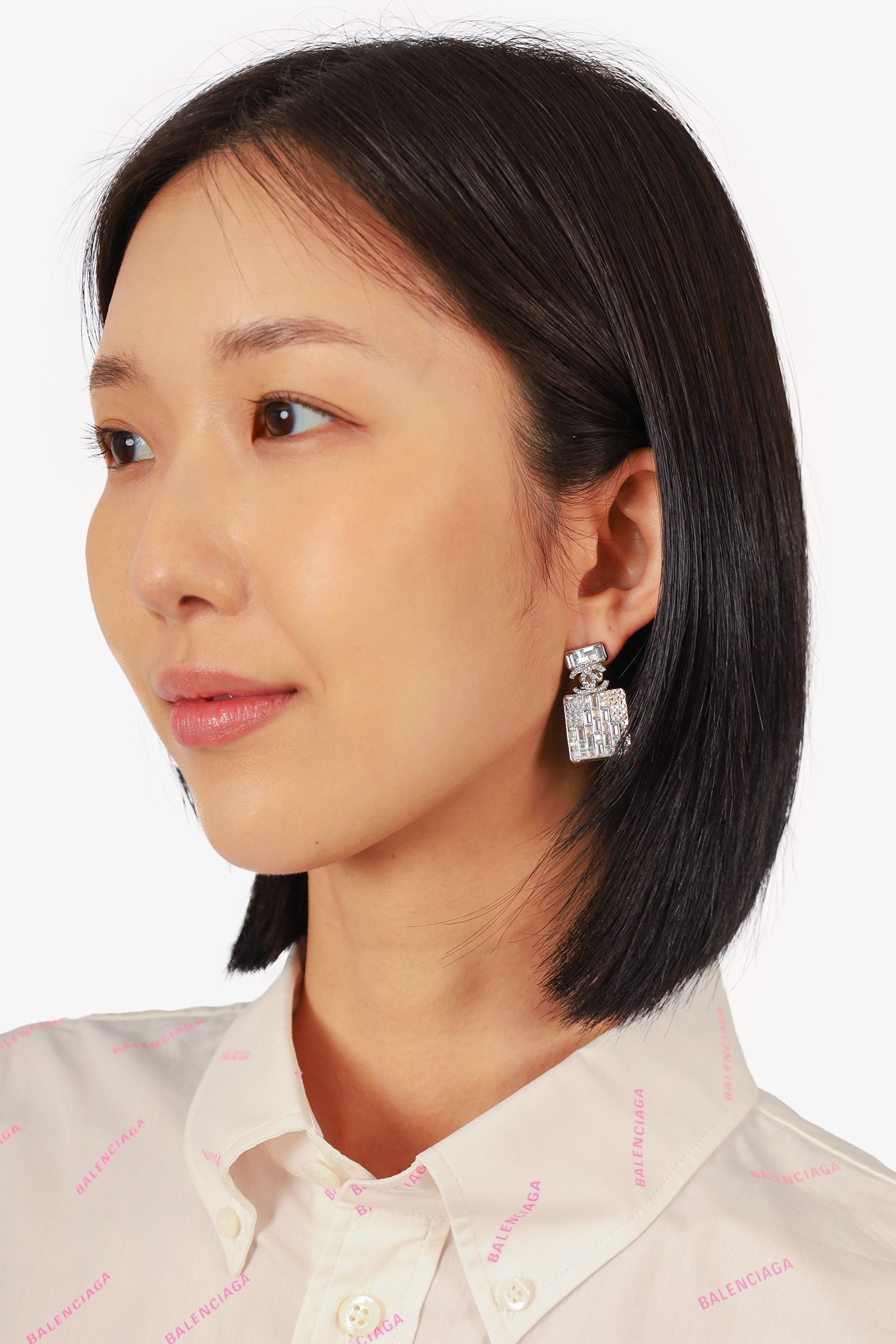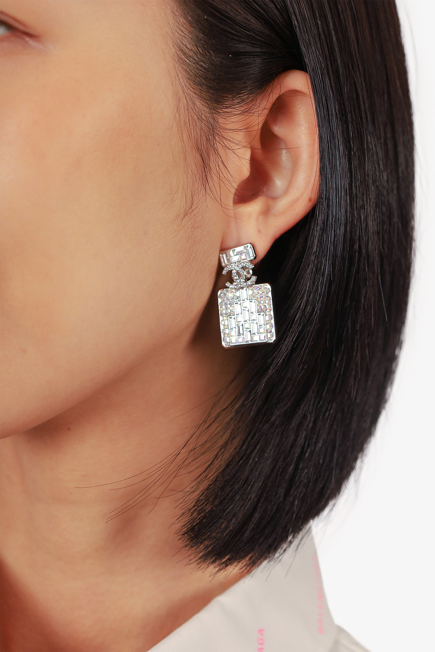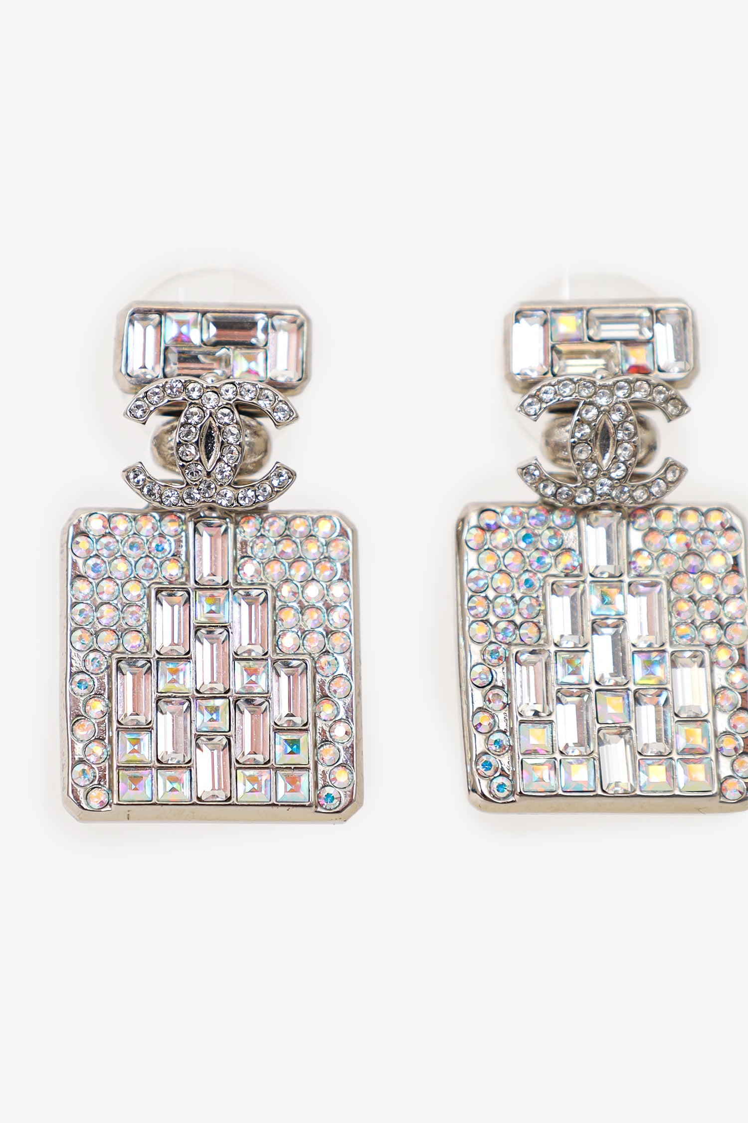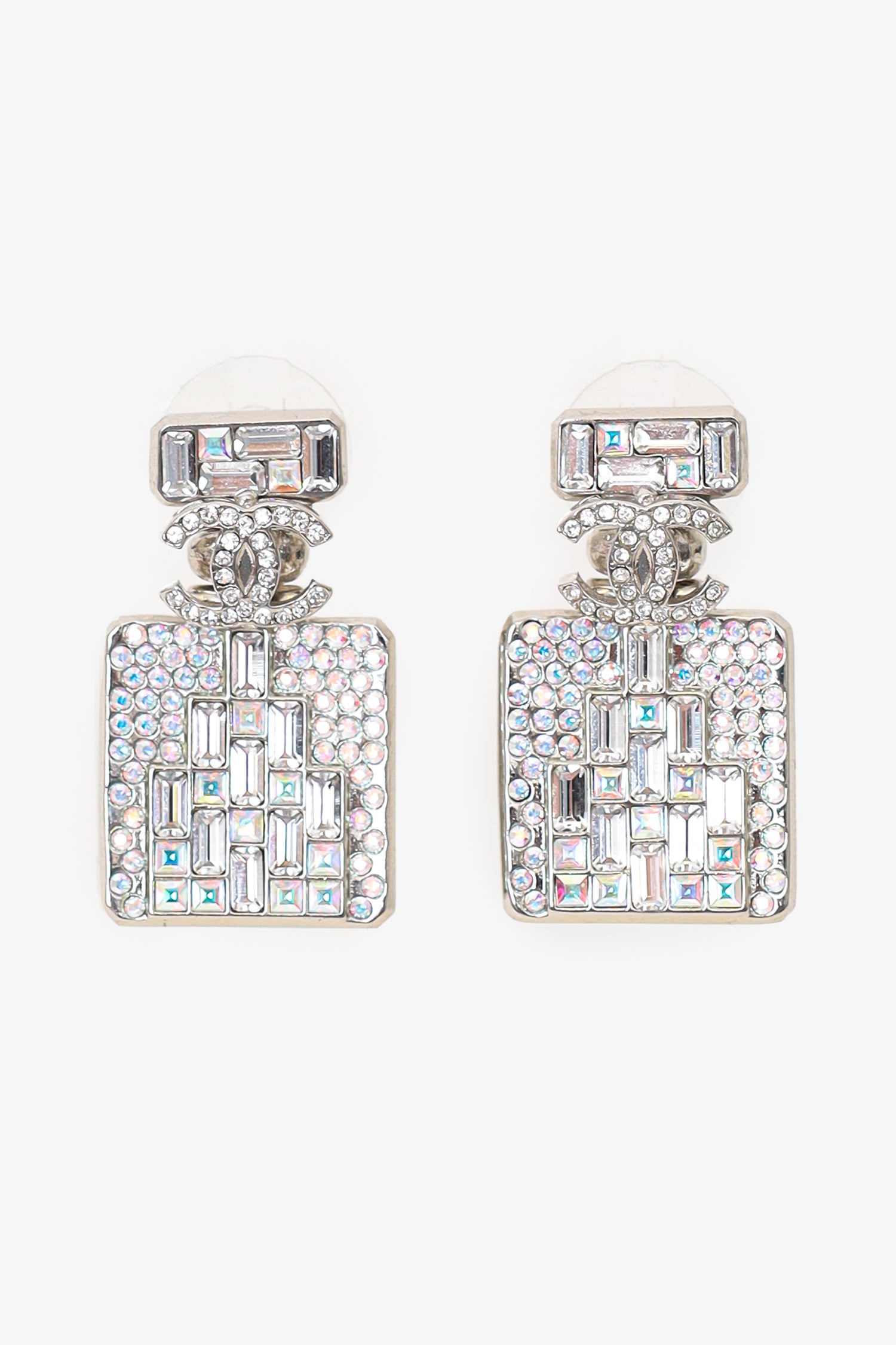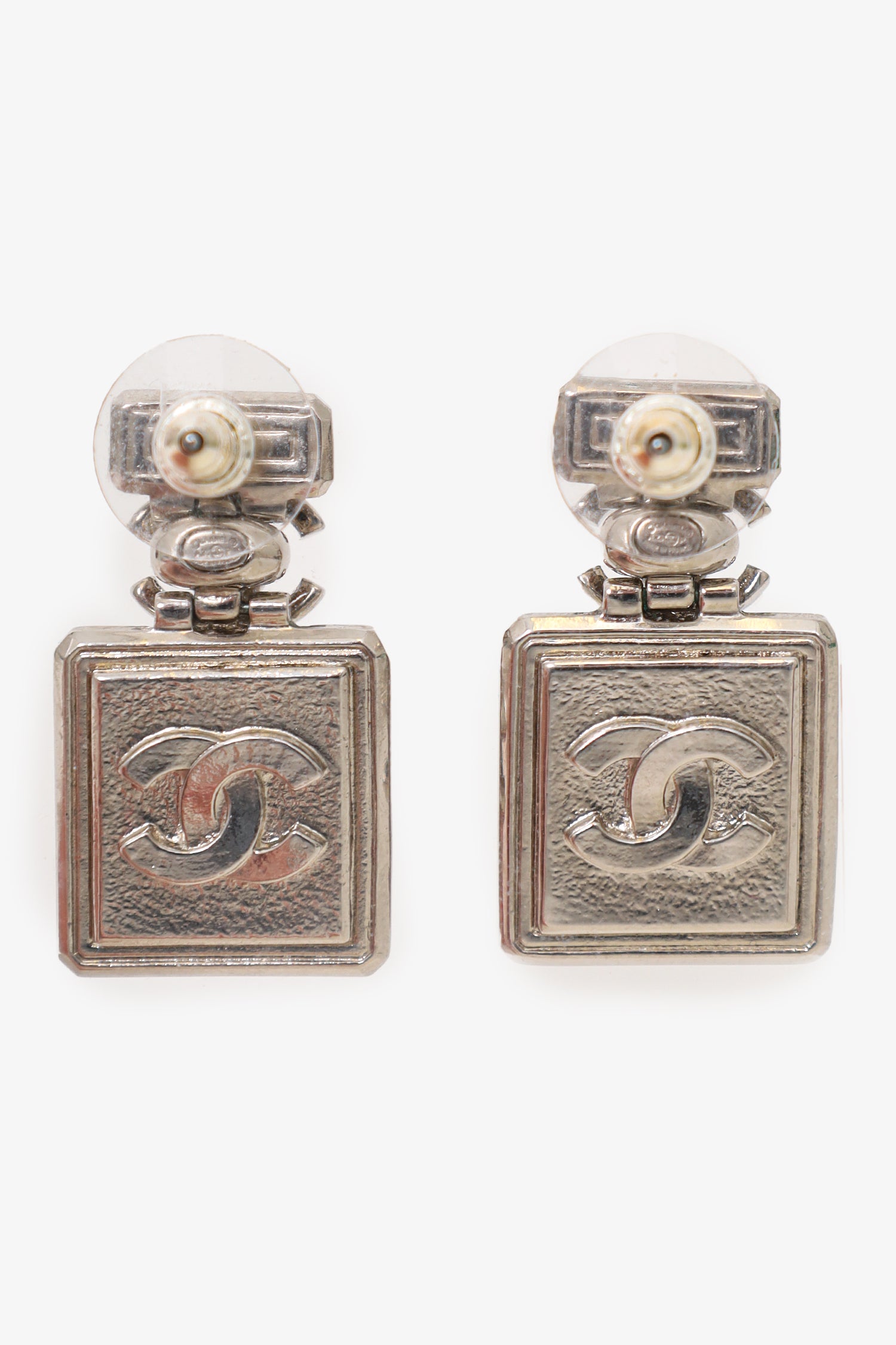Refresh availabilityPre-loved Chanel™ Silver Tone Crystal 'CC' Bottle Earrings. Push back closure.