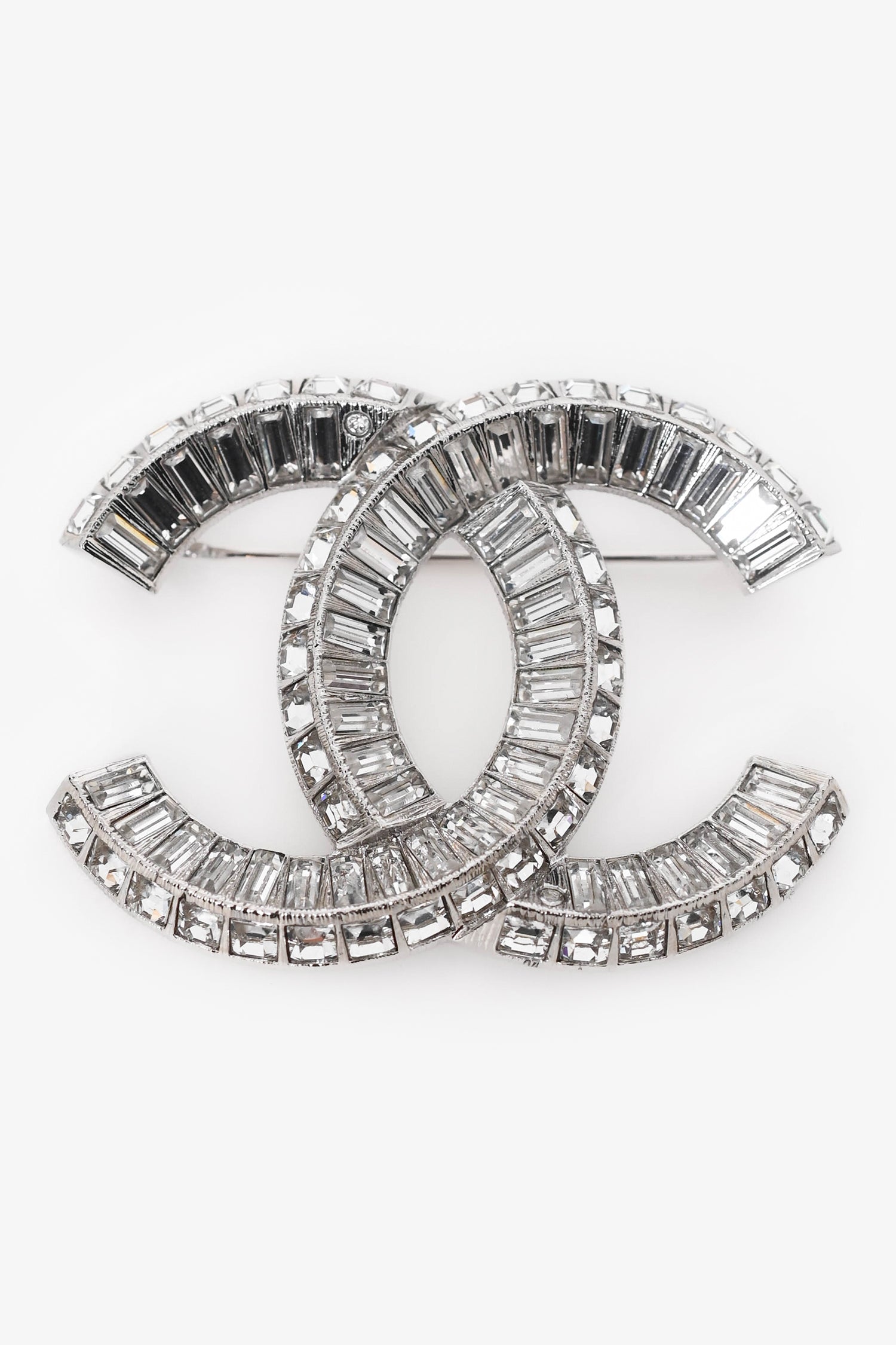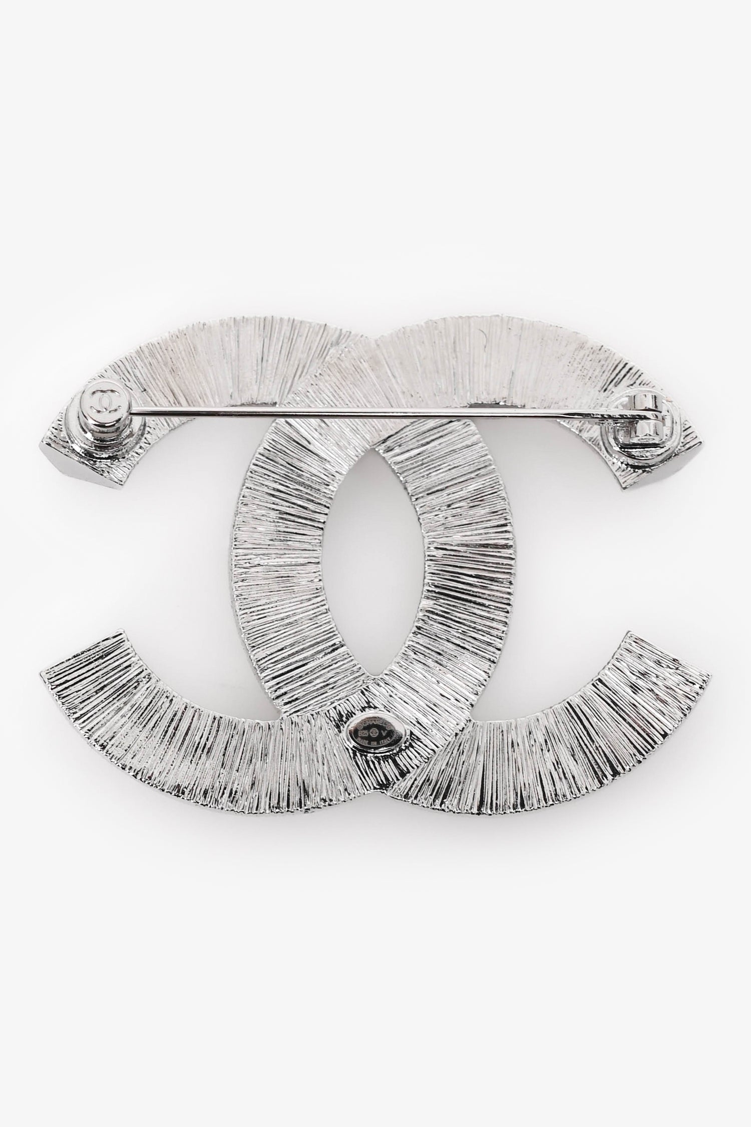 Refresh availabilityPre-Loved Chanel™ Silver Tone Crystal Embellished CC Brooch. Pin closure. Silver-tone hardware.