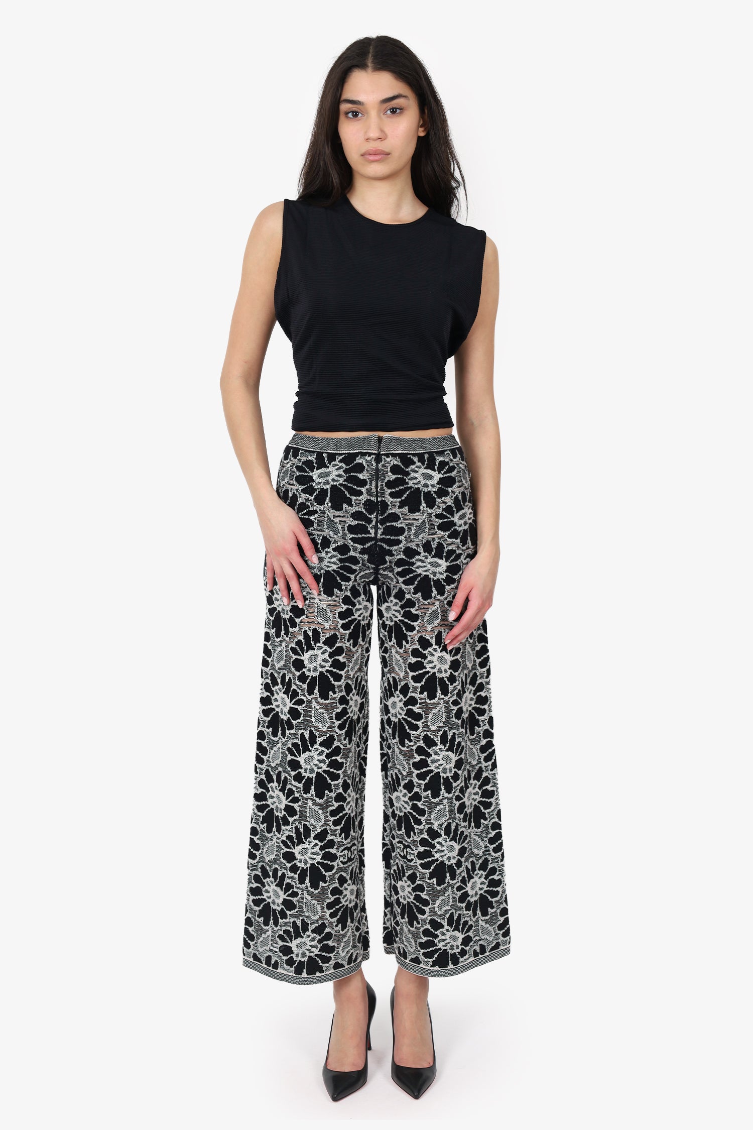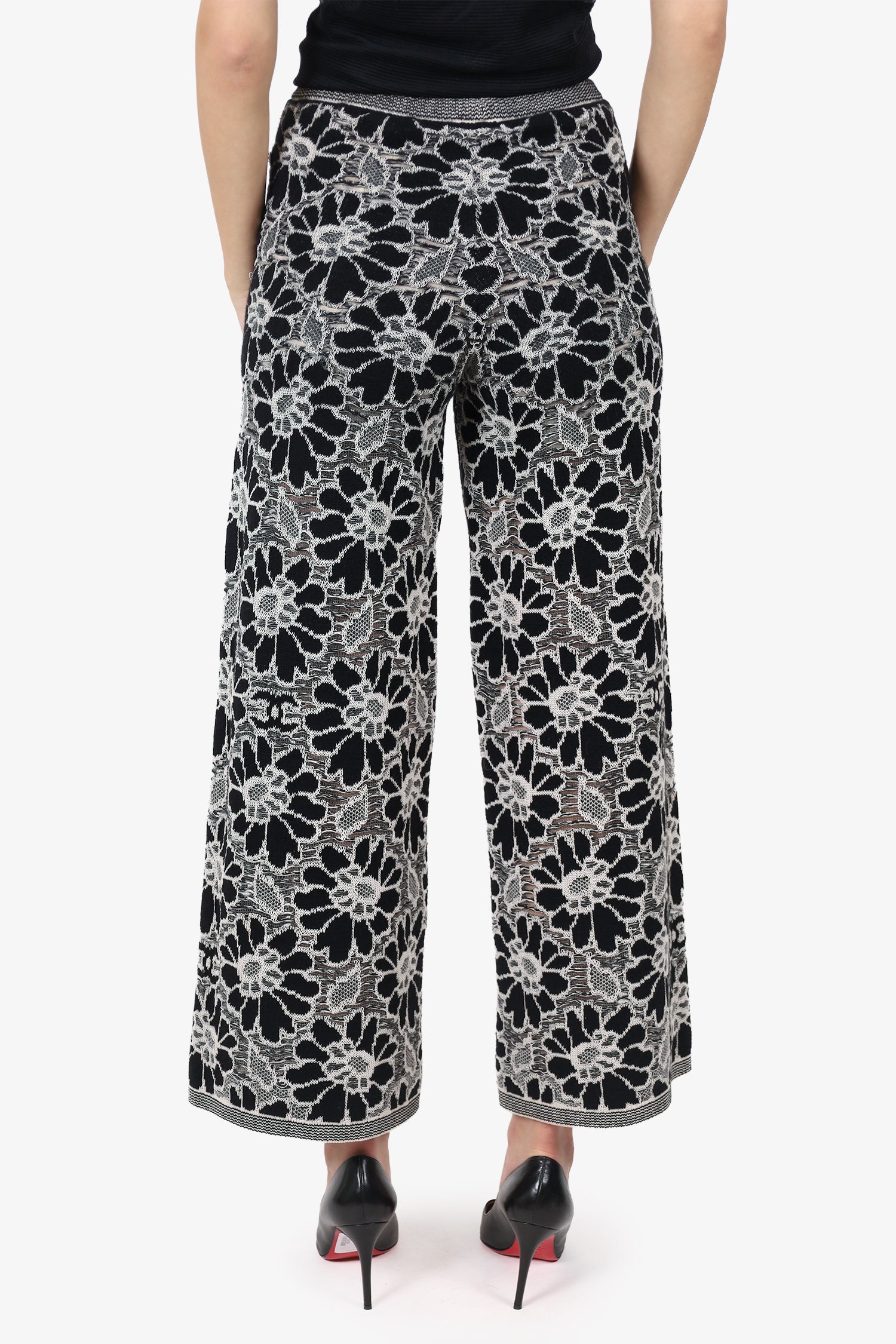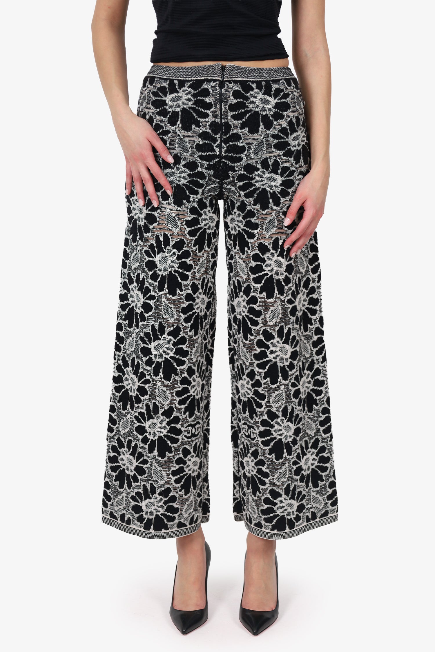 Pre-Loved Chanel™ SS20 Black/White Camellia Knit Culotte Pants Size 38