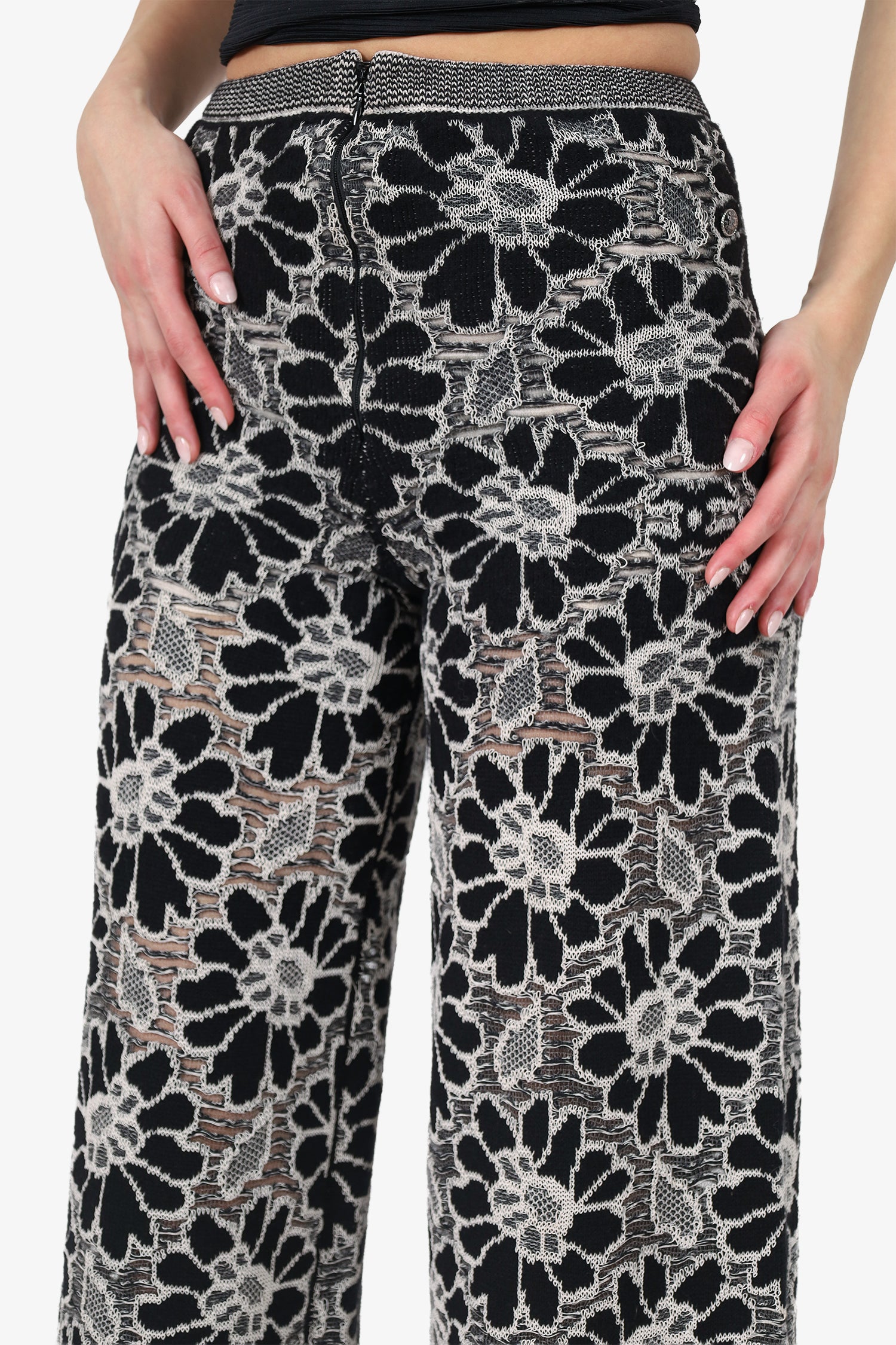 Refresh availabilityPre-Loved Chanel™ SS20 Black/White Camellia Knit Culotte Pants. Pull-on. Rear zip with hook closure. Elasticated waistband. Lined interior. Silver-tone hardware. Contrast and tonal stitching.