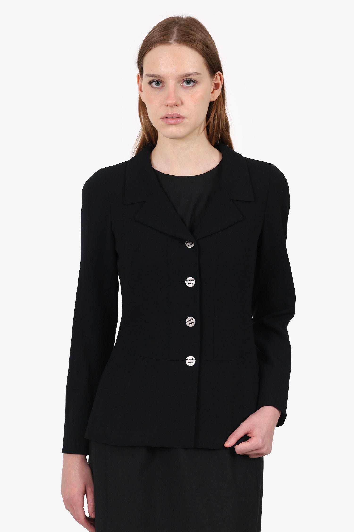 Pre-Loved Chanel™ Vintage 2000 Black Wool Single Breasted Blazer Size 34