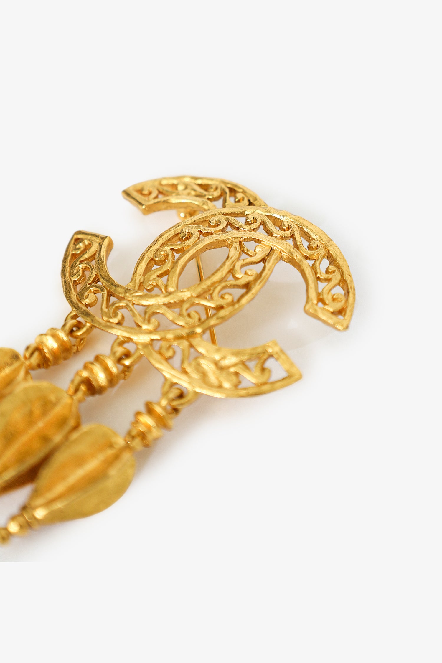 Pre-Loved Chanel™ Vintage Gold-tone Coco Mark Fretwork Fringe Brooch