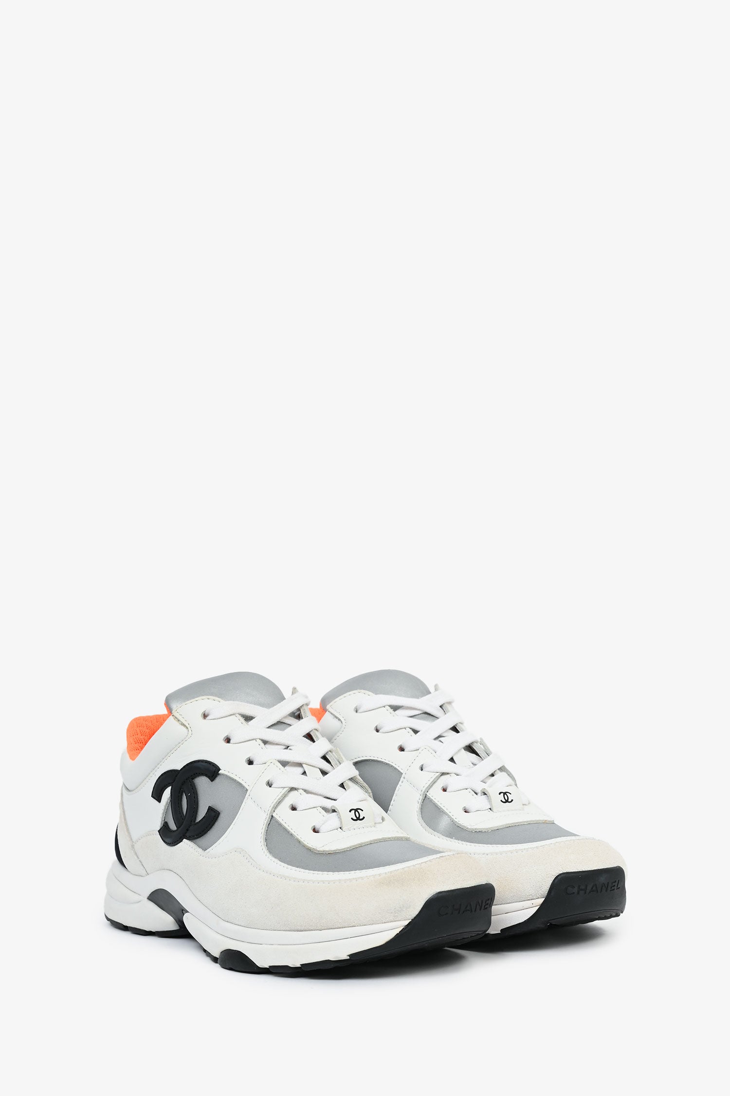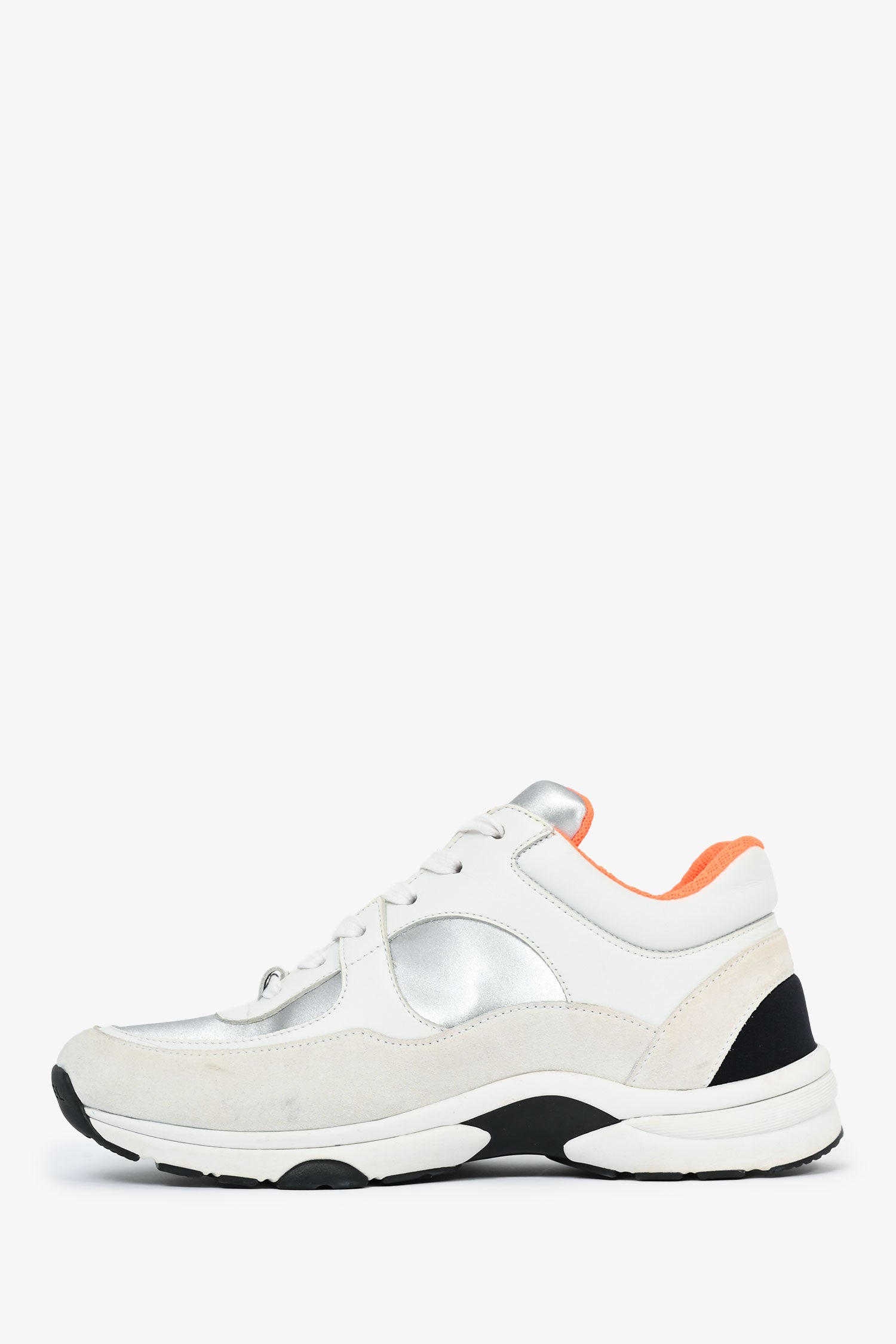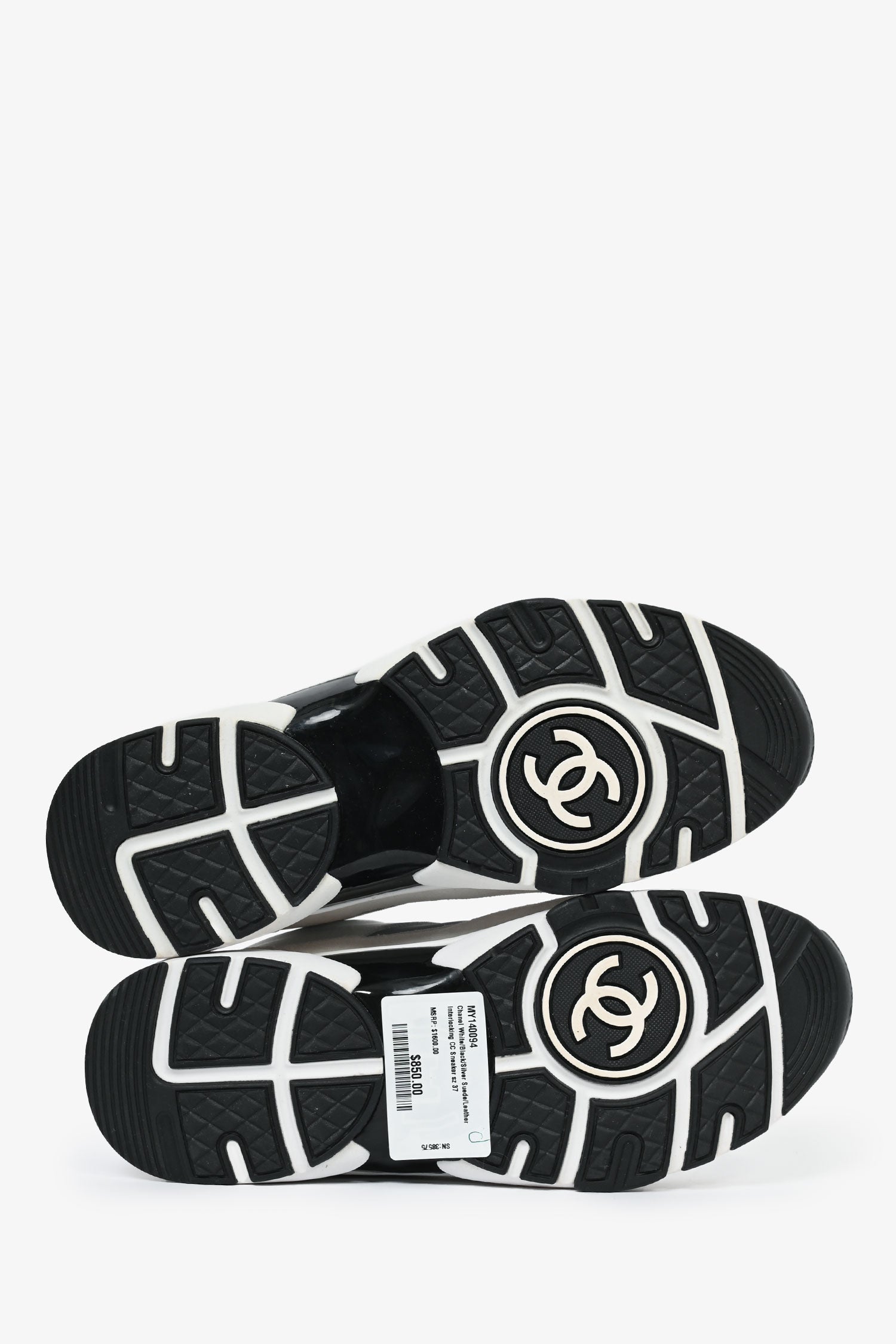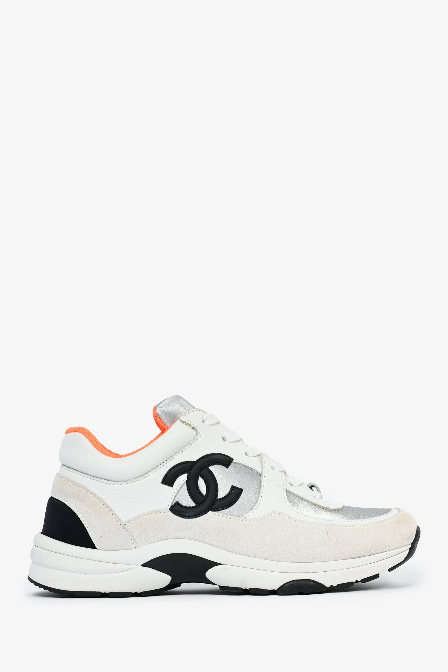 Pre-Loved Chanel™ White/Black/Silver Suede/Leather Interlocking CC Sneaker Size 37