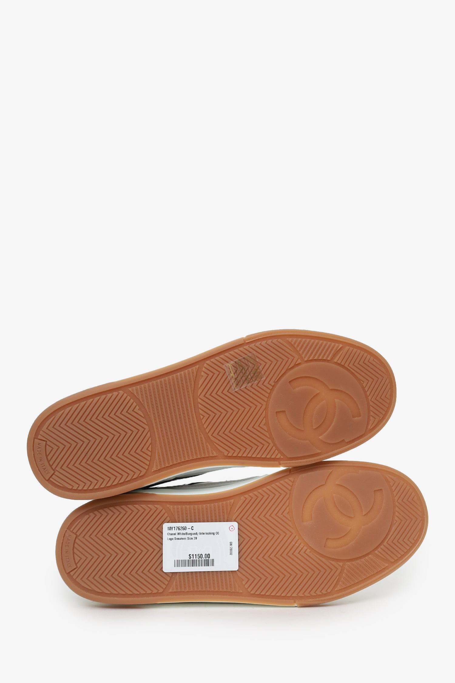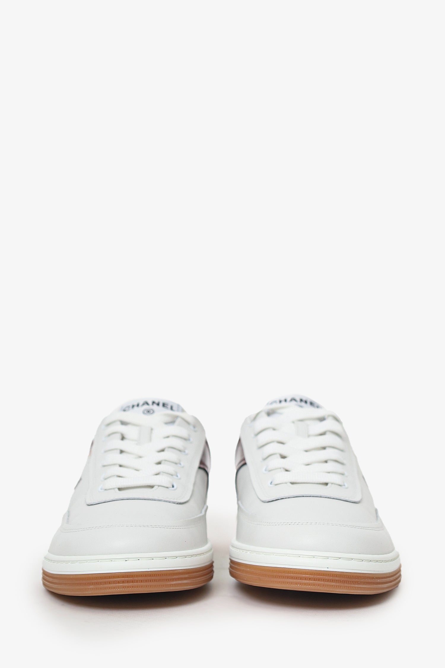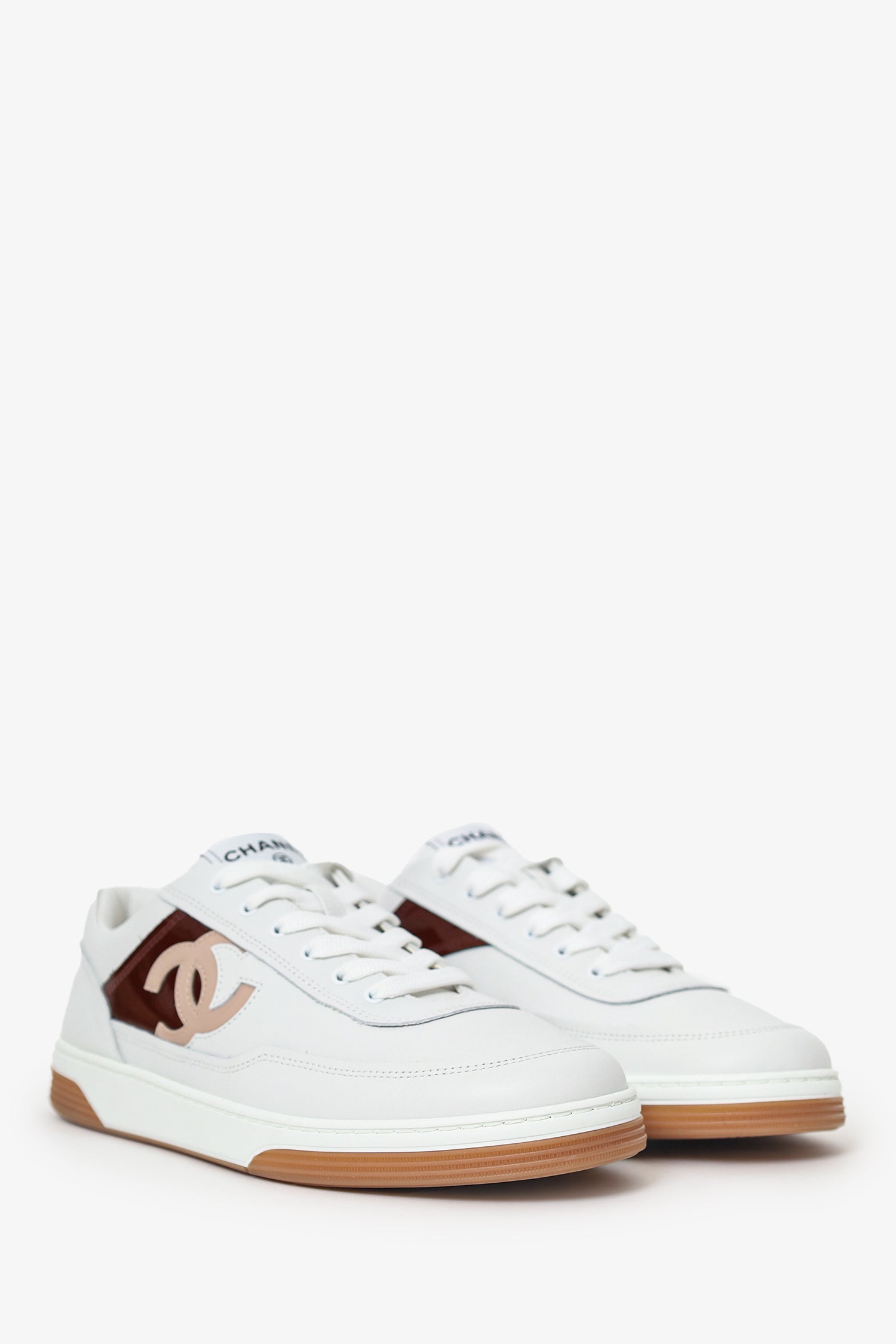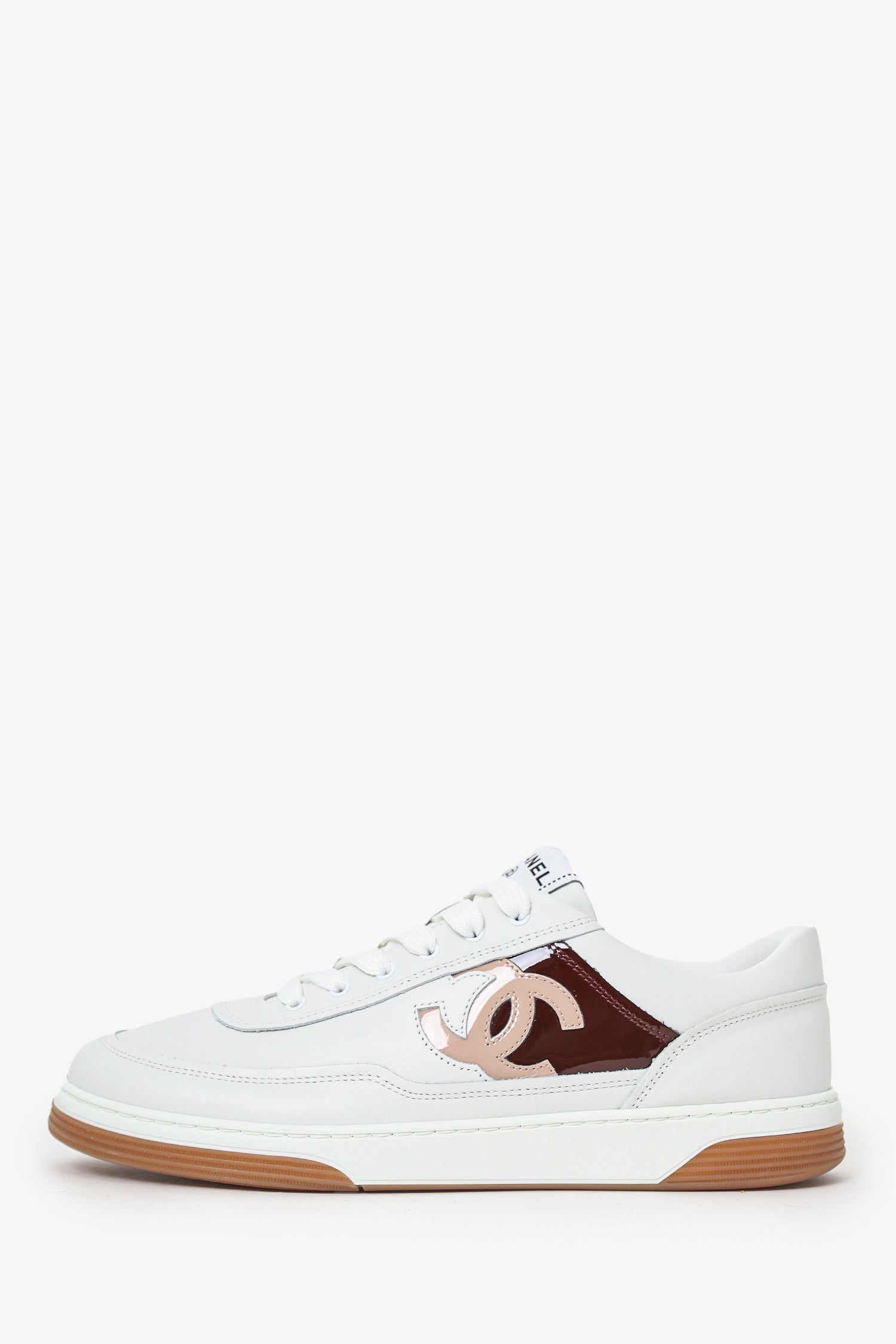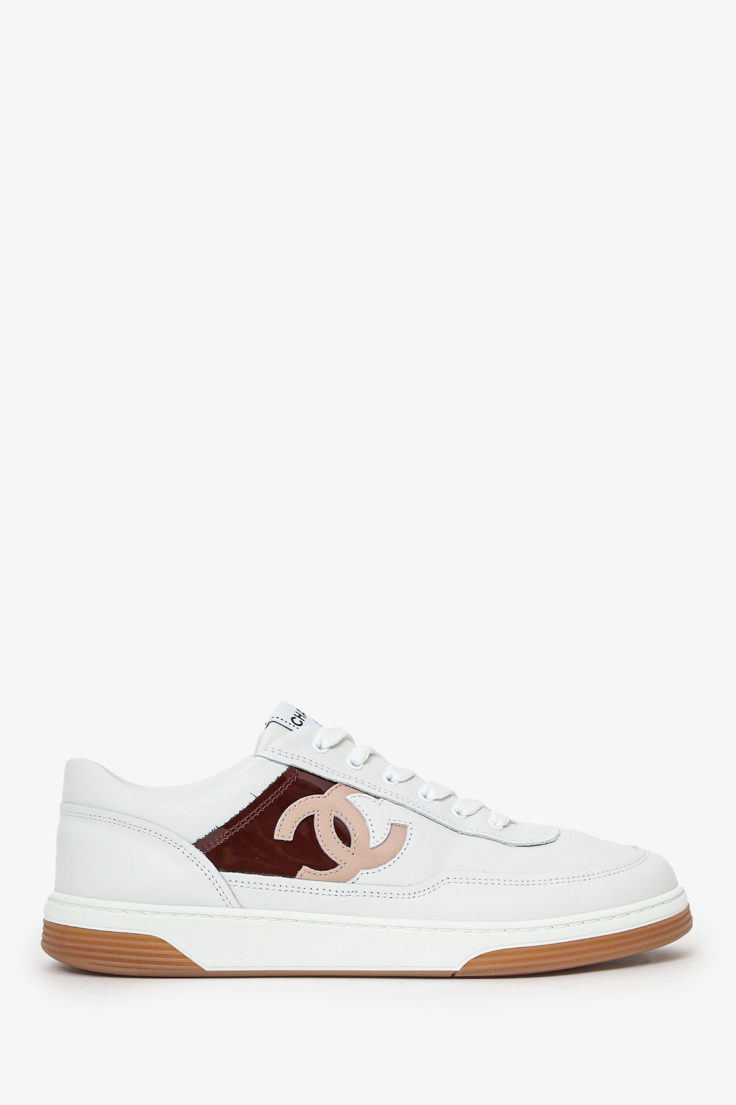 Pre-Loved Chanel™ White/Burgundy Interlocking CC Logo Sneakers Size 39
