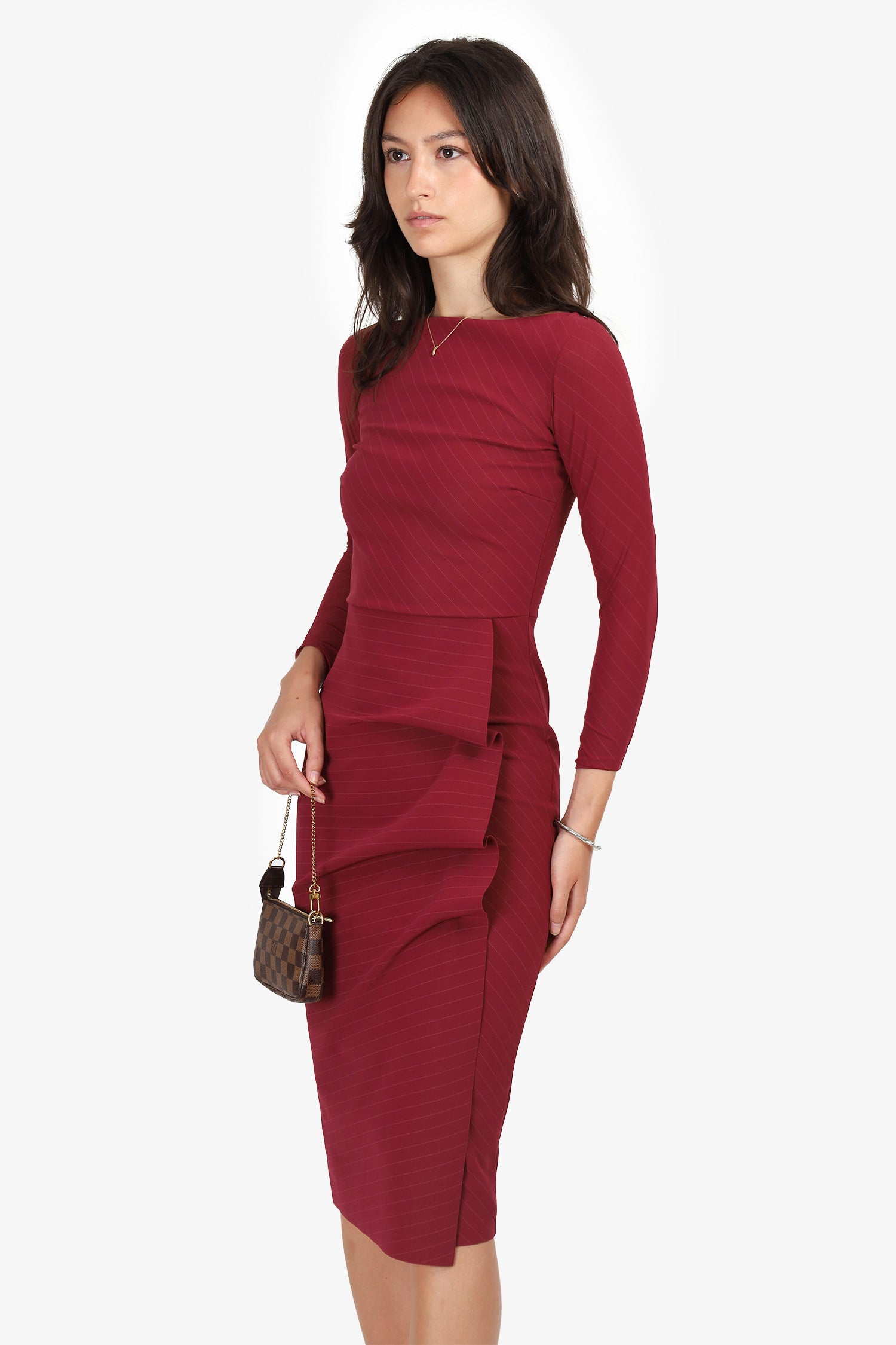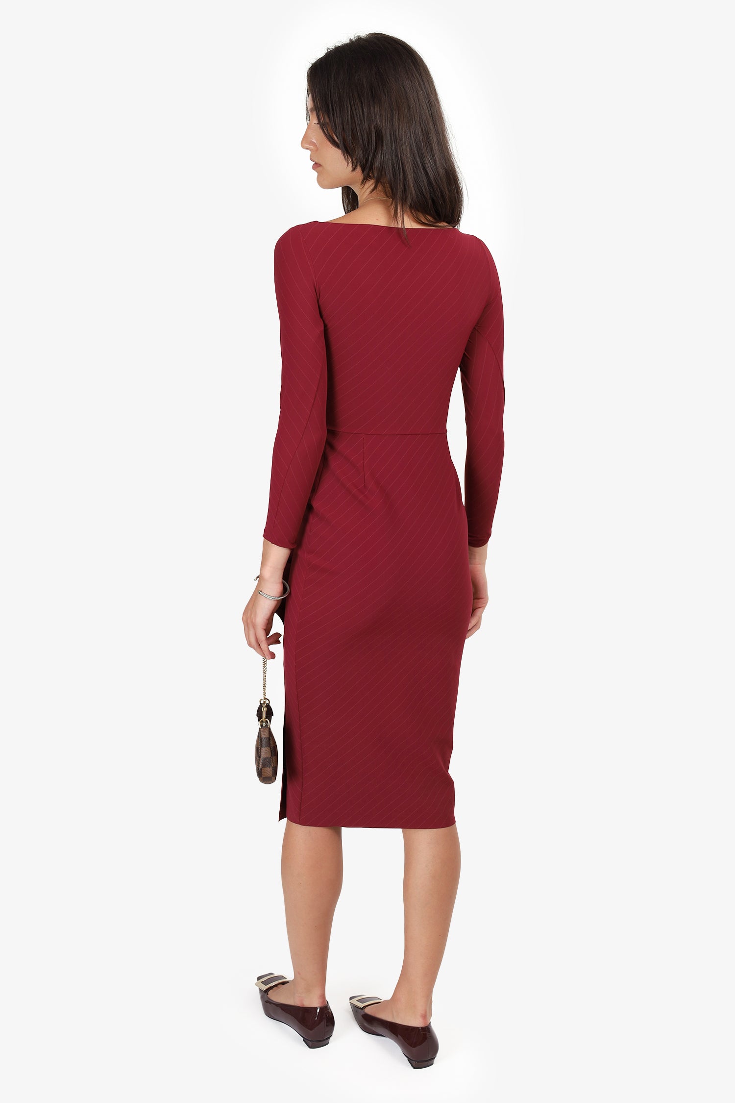 Chiara Boni La Petite Robe Red Striped Long Sleeve Midi Dress Size 40