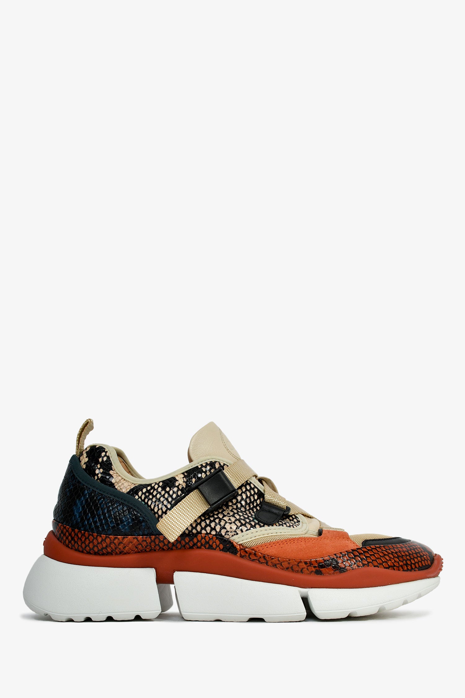 Refresh availabilityChloe Beige/Multi Snake Printed Sneakers. Round toe. Raised rubber soles. Tonal stitching.