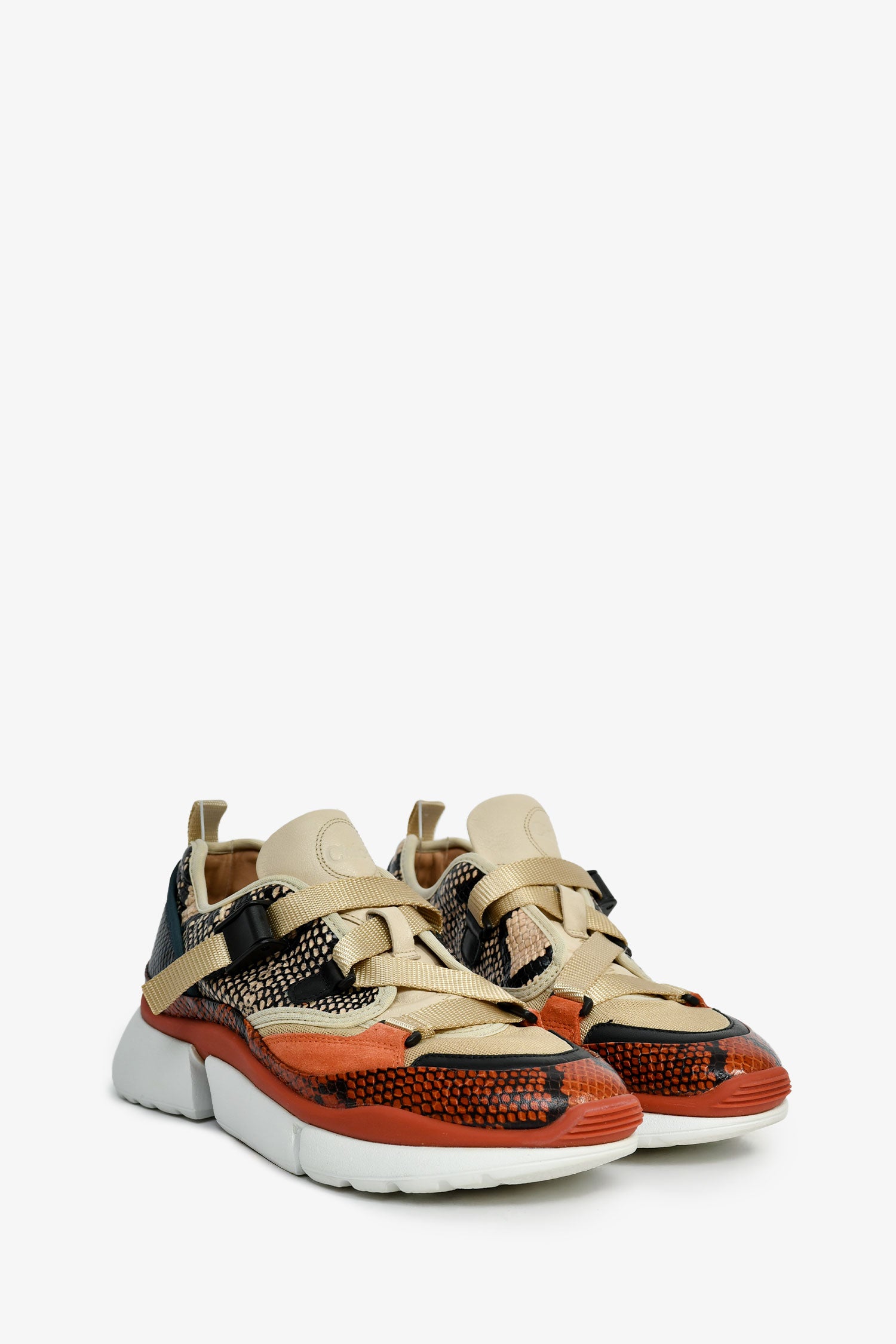 Chloe Beige/Multi Snake Printed Sneakers Size 40