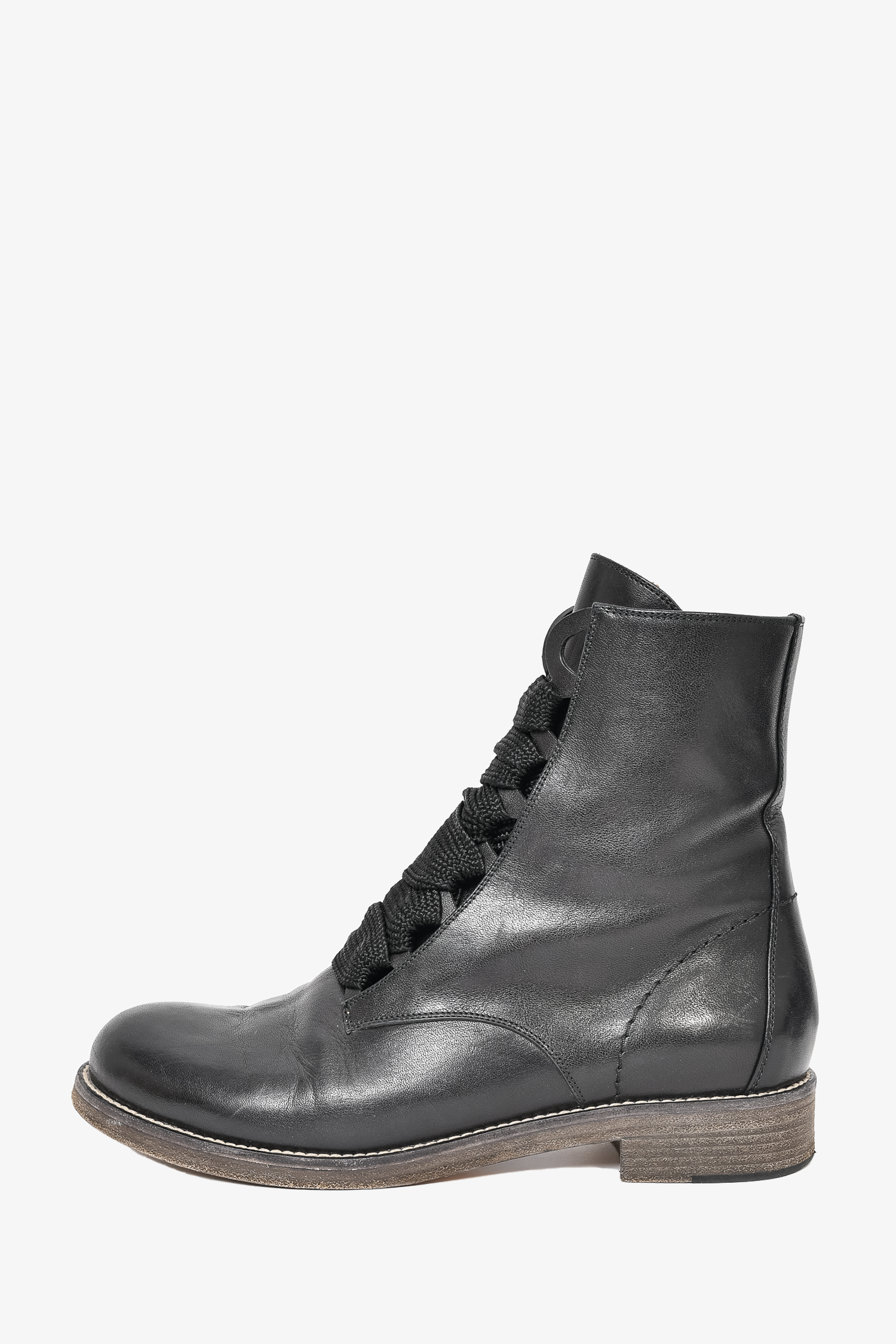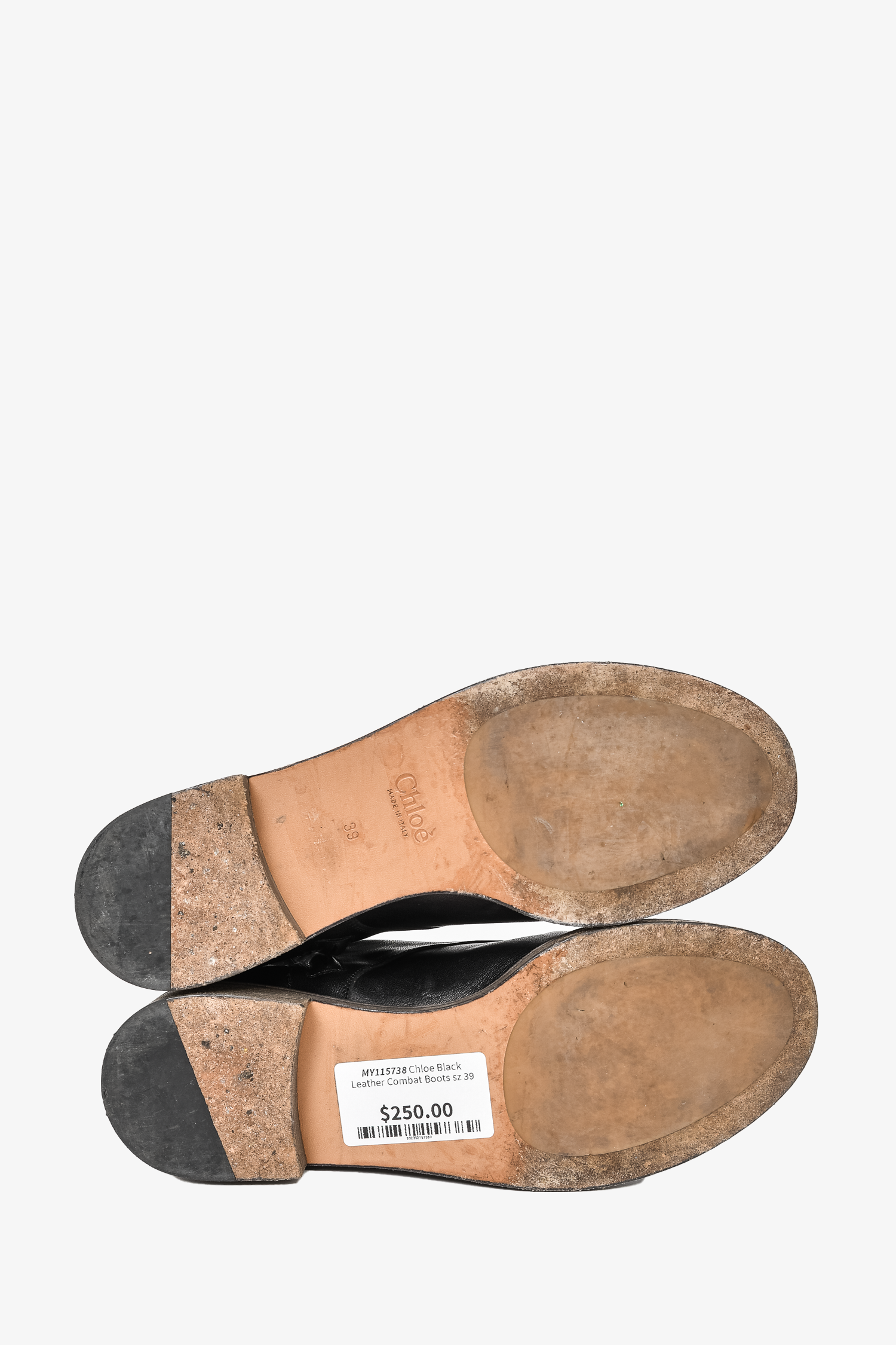 Refresh availabilityChloe Black Leather Combat Boots. Round toe. Side zipper closure. Lace up front detail. Tonal stitching.