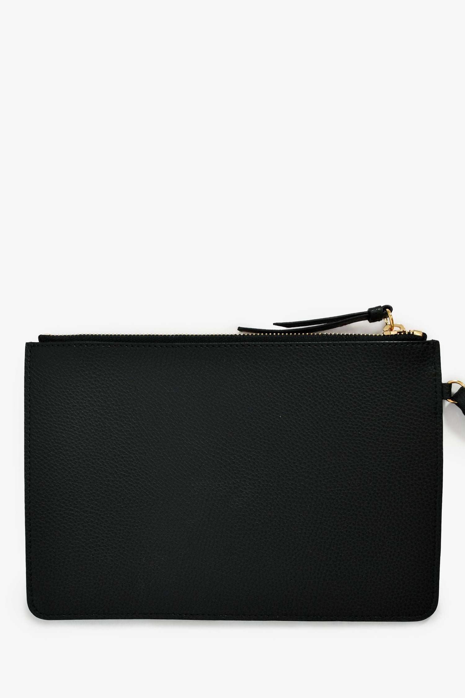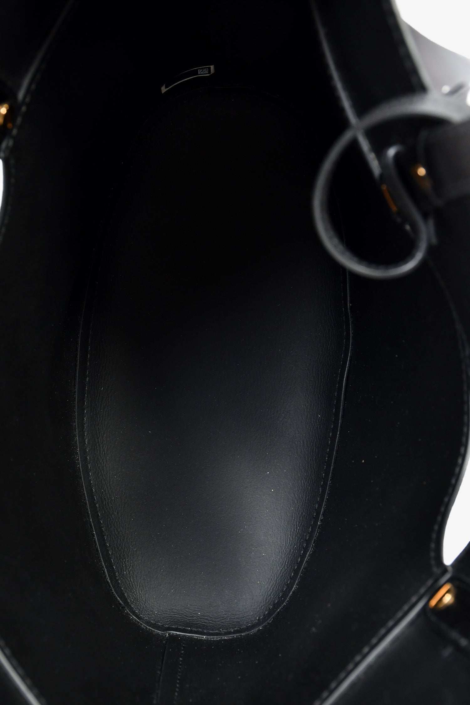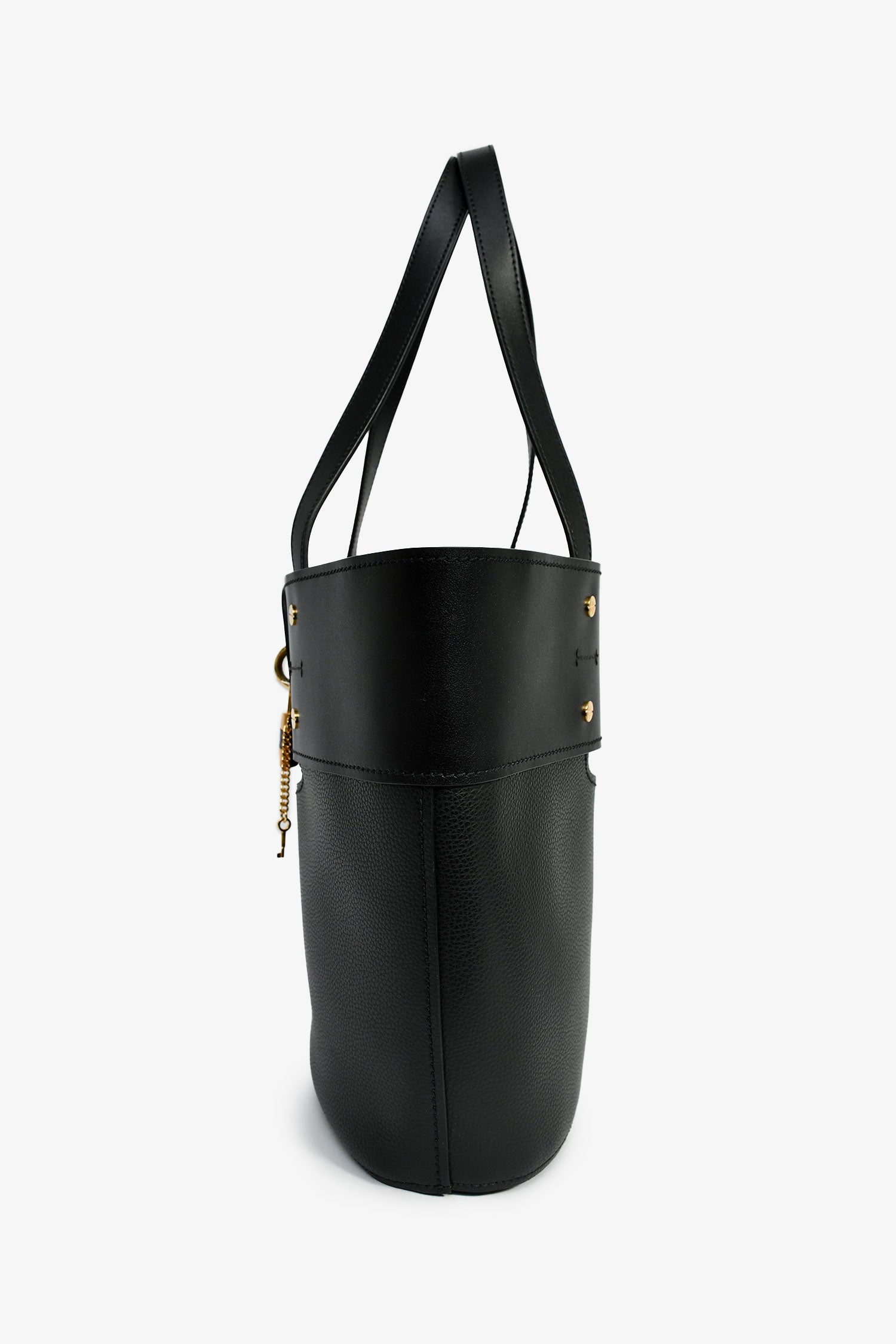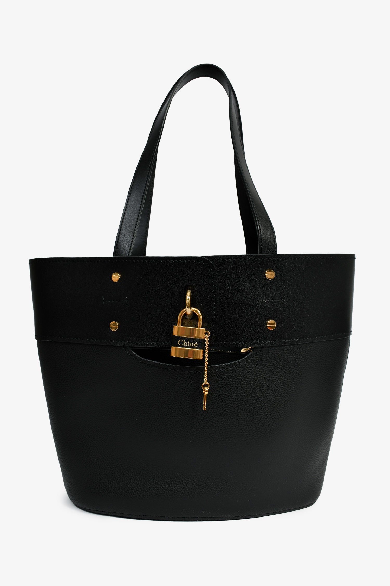Refresh availabilityChloe Black Leather Logo 'Aby' Tote Bag. Dual handles. Open top and interior. Detachable zip pouch. Tonal stitching. Gold-tone hardware.