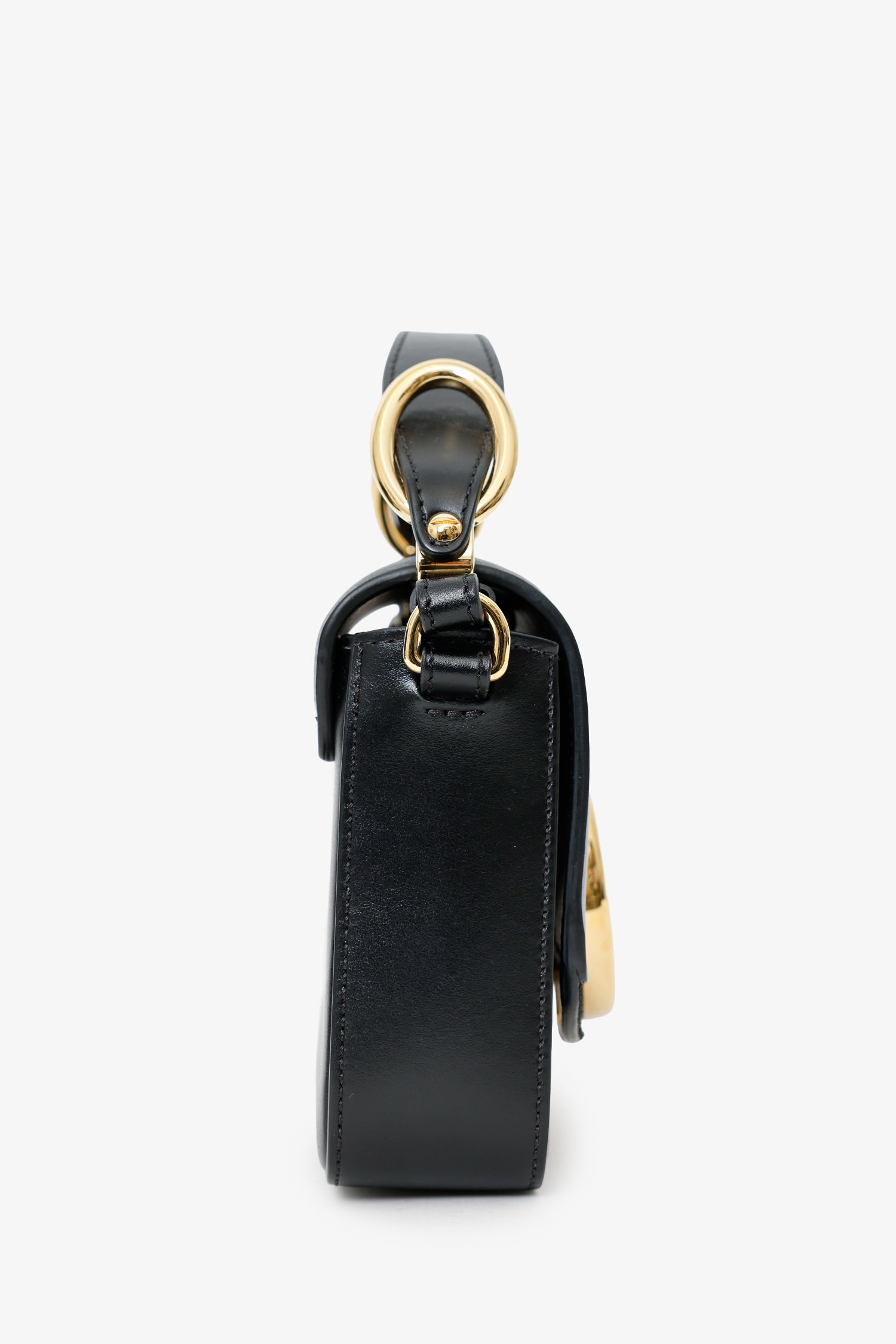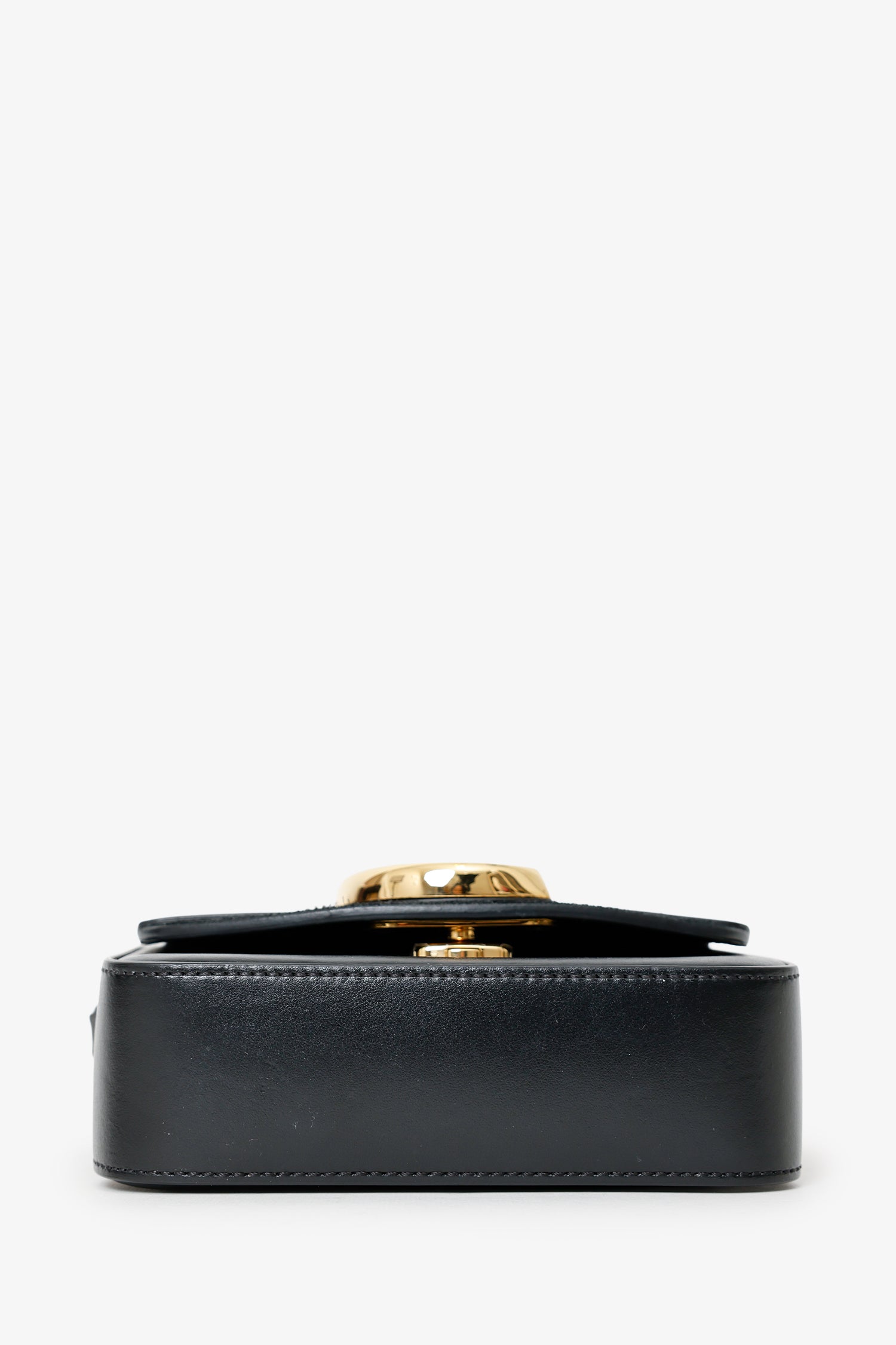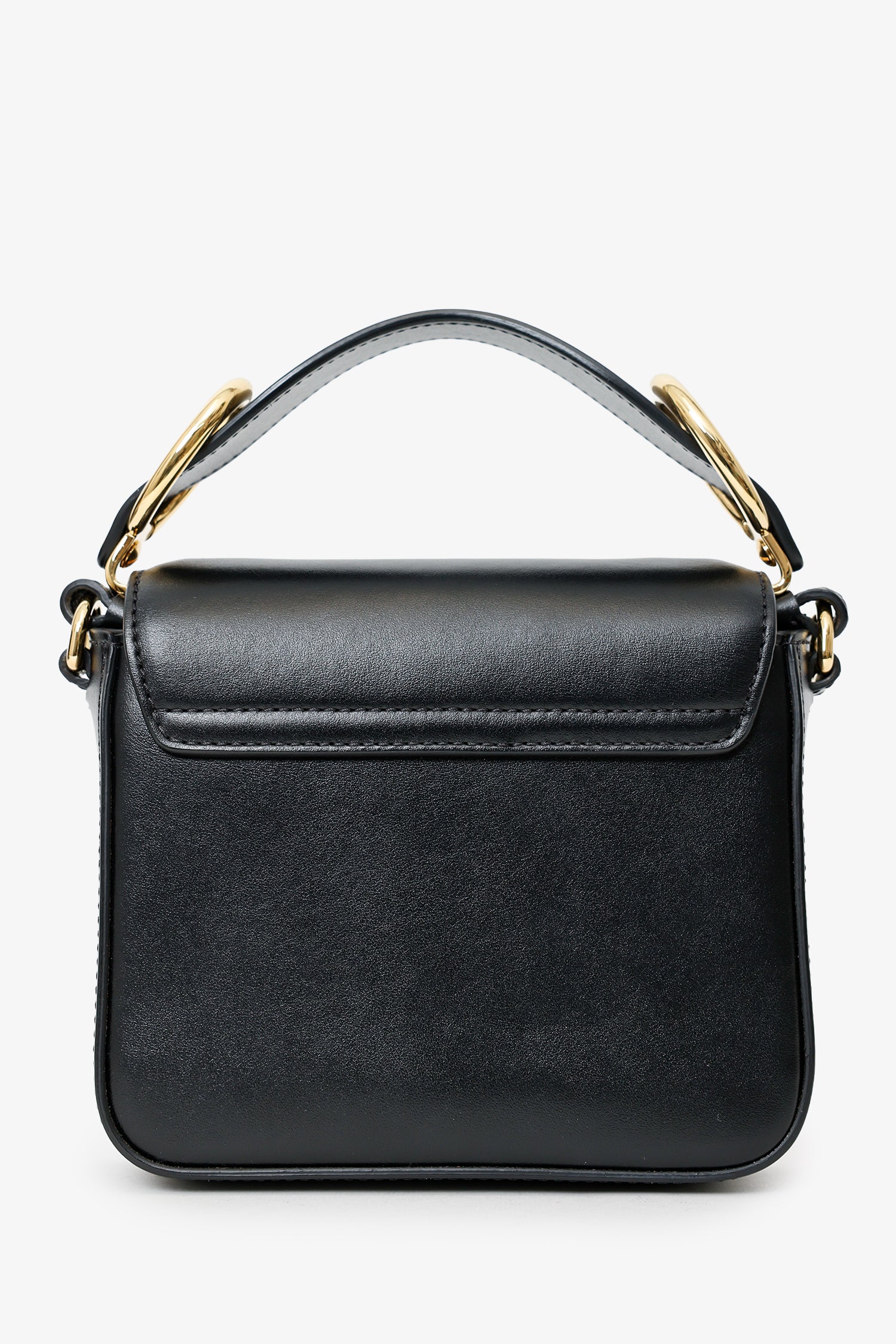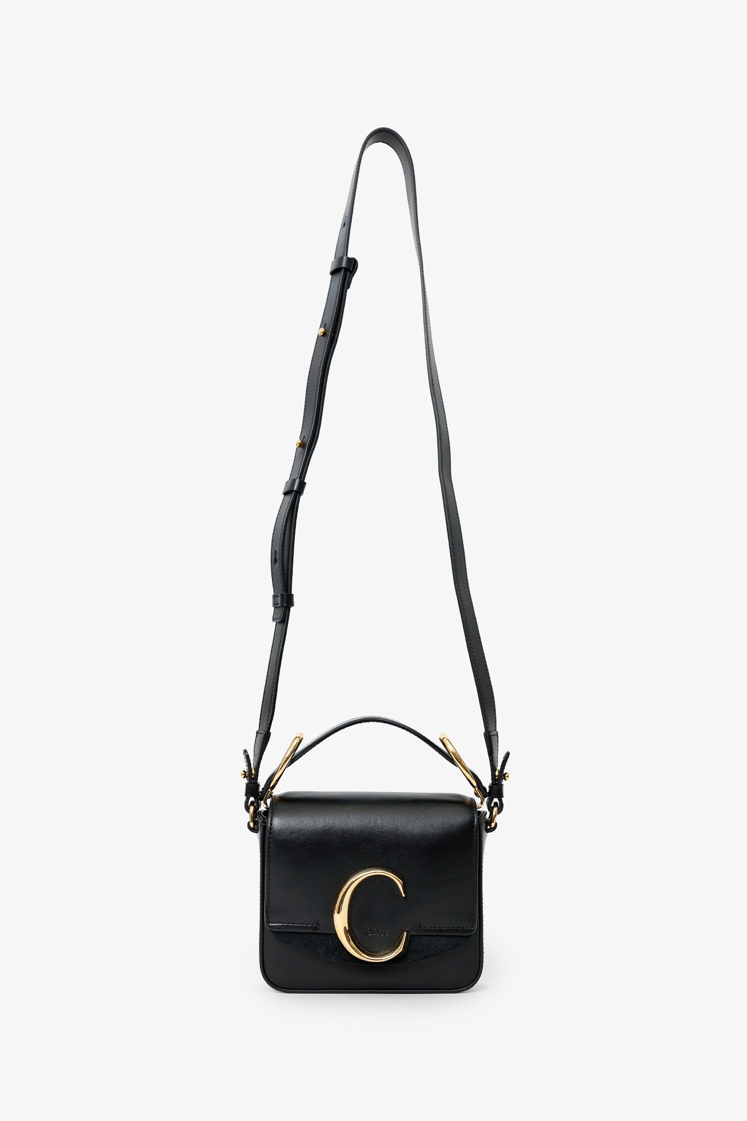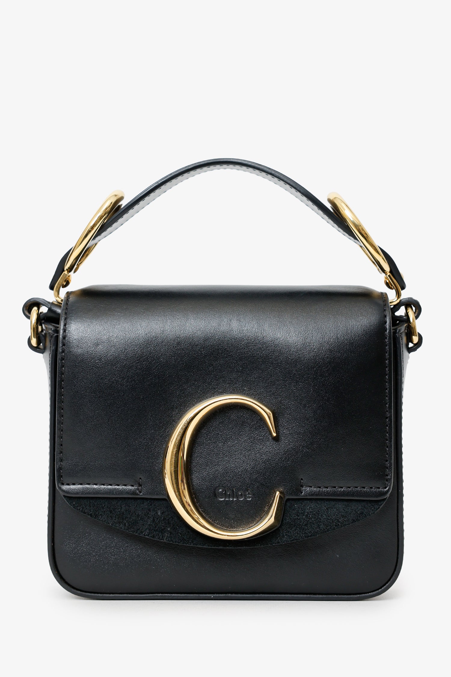 Refresh availabilityChloe Black Leather Mini C Bag. Front fold-over flap with push-lock closure. Top handle. Shoulder strap with adjustable pull-through push-pin closure. Lined interior with single rear slip pocket. Gold-tone hardware. Tonal stitching.