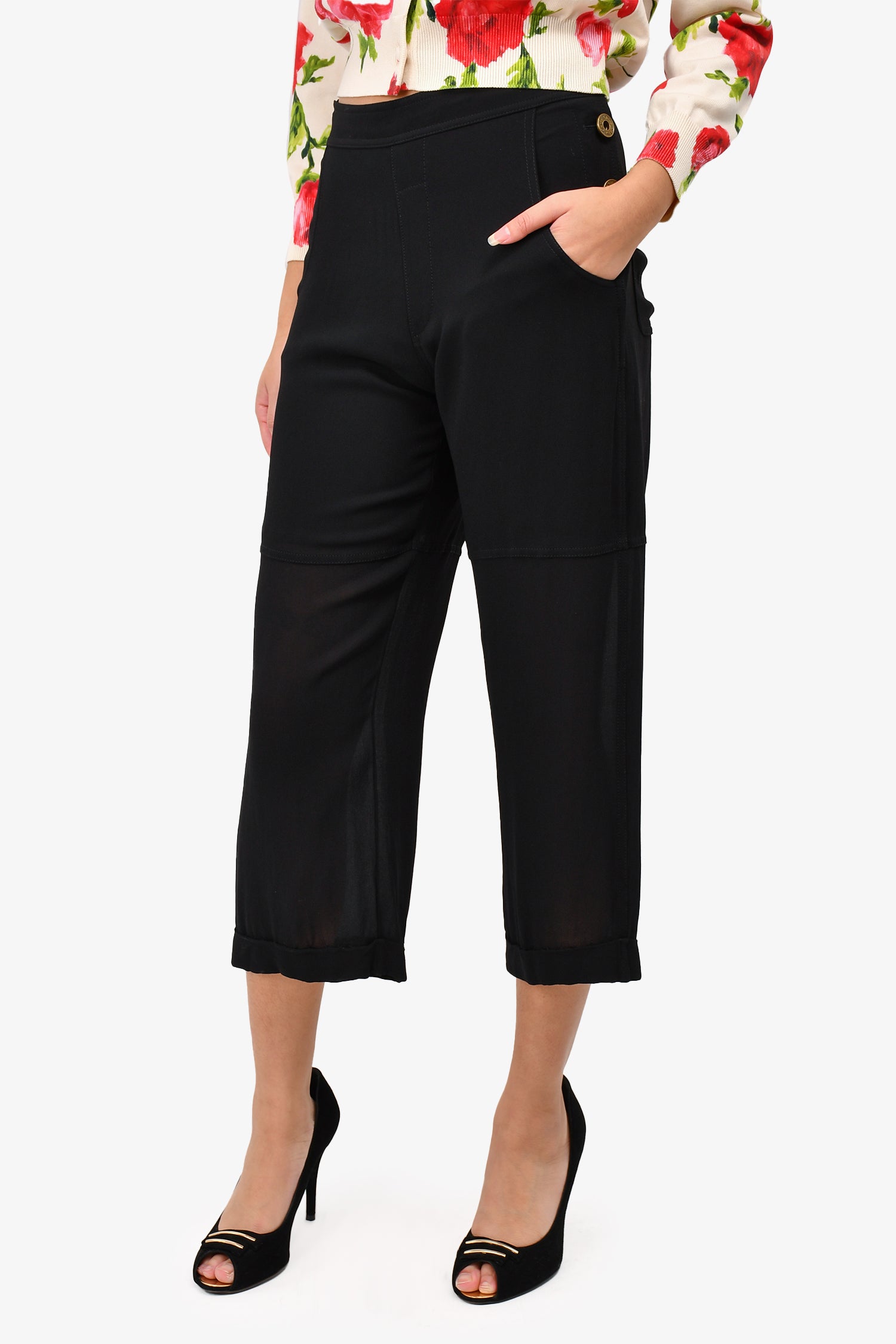 Refresh availabilityChloe Black Sheer Cuffed Straight Leg Trousers. Side button-up closures. Front and rear pockets.