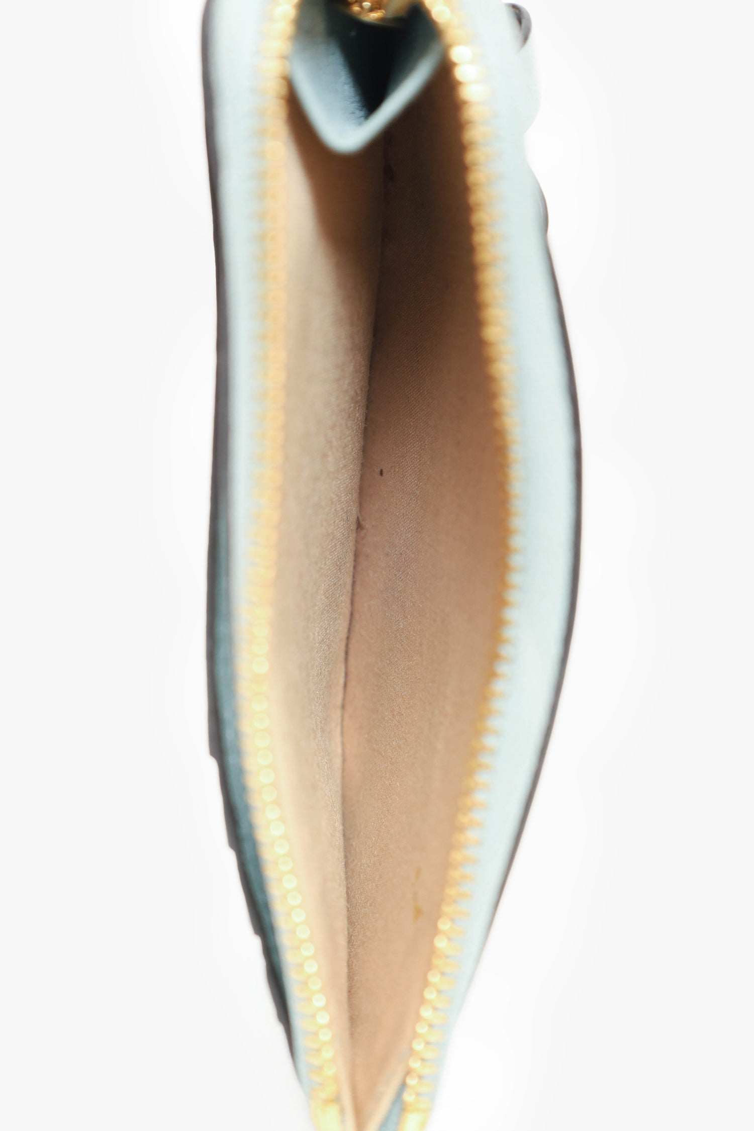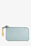 Refresh availabilityChloe Blue Leather Alphabet Zip Coin Purse. Top zip closure with charms attached. Open interior. 1 exterior slip pocket on rear with 4 card slots. Gold-tone hardware. Tonal stitching.