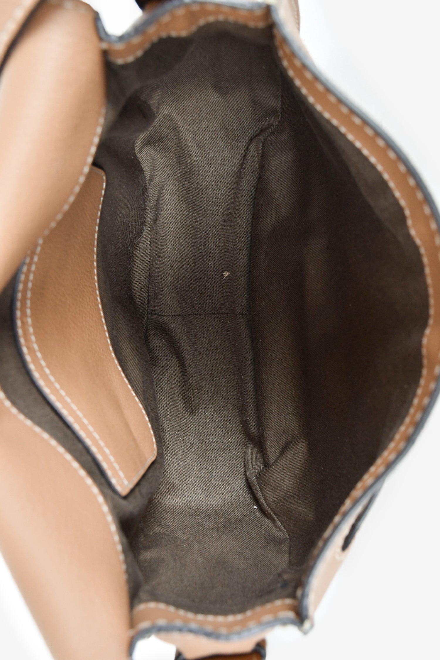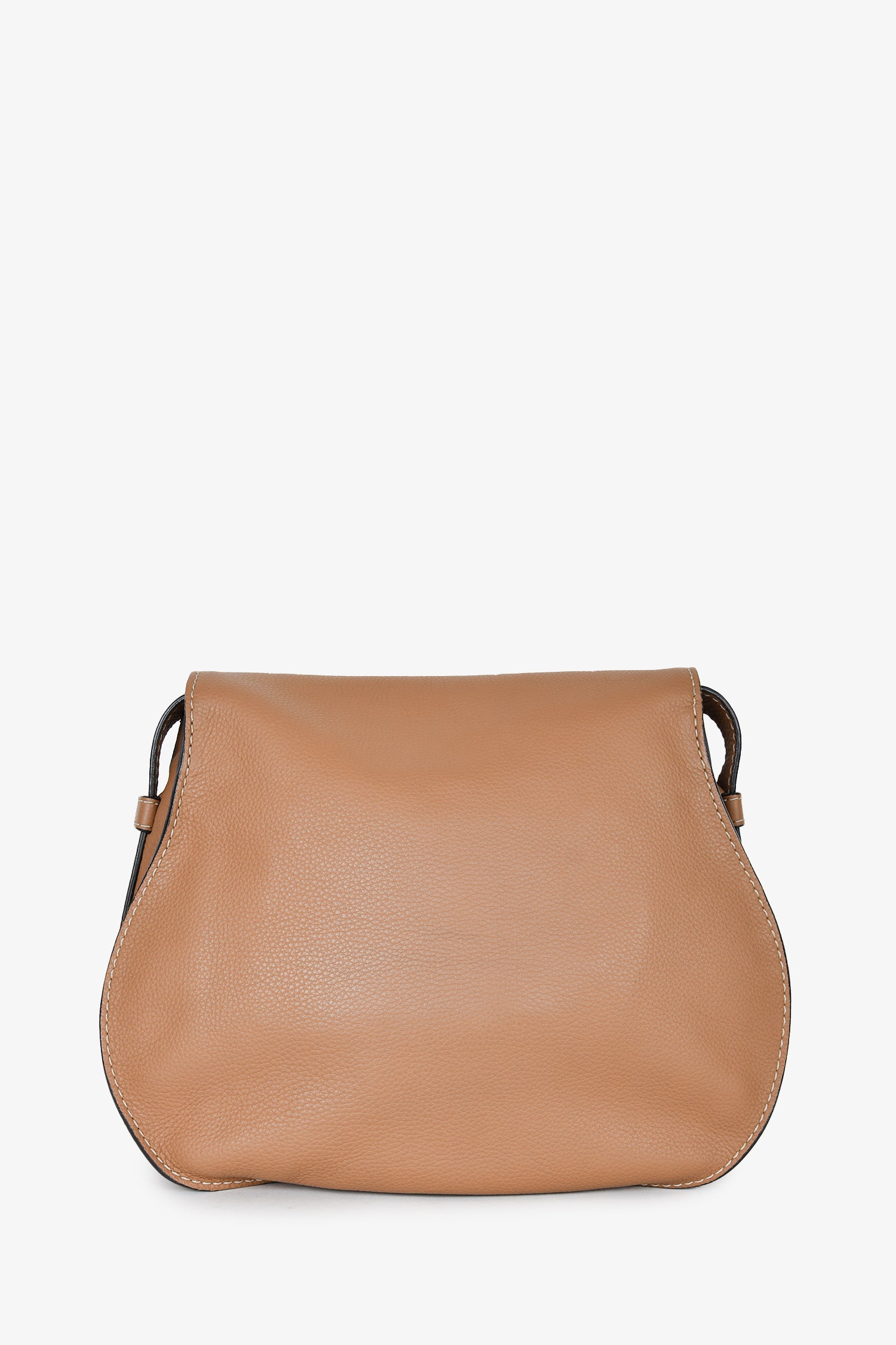 Refresh availabilityChloe Brown Leather Large Marcie Crossbody. Front fold-over flap with strap closure. Front slip pocket. Dark olive textile interior lining. Single interior wall slip pocket. Gold-tone hardware. Adjustable strap.