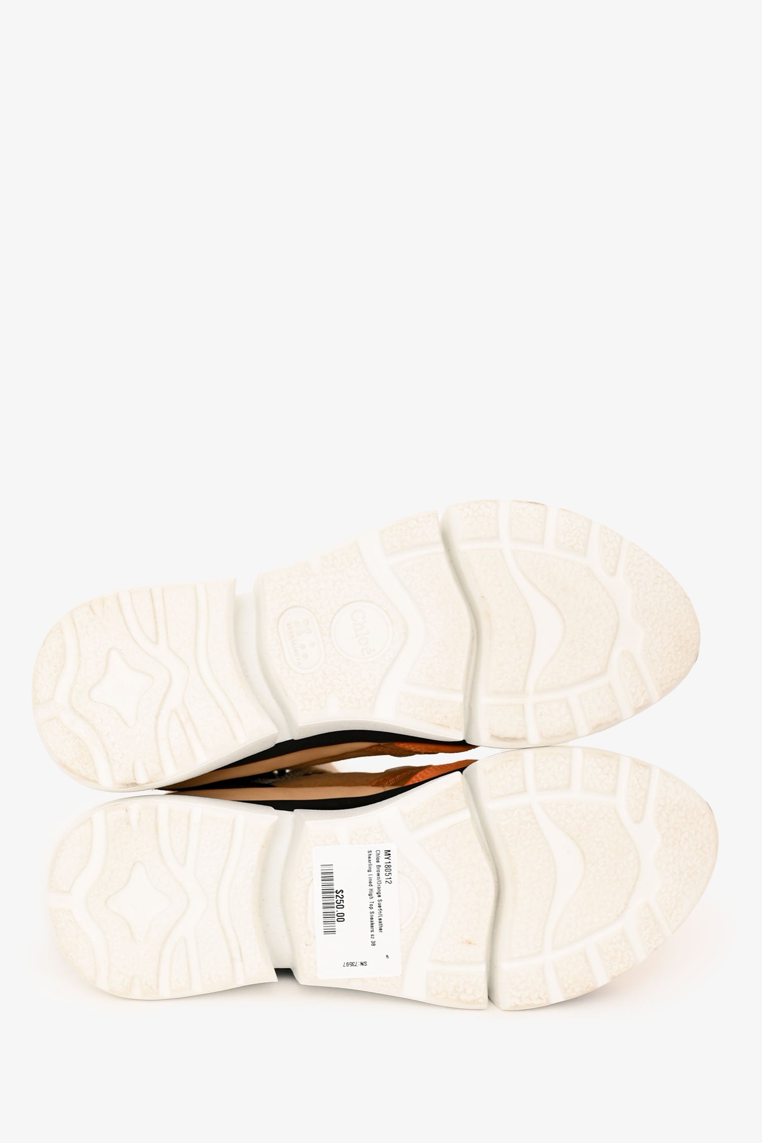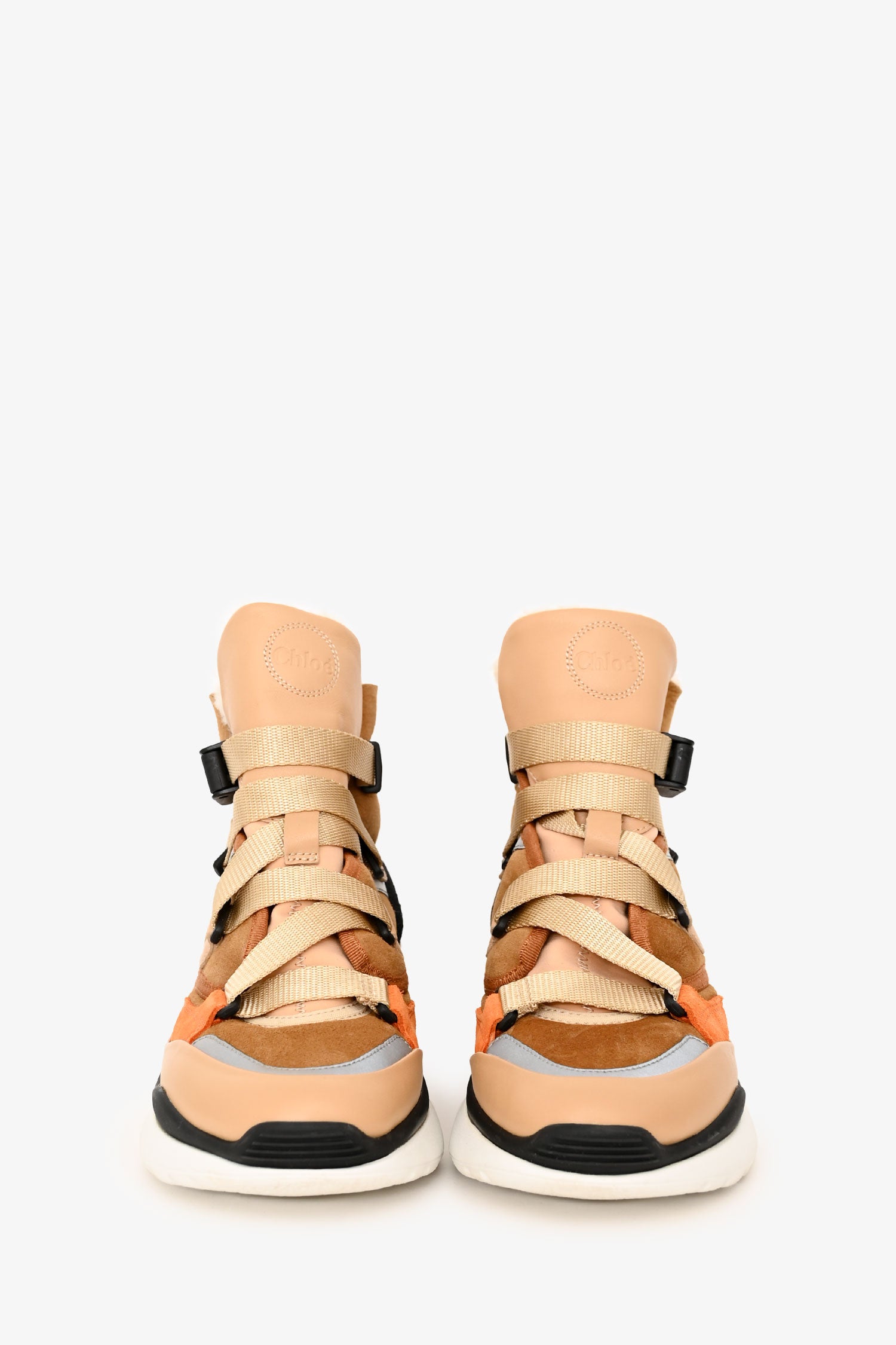 Chloe Brown/Orange Suede/Leather Shearling Lined High Top Sneakers Size 38