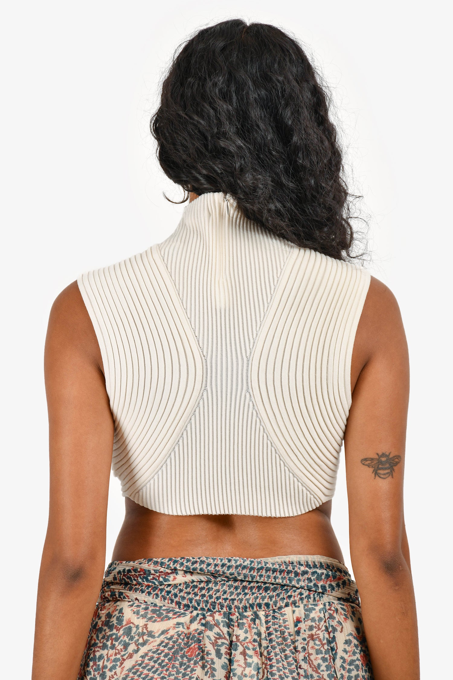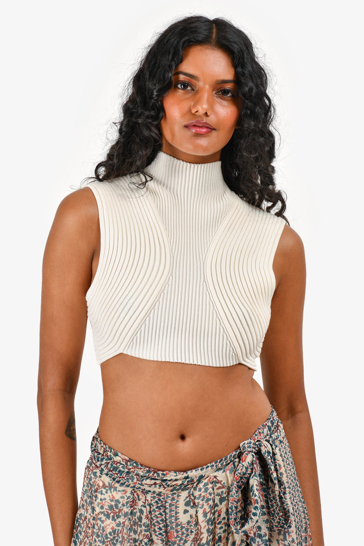 Refresh availabilityChloe Cream Knit Mockneck Crop Top. High neckline. Back zip closure. Tonal stitching.