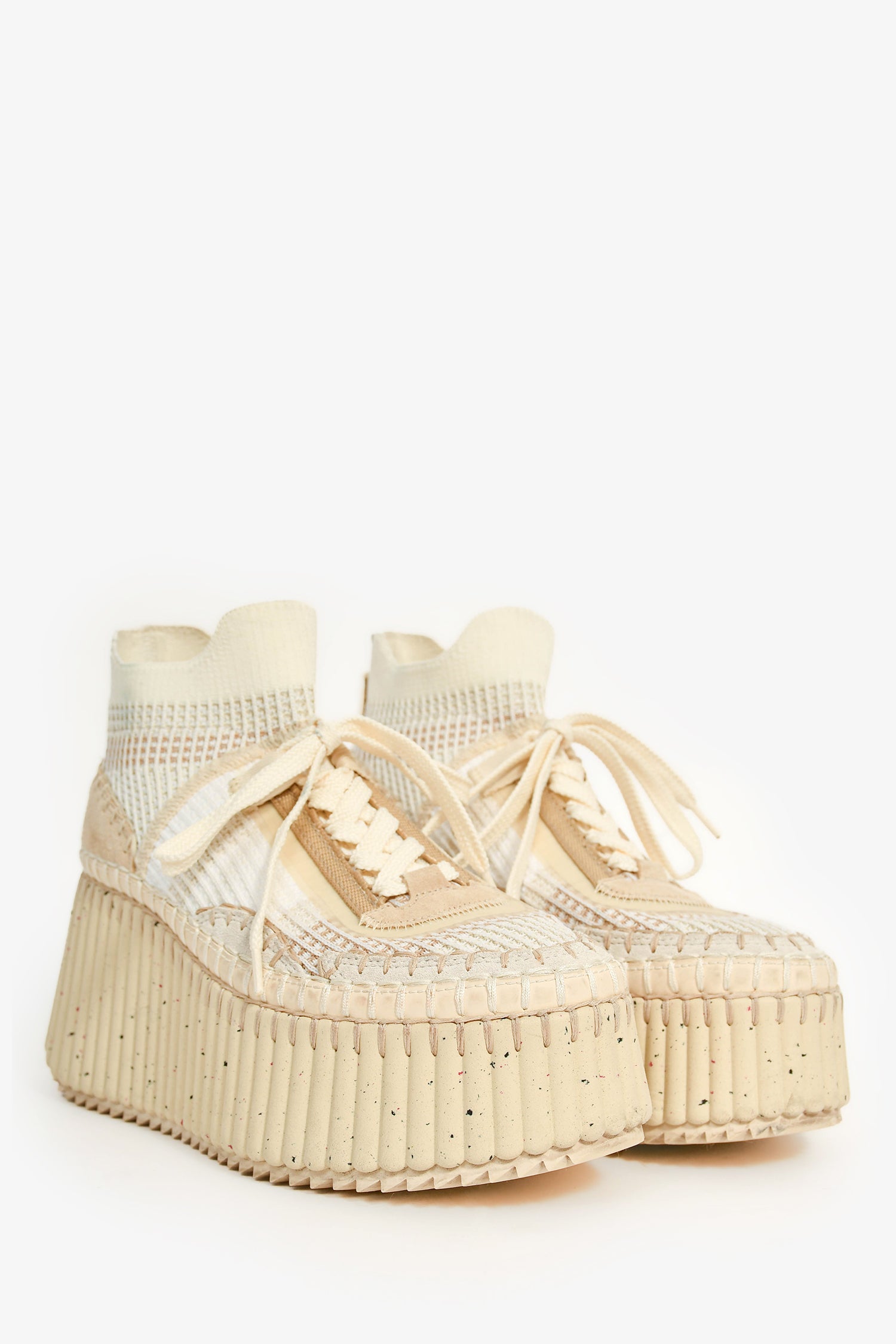 Refresh availabilityChloe Cream Platform 'Nama' Sneakers. Rounded toe. Front lace-closure. Tonal stitching.