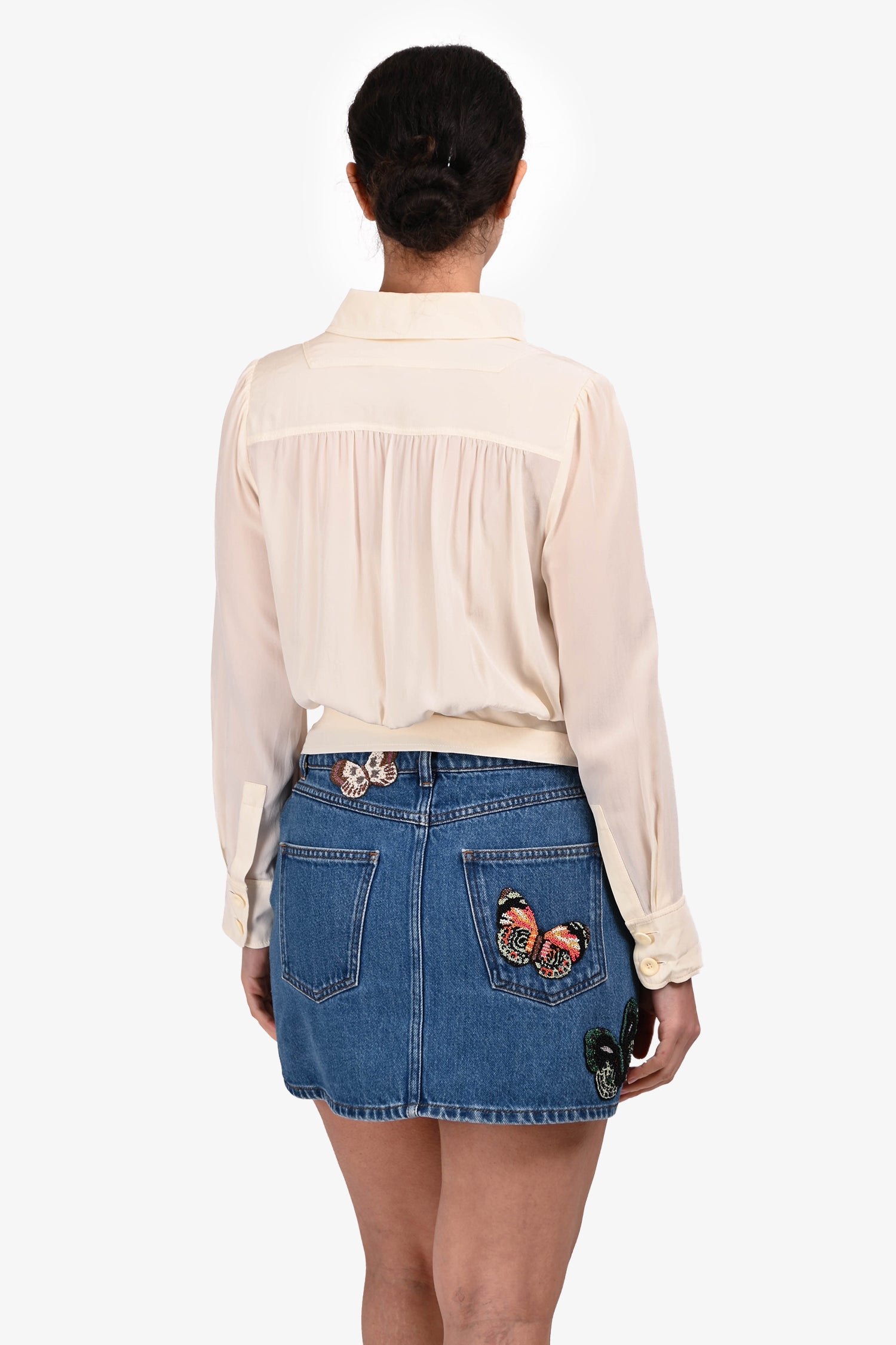 Chloe Cream Silk Tie Hem Button Down Top Size 36