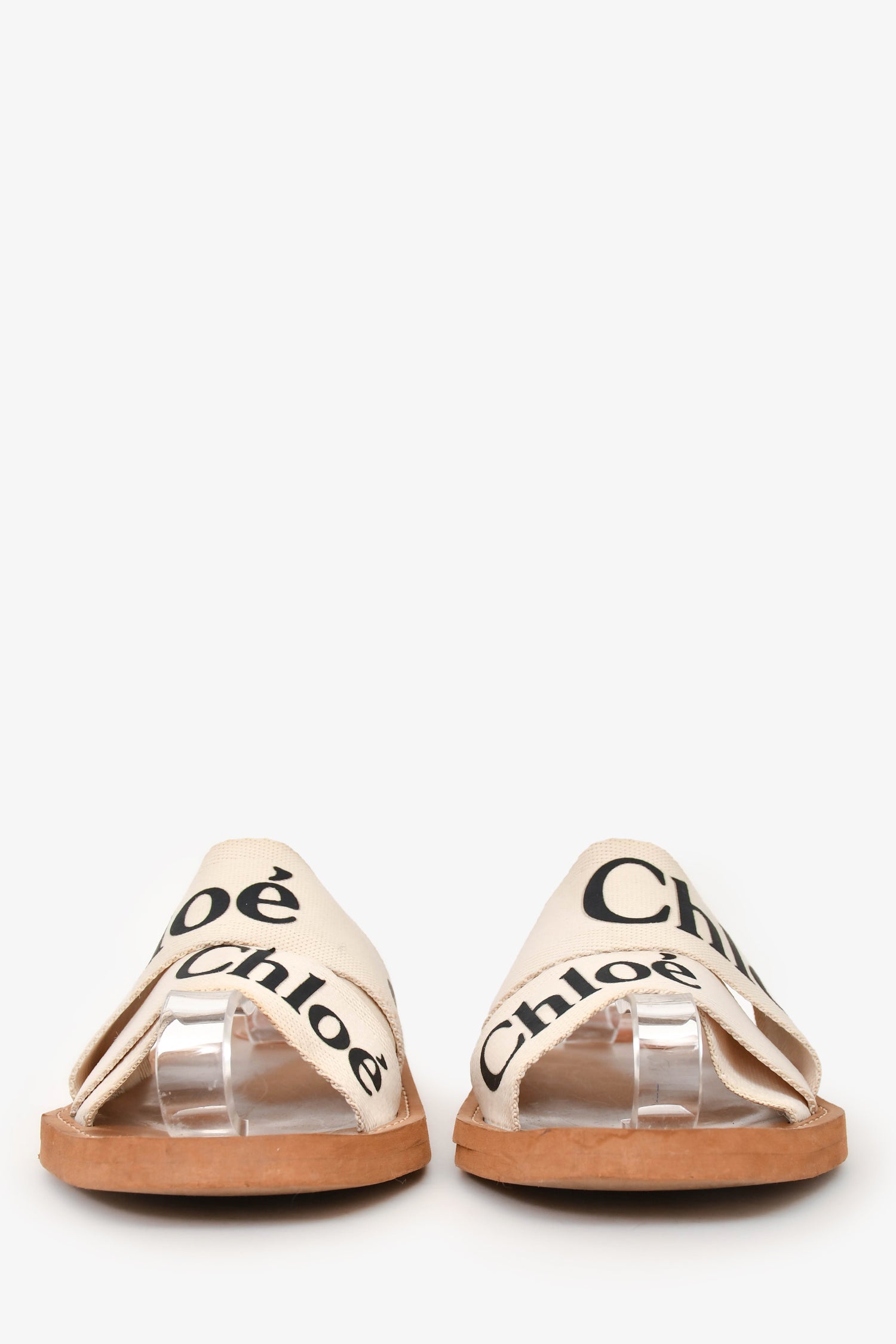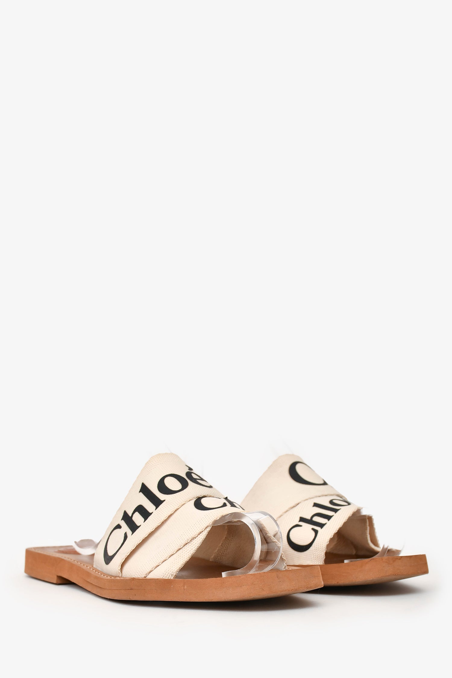 Chloe Cream Woody Linen Logo Slide Sandals Size 40