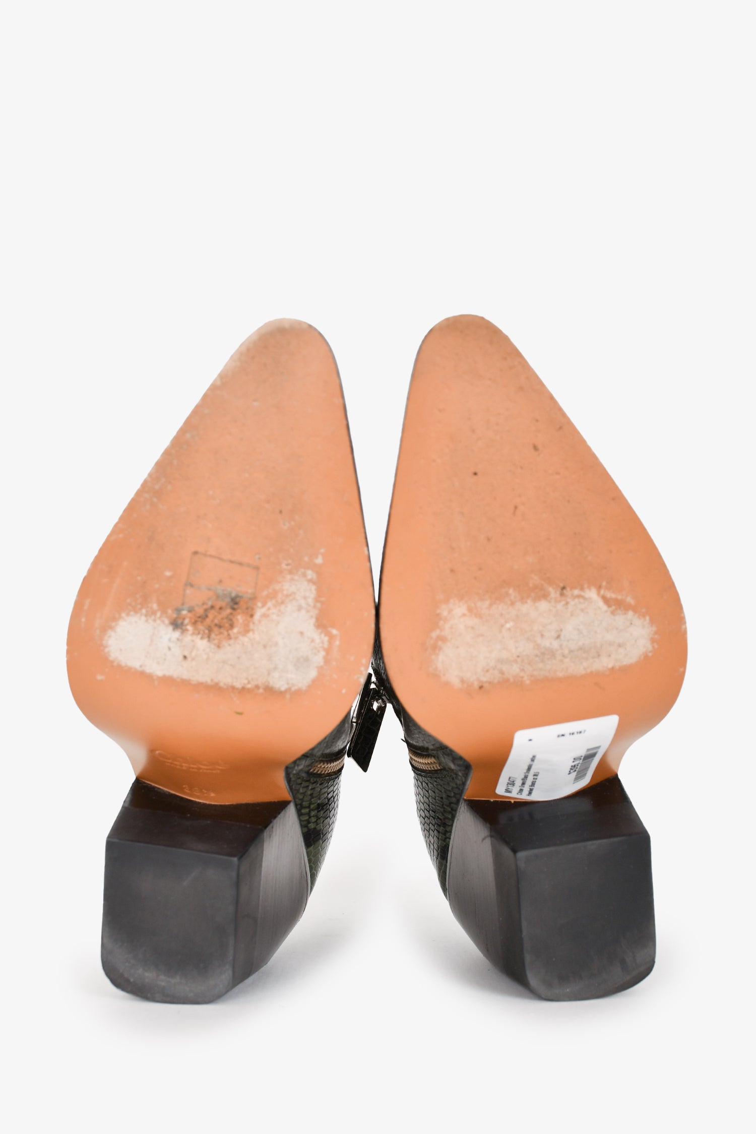Chloe Green/Black Snakeskin Leather Heeled Boots Size 38.5