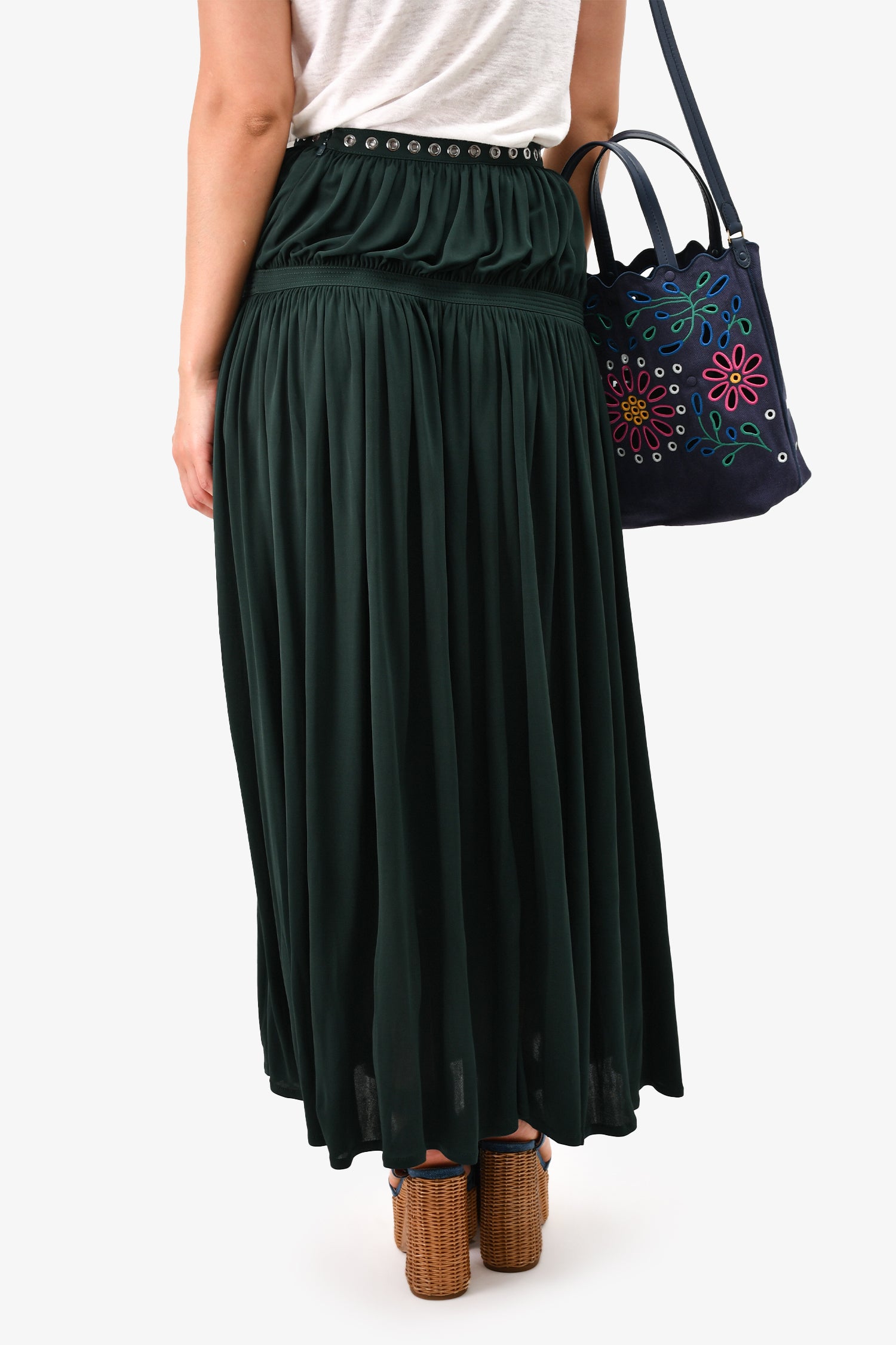 Chloe Green Grommet Detail Maxi Skirt Size 34