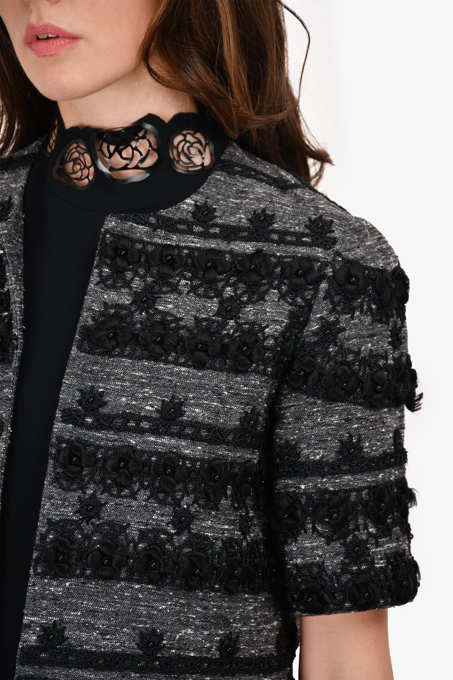 Refresh availabilityChloe Grey Embroidered Floral Cropped Jacket. Open front. Lined.