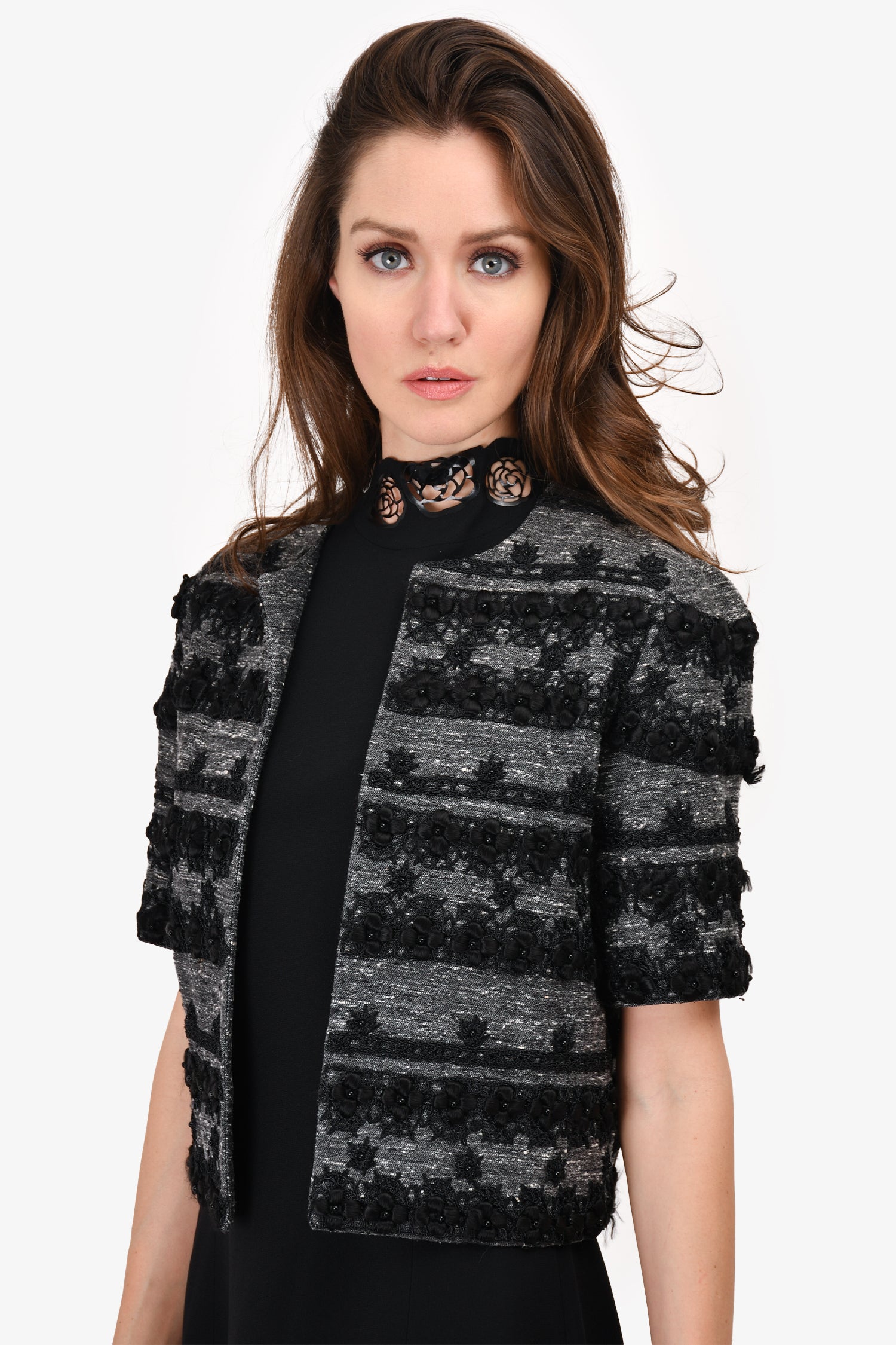 Chloe Grey Embroidered Floral Cropped Jacket Size 38