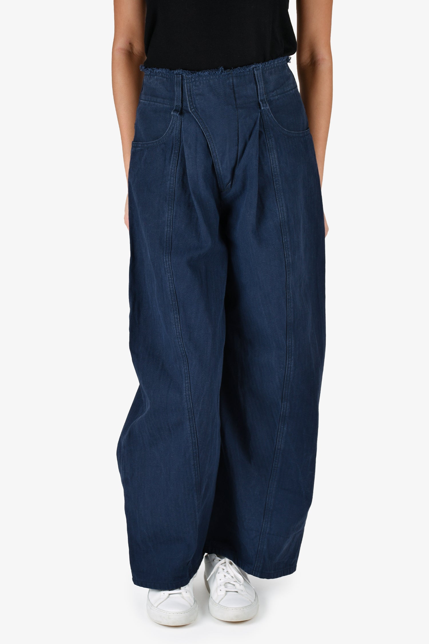 Refresh availabilityChloe Indigo Denim Ultra Wide Leg Jeans.Front zip and hook closures. Front and rear pockets. Waist belt loops. Tonal stitching.