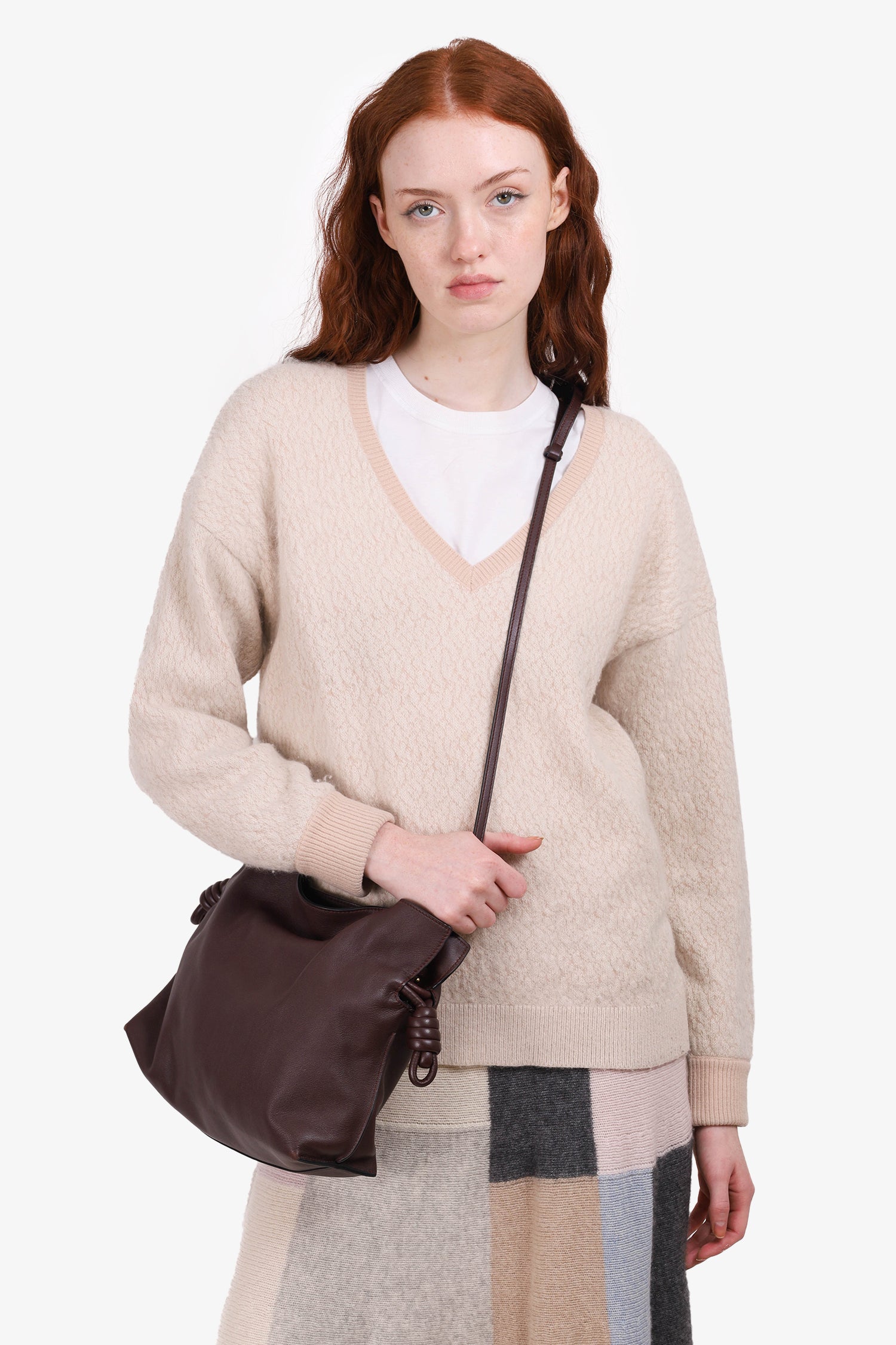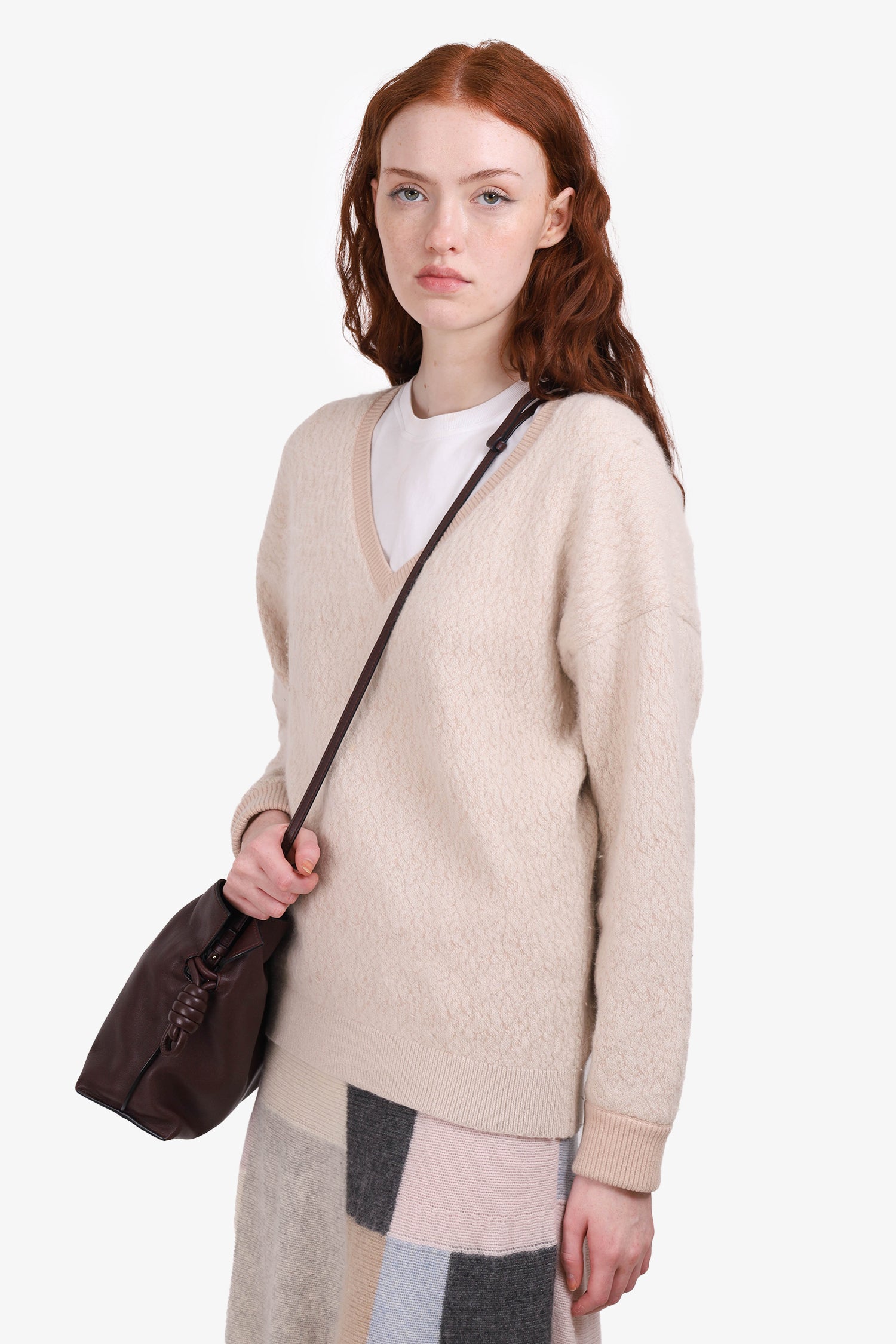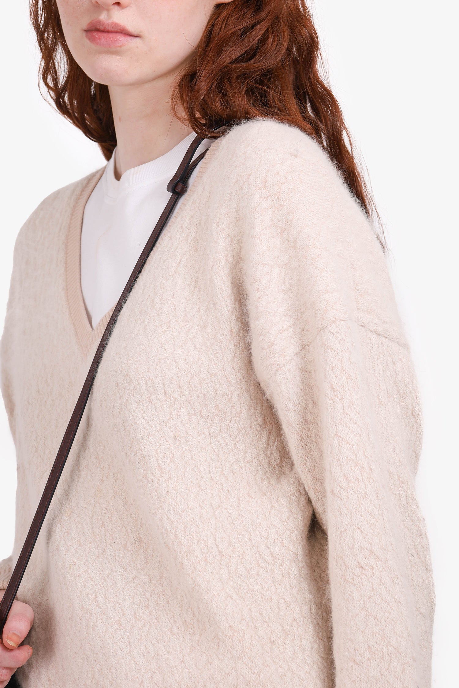 Refresh availabilityChloe Light Pink Wool V-Neck Sweater. Pull-on. V-neckline. Ribbed bottom hem, sleeve cuffs and neckline. Unlined. Tonal stitching.