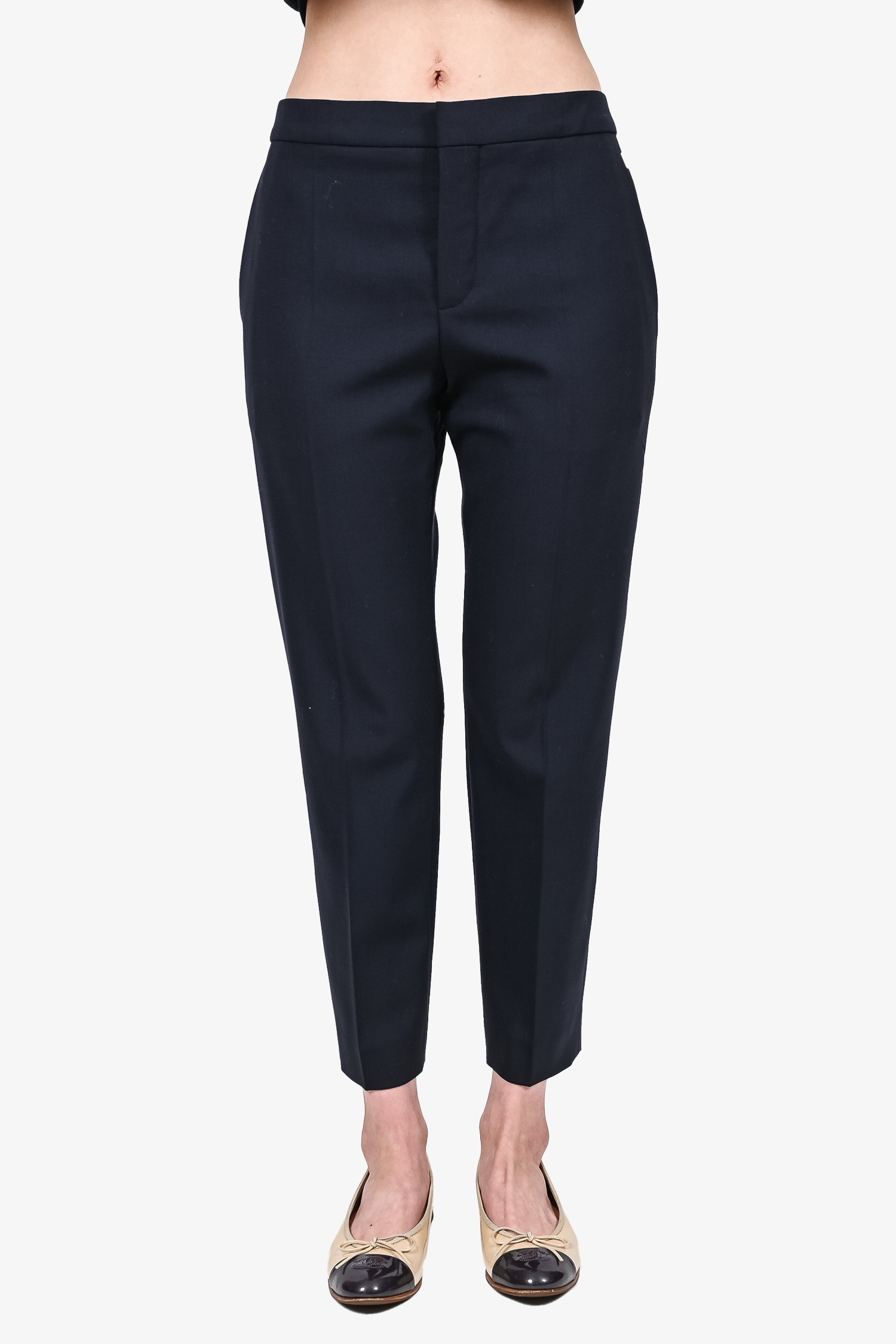 Chloe Navy Blue Virgin Wool Cropped Trousers Size 38
