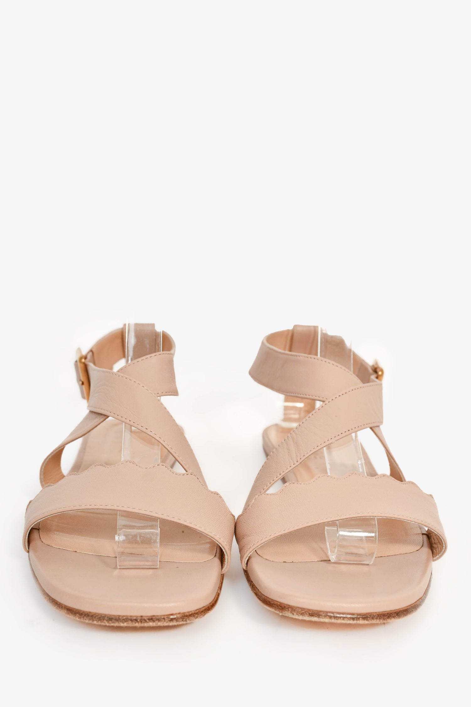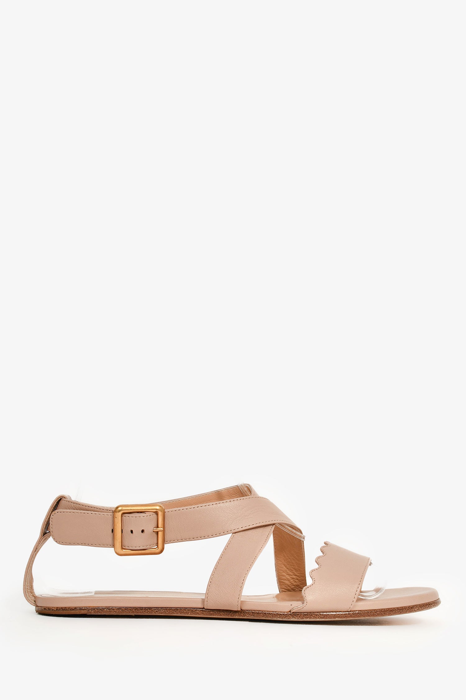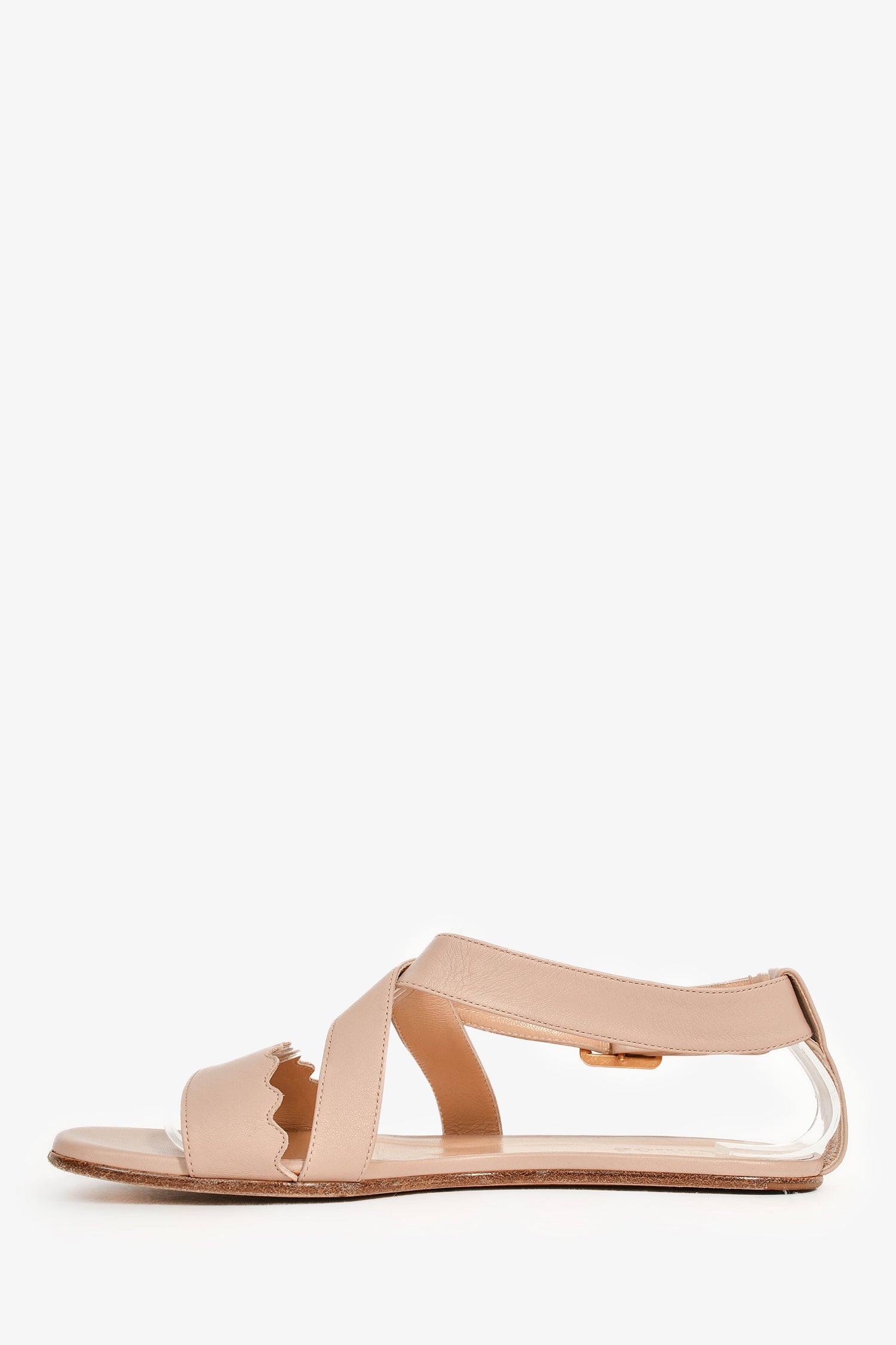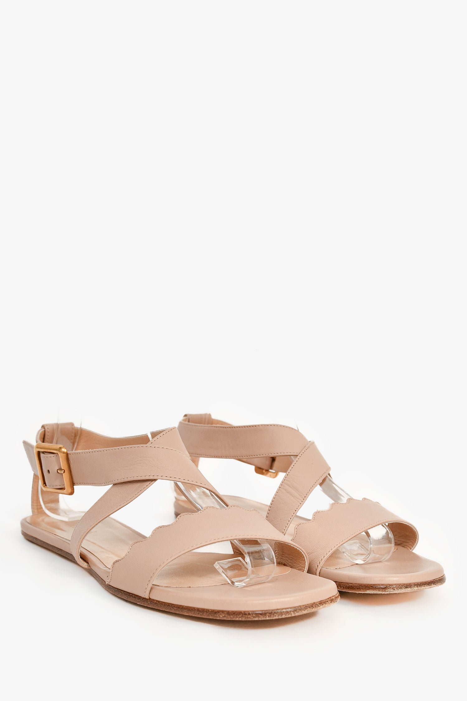 Refresh availabilityChloe Nude Scalloped Buckle Sandals. Rounded toe. Leather trimming and insole. Godl-tone hardware. Tonal stitching.