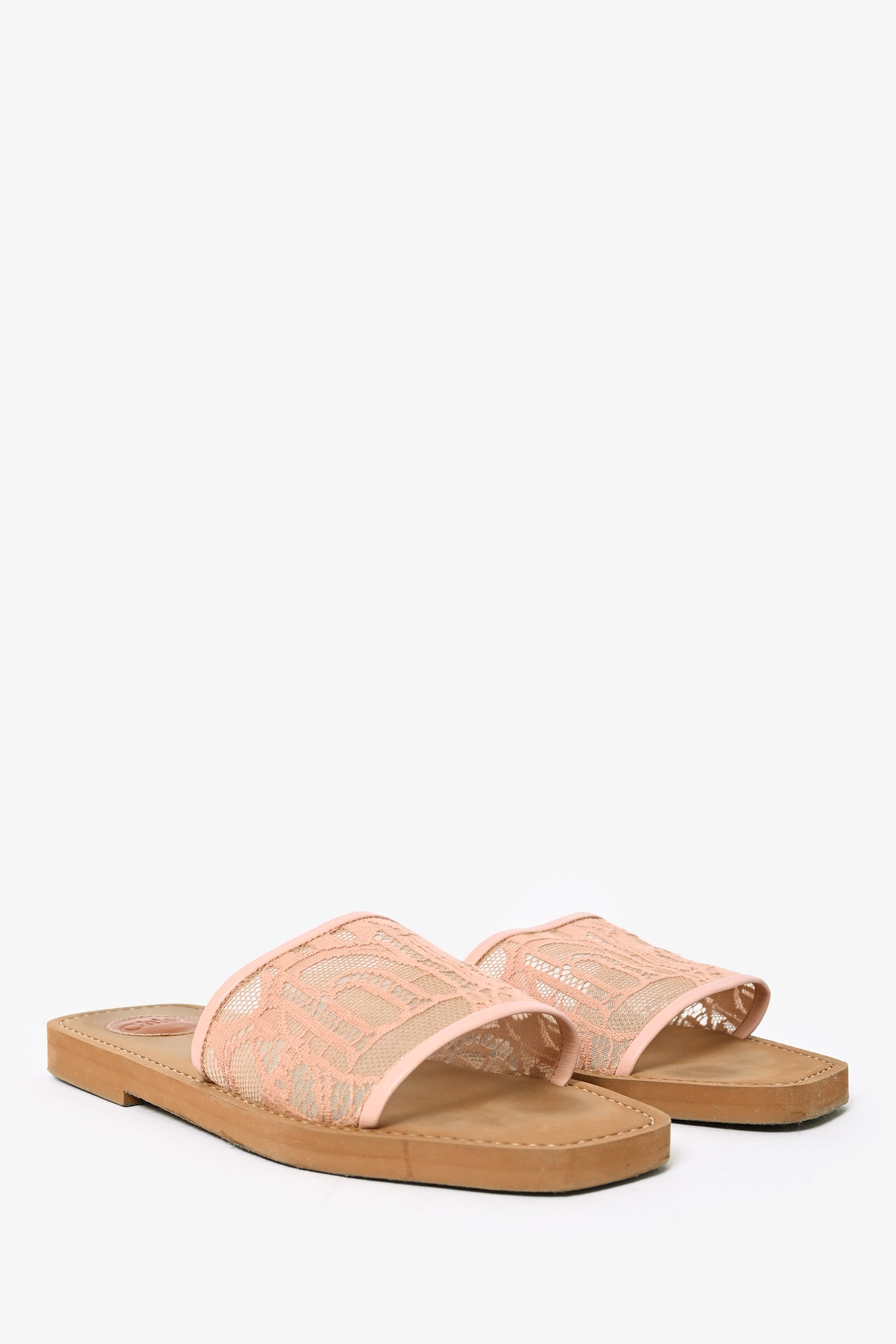 Chloe Pink Lace 'Woody' Sandals Size 40
