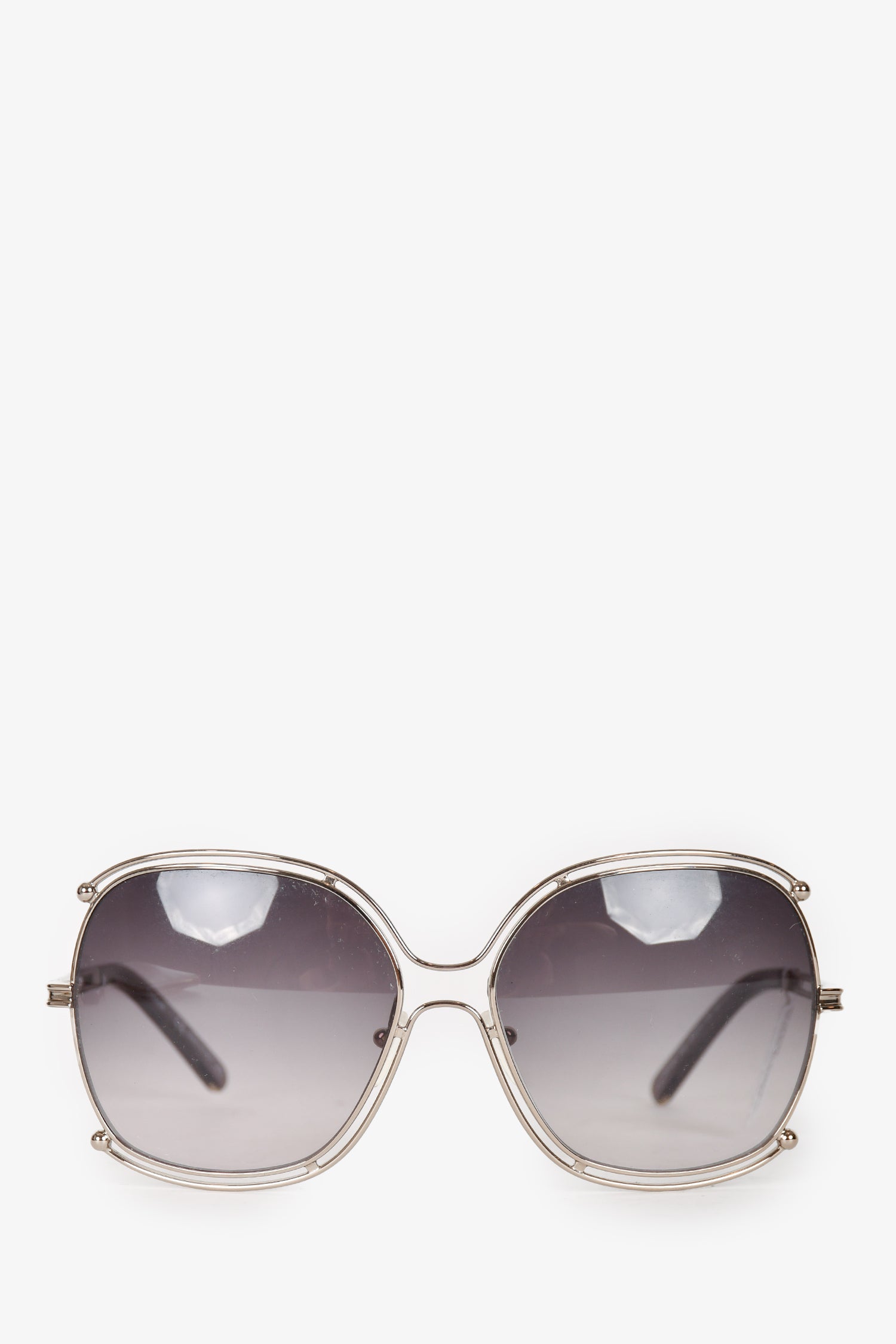Refresh availabilityChloe Silver Toned/Grey Oversized Sunglasses. Adjustable nose pads.
