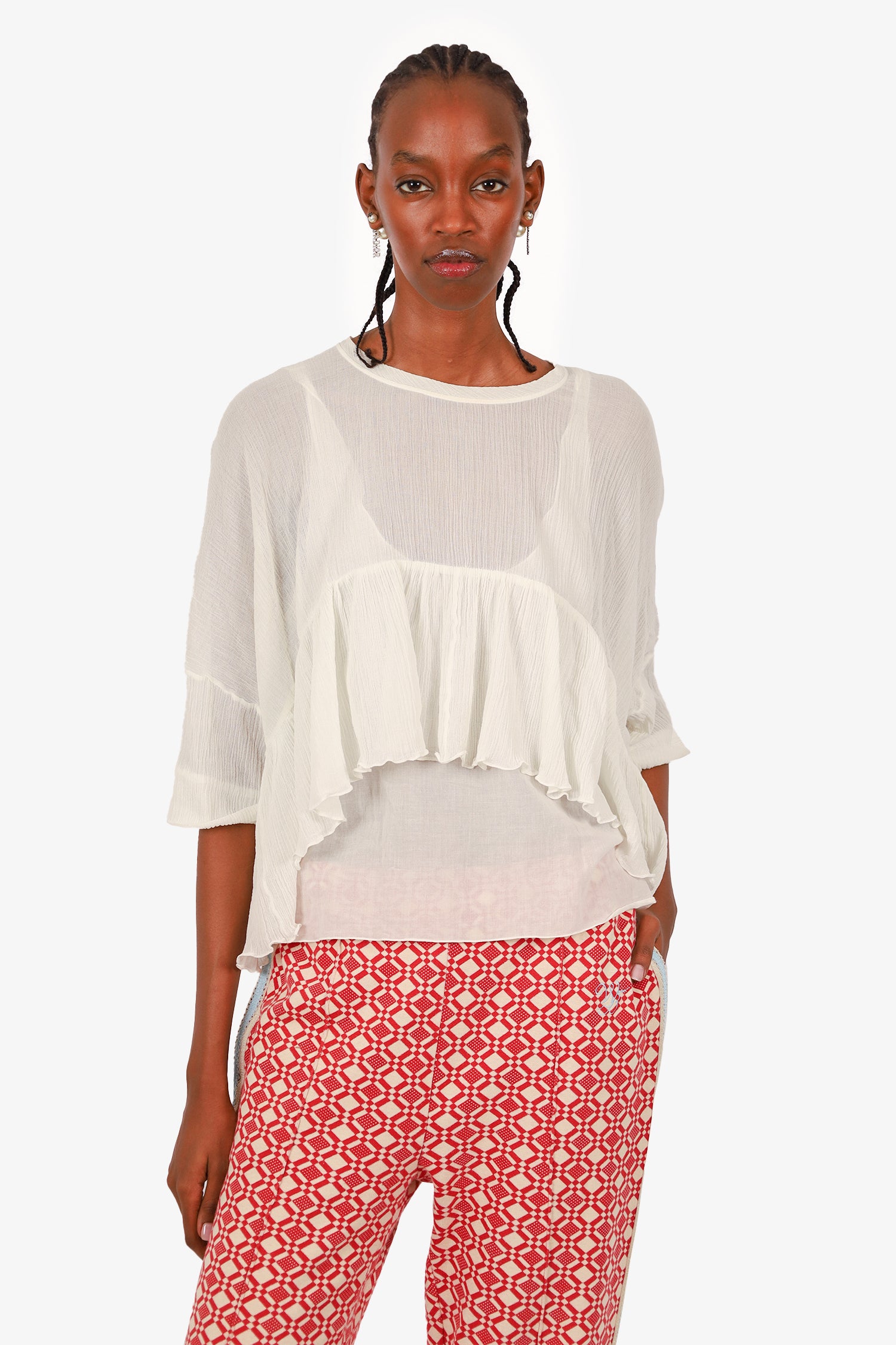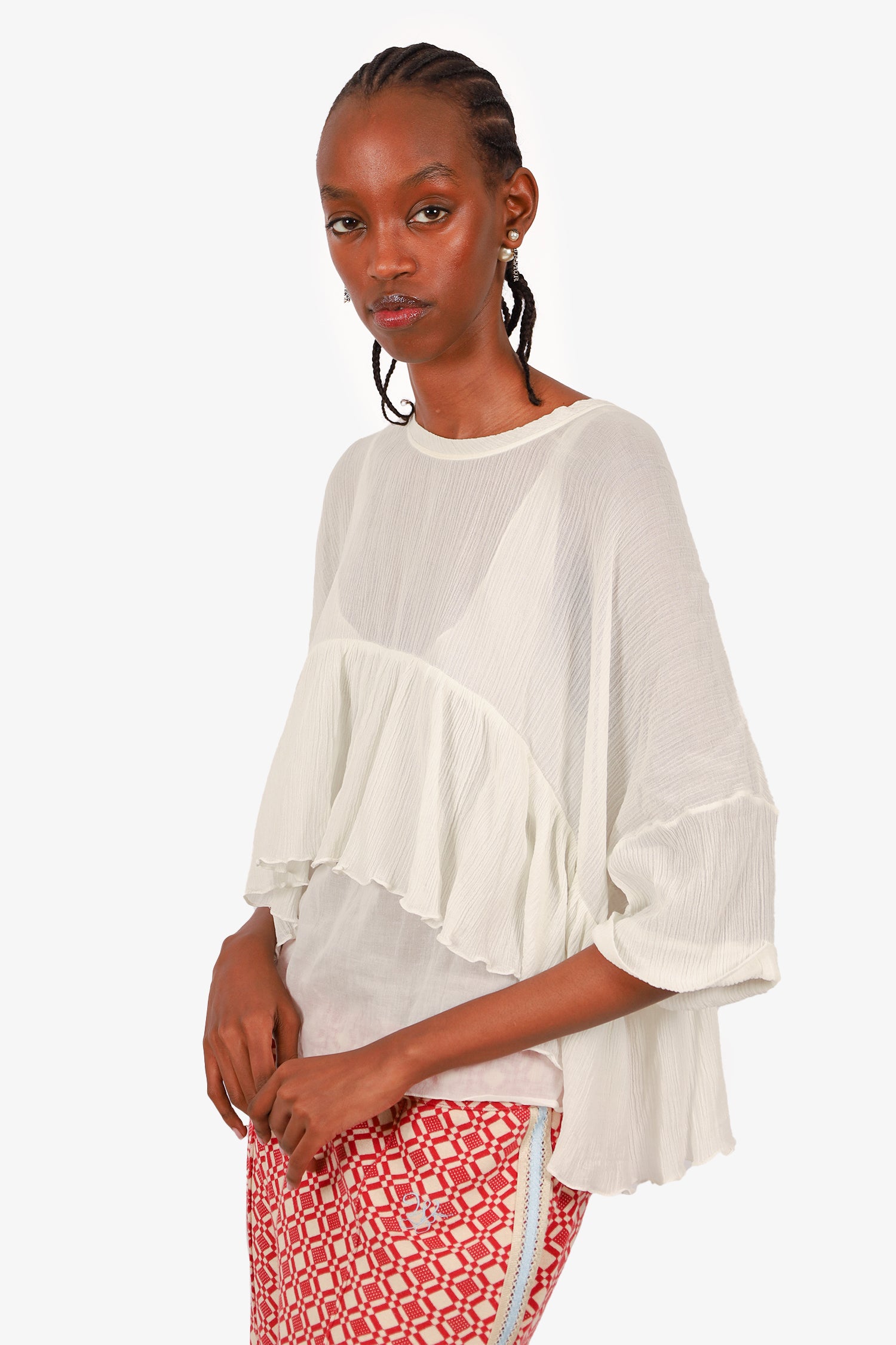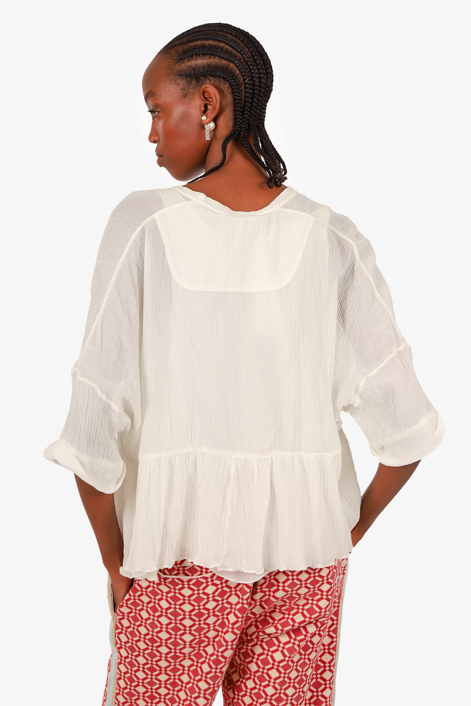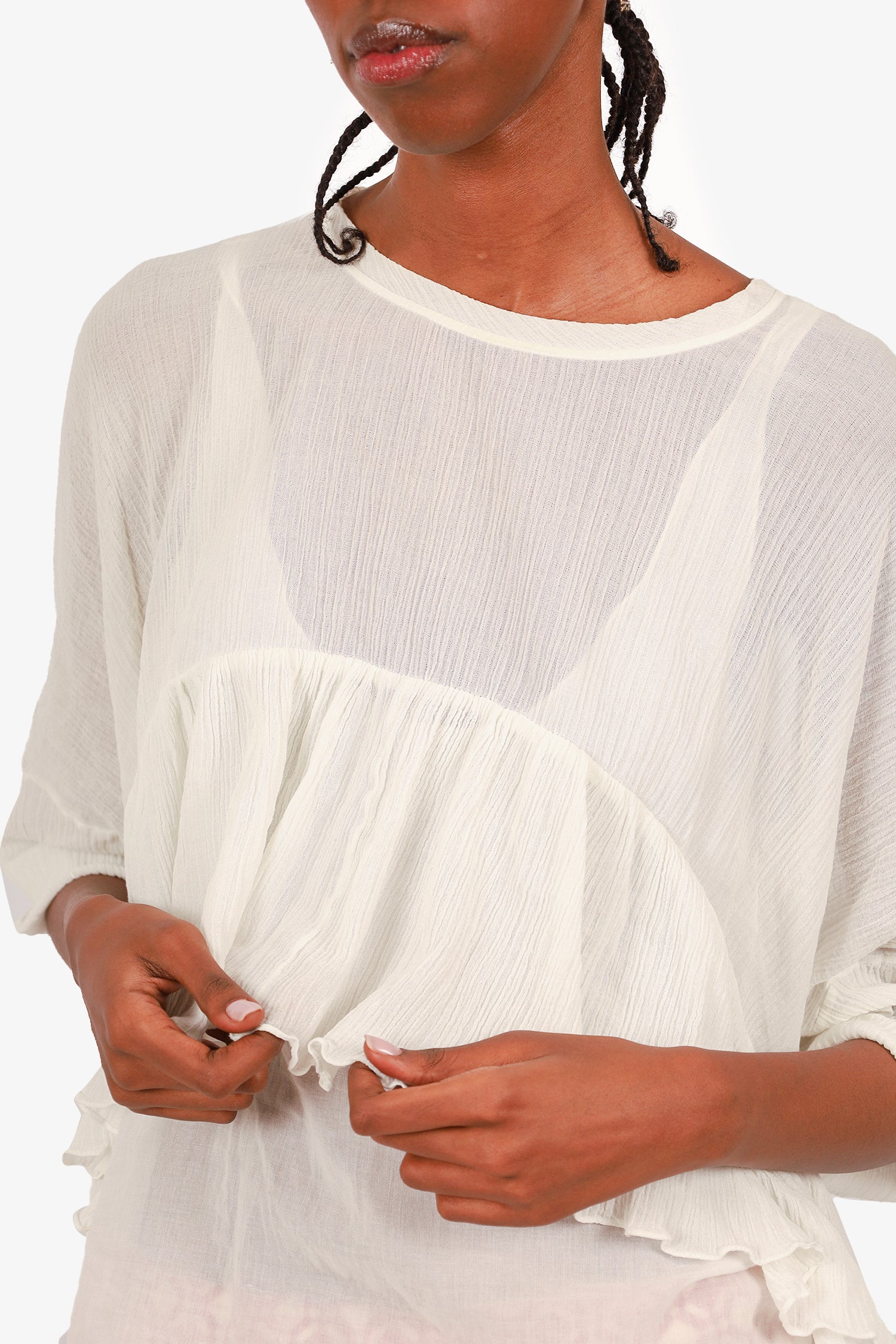 Refresh availabilityChloe White Crinkled Peplum Top. Round neckline. Pull-on. Lined. Tonal stitching.
