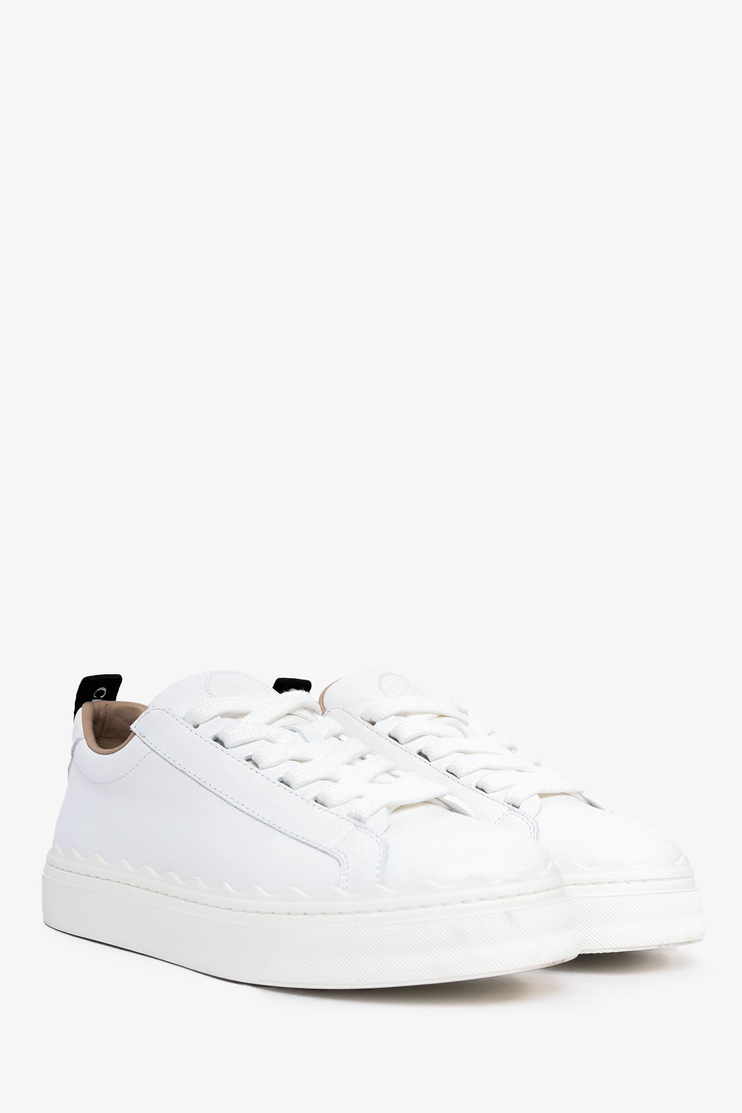 Refresh availabilityChloe White Leather Scalloped 'Lauren' Sneakers. Round toe. Lace-up closure.