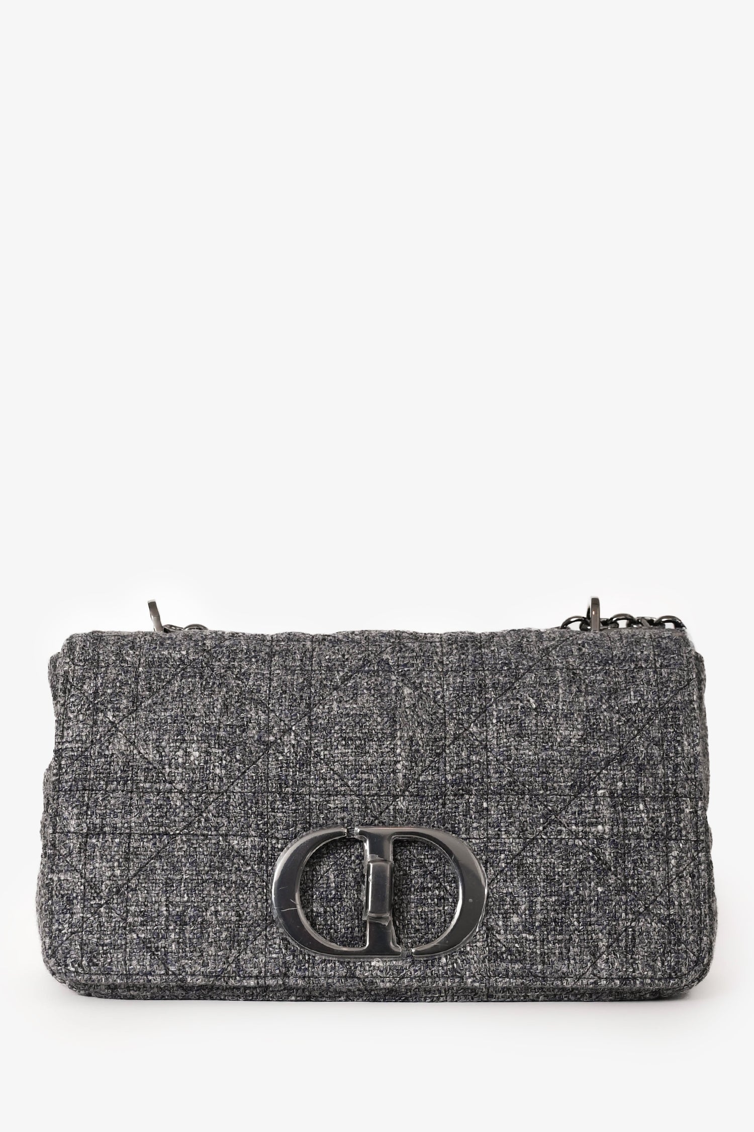Christian Dior 2022 Grey Tweed Medium Caro Bag