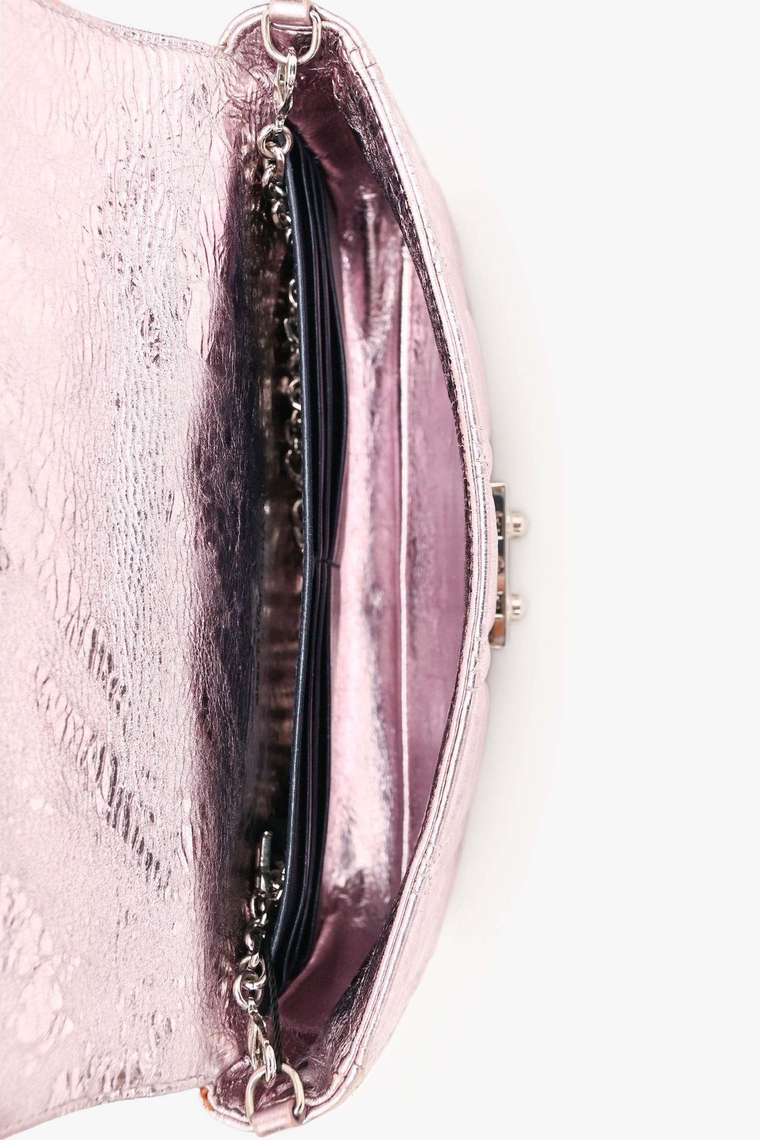 Christian Dior 2014 Pink Metallic Cannage Leather 'Miss Dior' Wallet on Chain