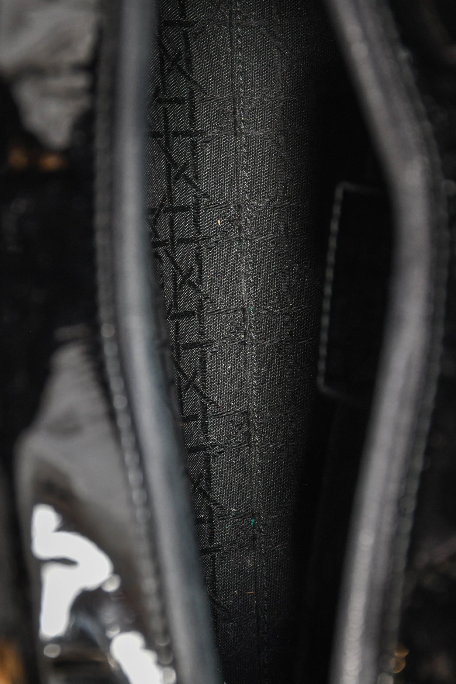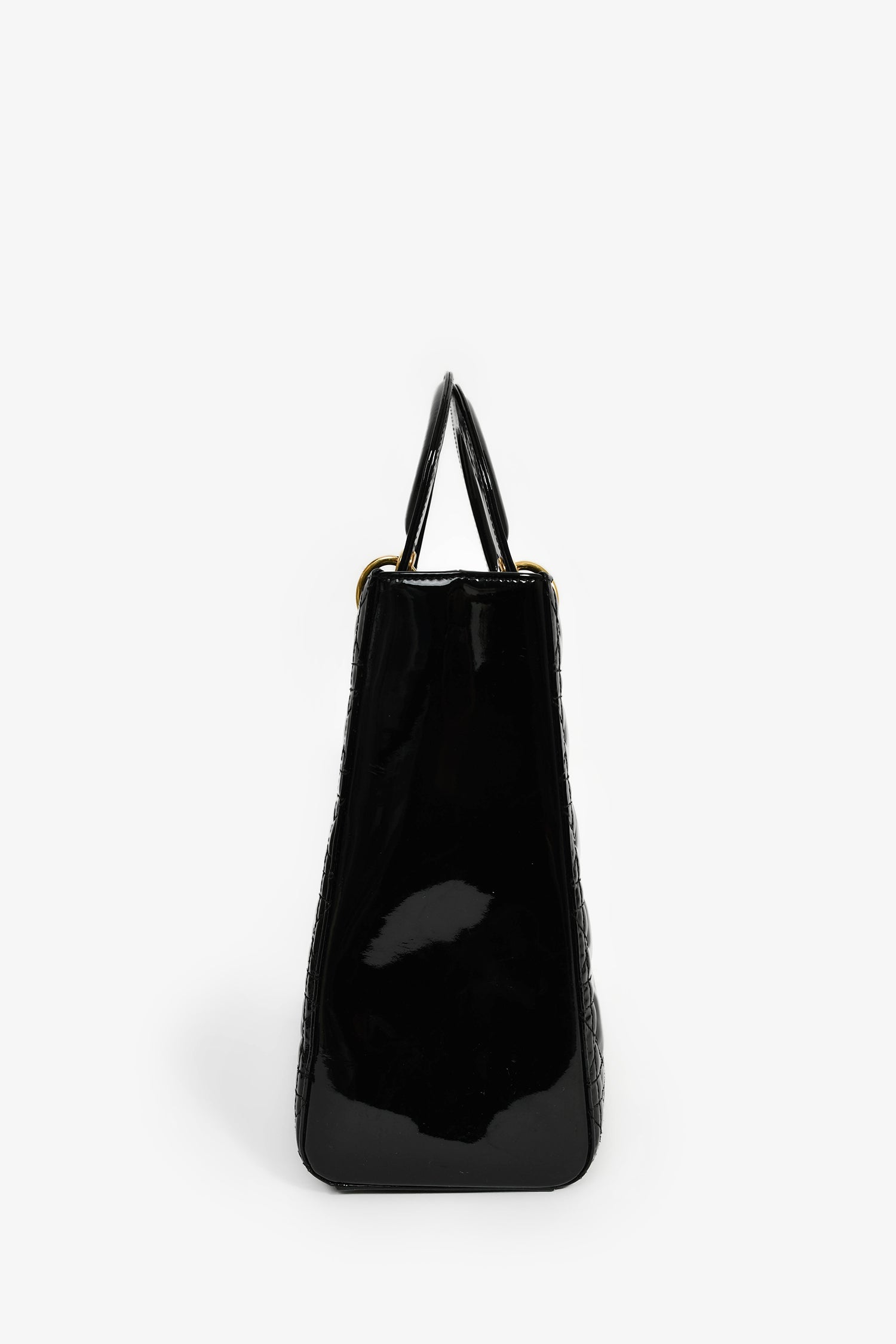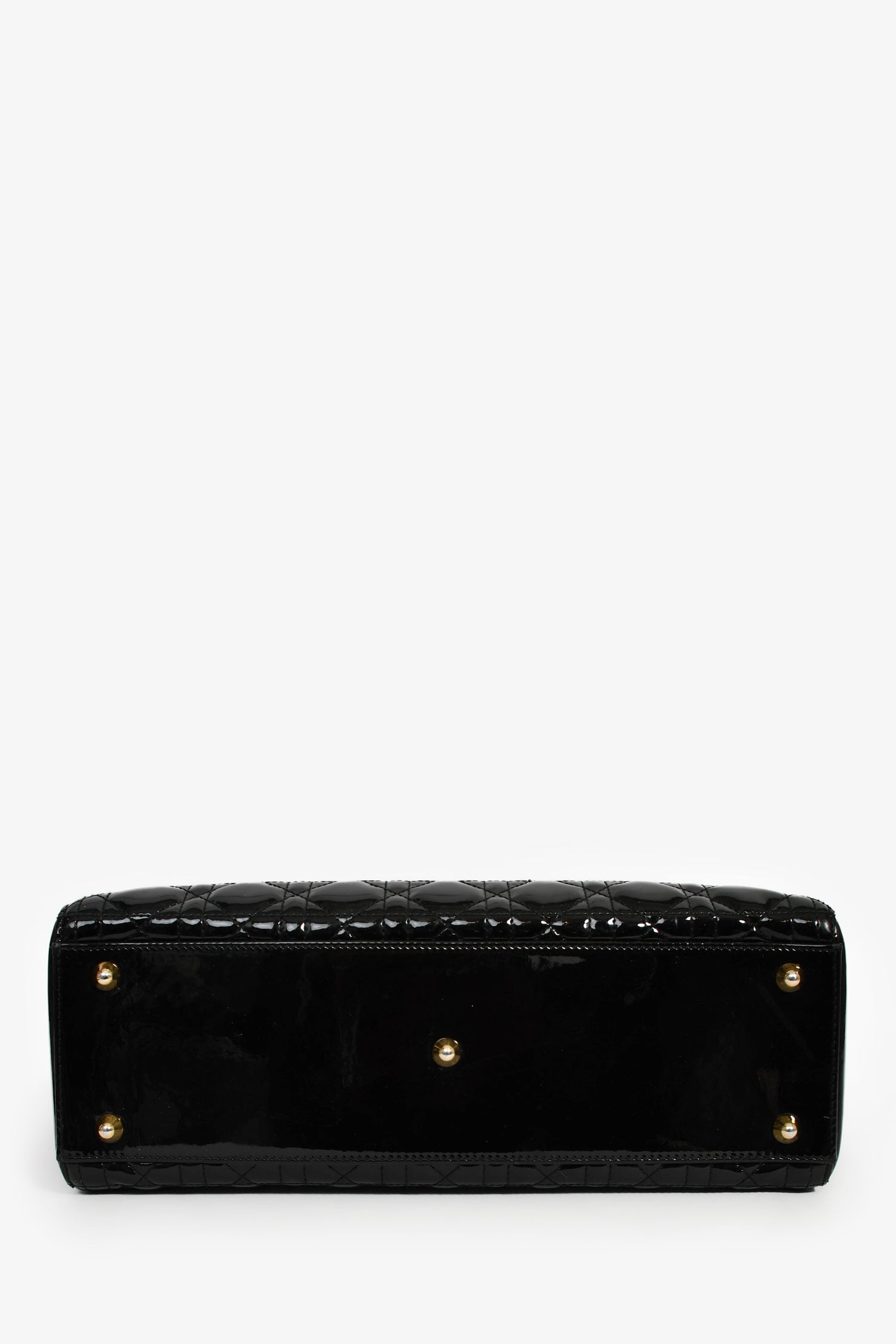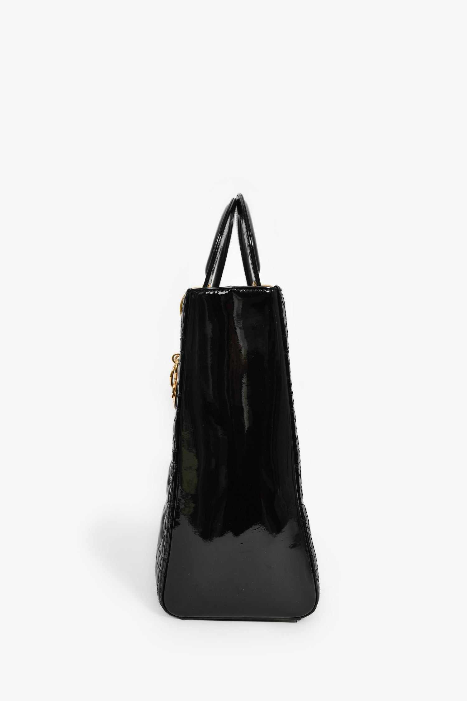 Refresh availabilityChristian Dior 2015 Black Patent Leather Large Lady Dior. Concealed top zip. Dual top handles. Attachable shoulder strap. Lined interior with 1 zip compartment. Gold-tone hardware. Tonal stitching.