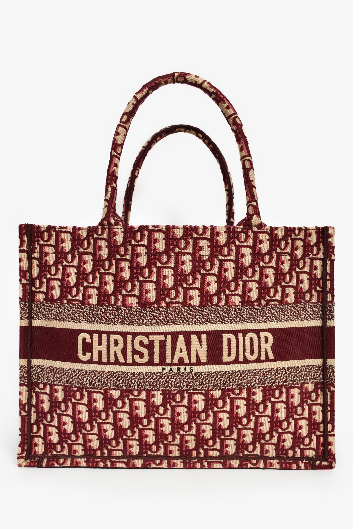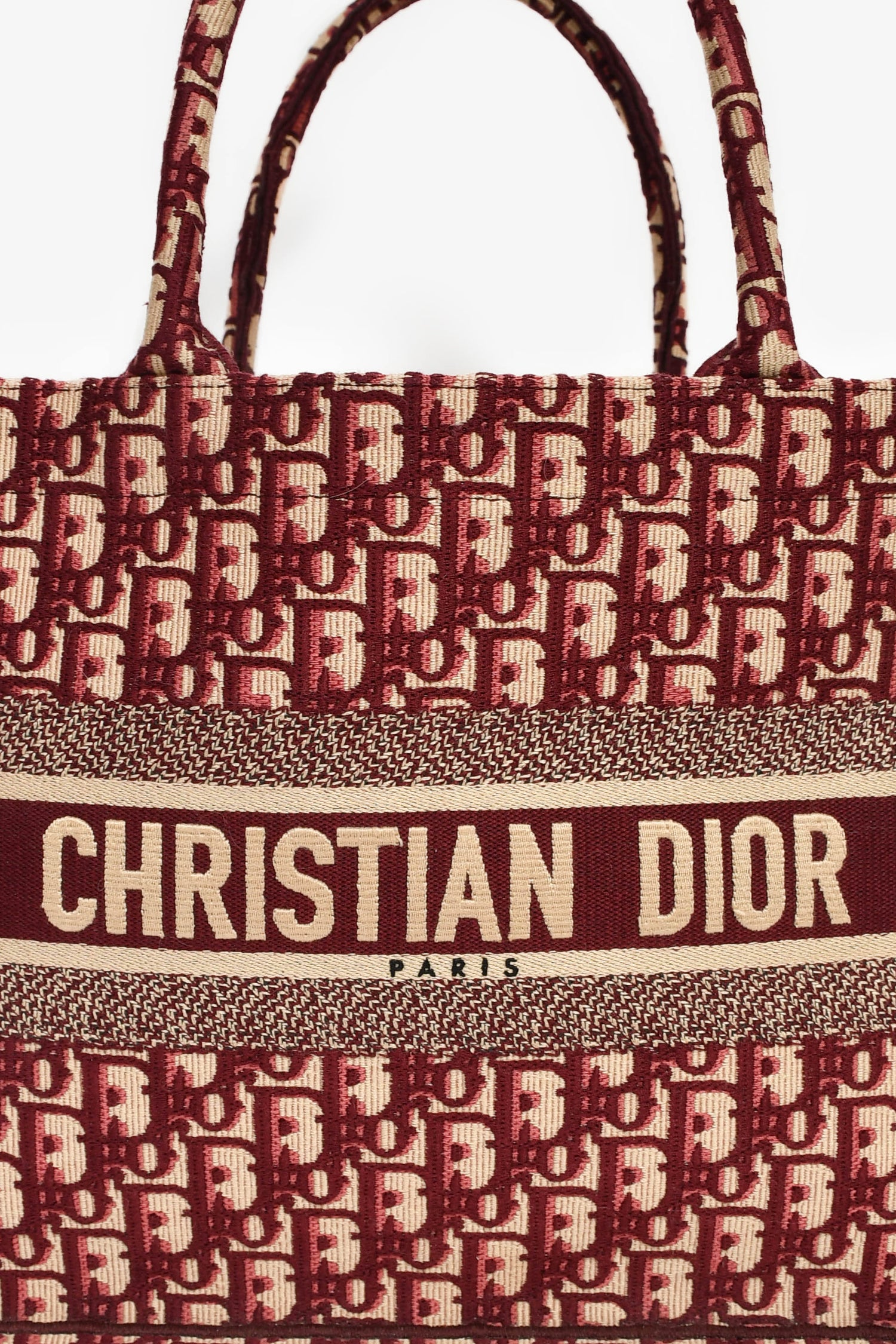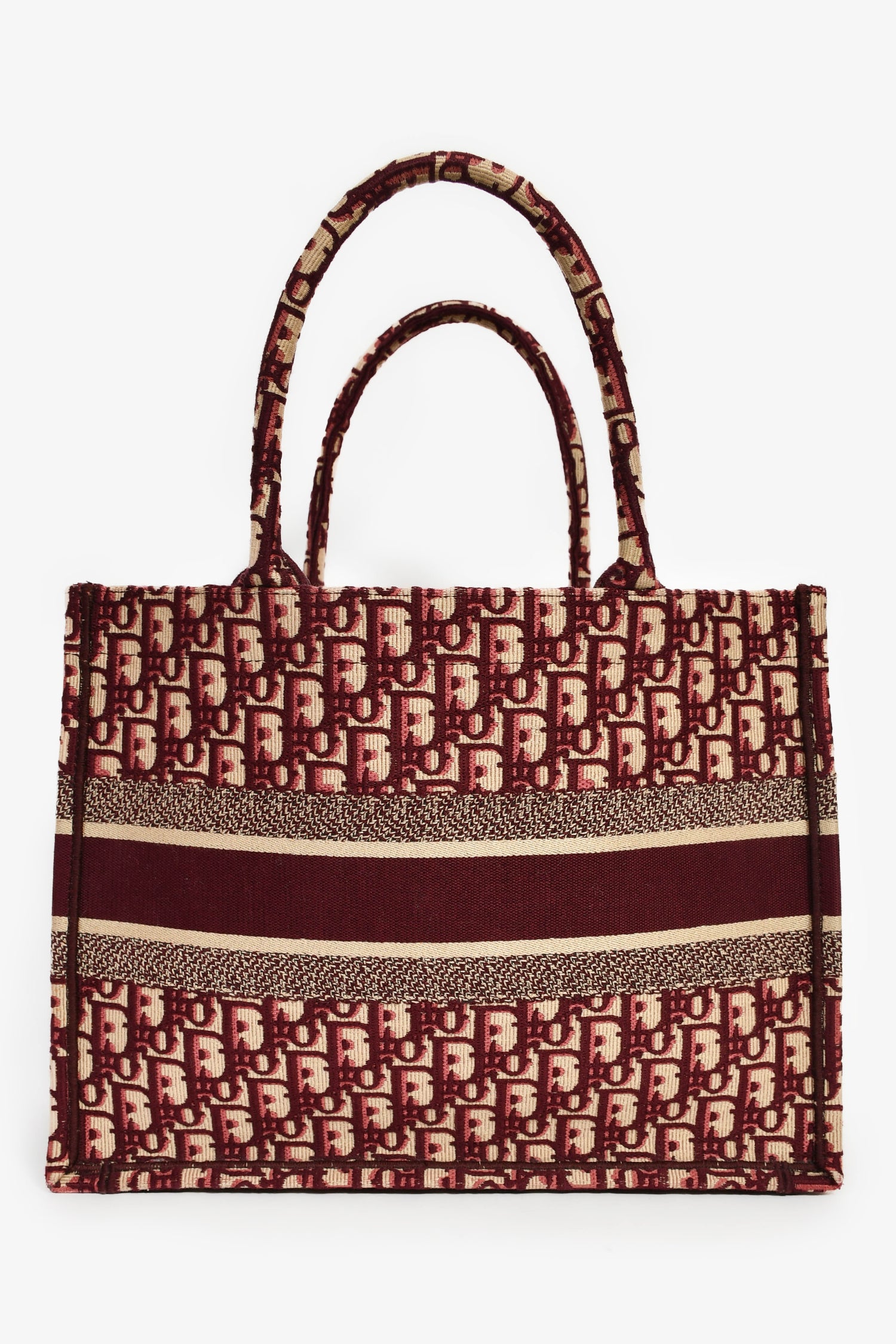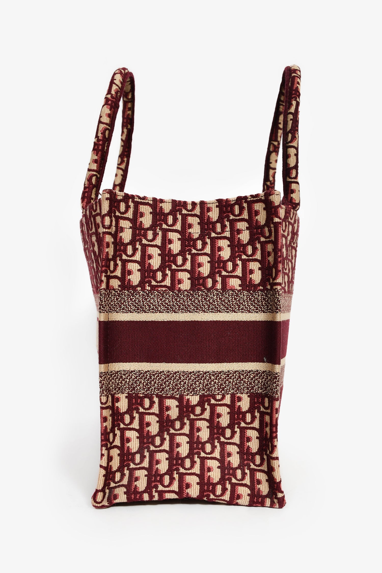 Refresh availabilityChristian Dior 2019 Burgundy Oblique Jacquard Medium Book Tote. Dual top handles. Open interior. Tonal stitching.