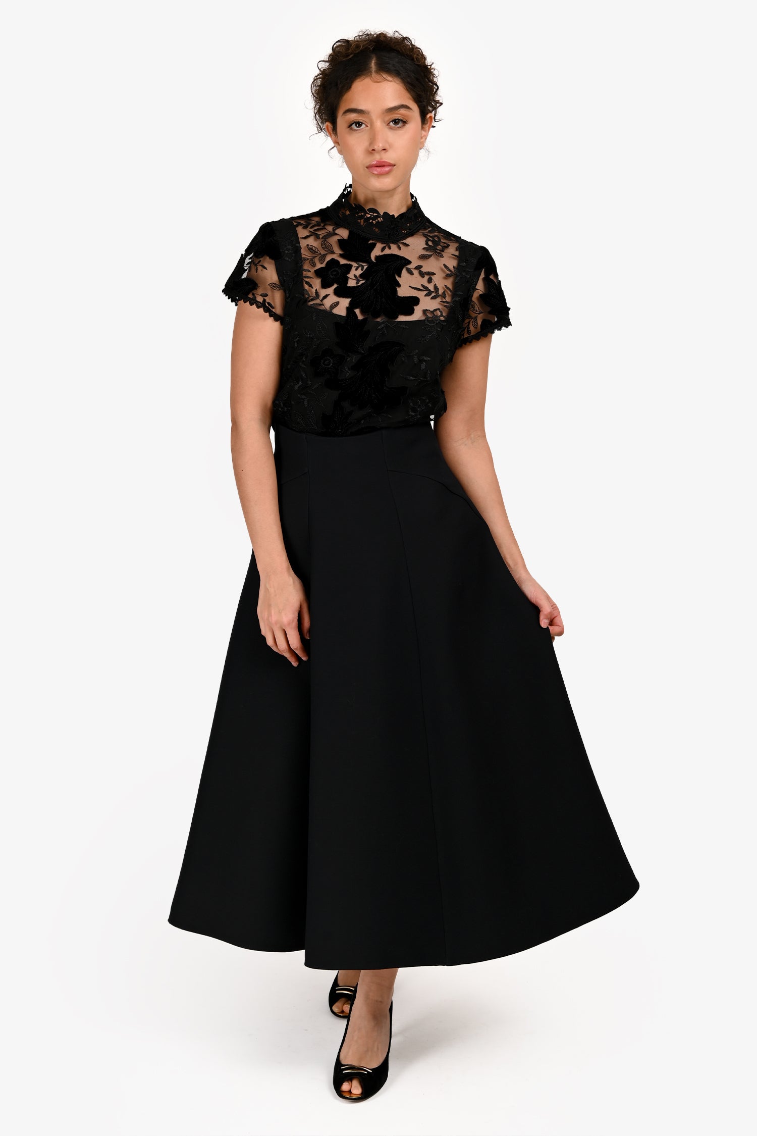 Christian Dior 2025 Black Wool/Silk Mid-Length Skirt Size 6 US
