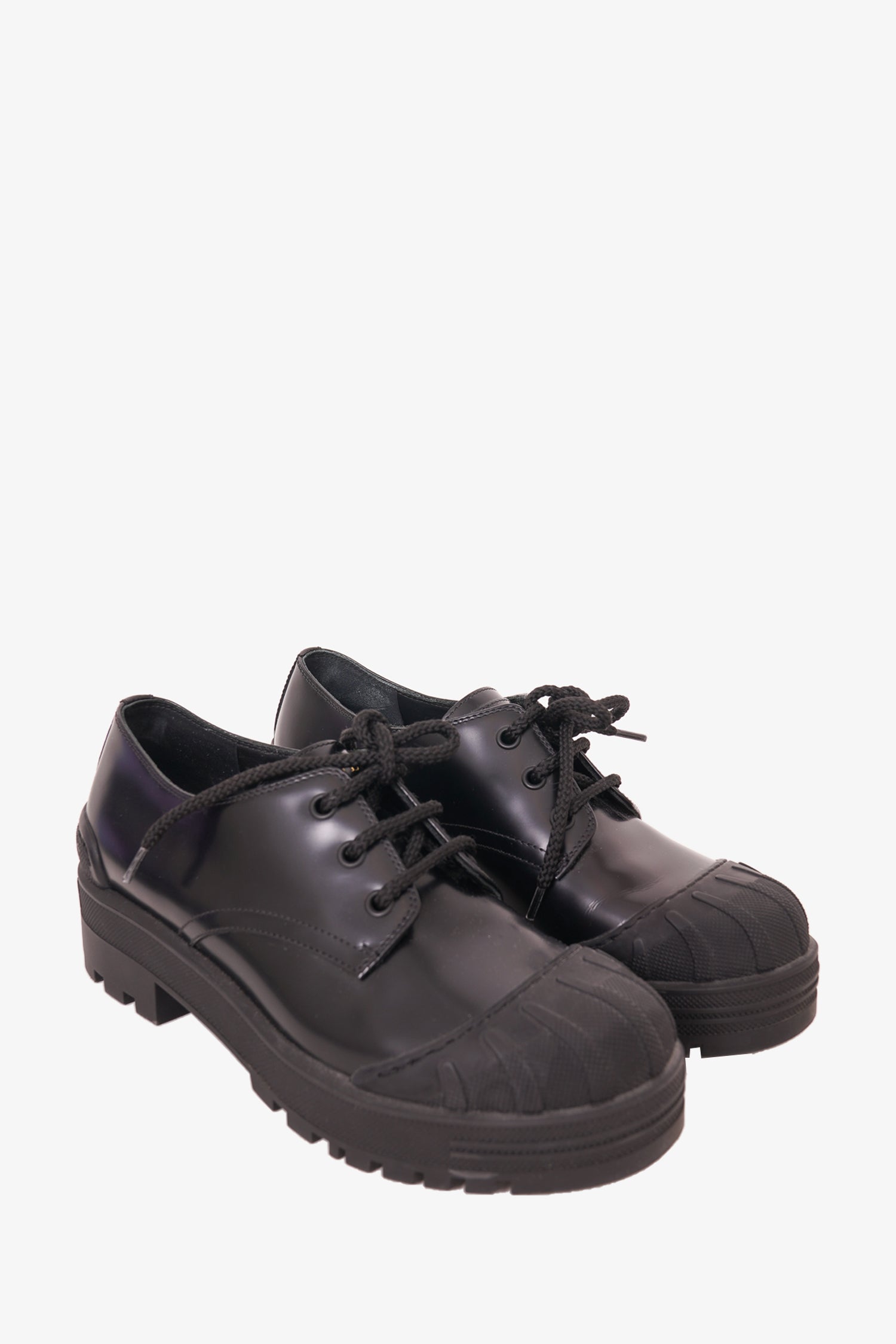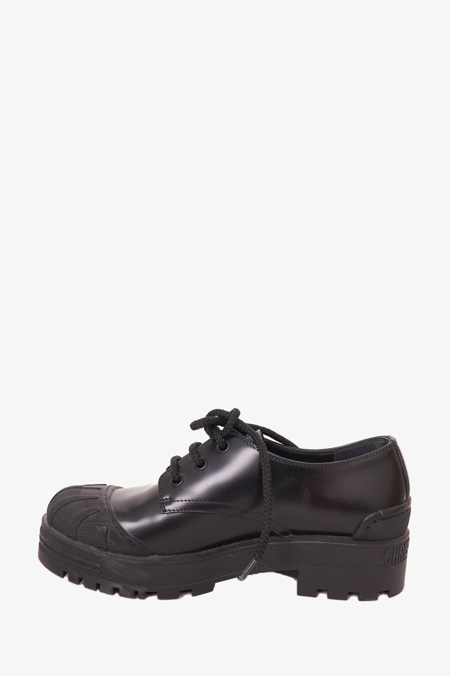 Refresh availabilityChristian Dior Black Brushed Calfskin Lace Up Derby Shoes. Platform soles. Tonal stitching.