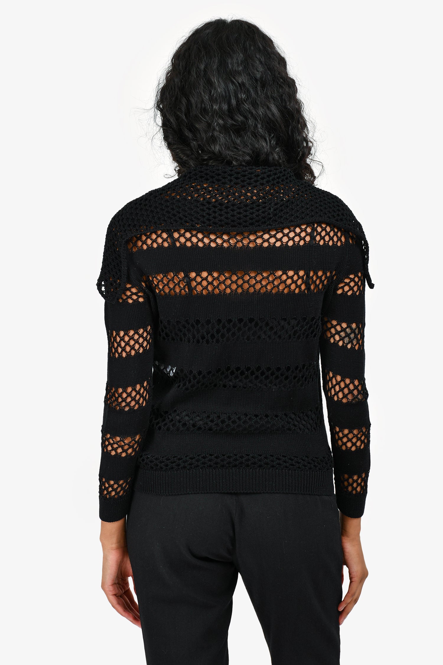 Refresh availabilityChristian Dior Black Crochet Fisherman Sweater with Slip. Crew neckline. Long sleeves. Comes with detachable black slip lining. Relaxed fit. Tonal stitching.