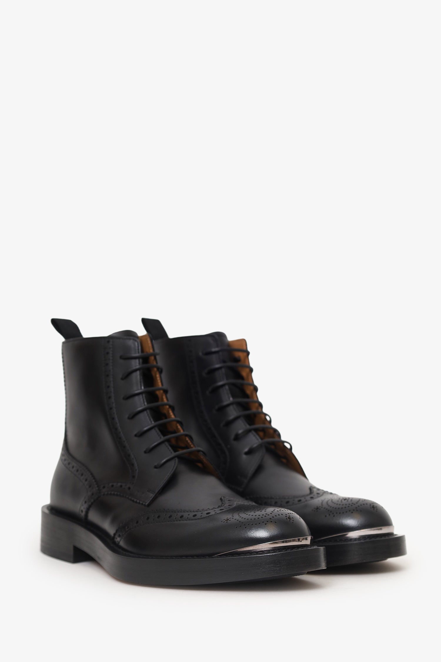 Christian Dior Black Leather 'Diorunit' Brogue Combat Boots Size 41